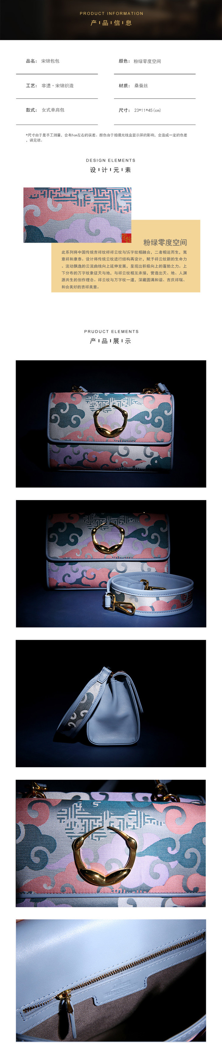 SAINTJOY/上久楷 宋锦女式单肩包 粉绿零度空间 BWS18A0301