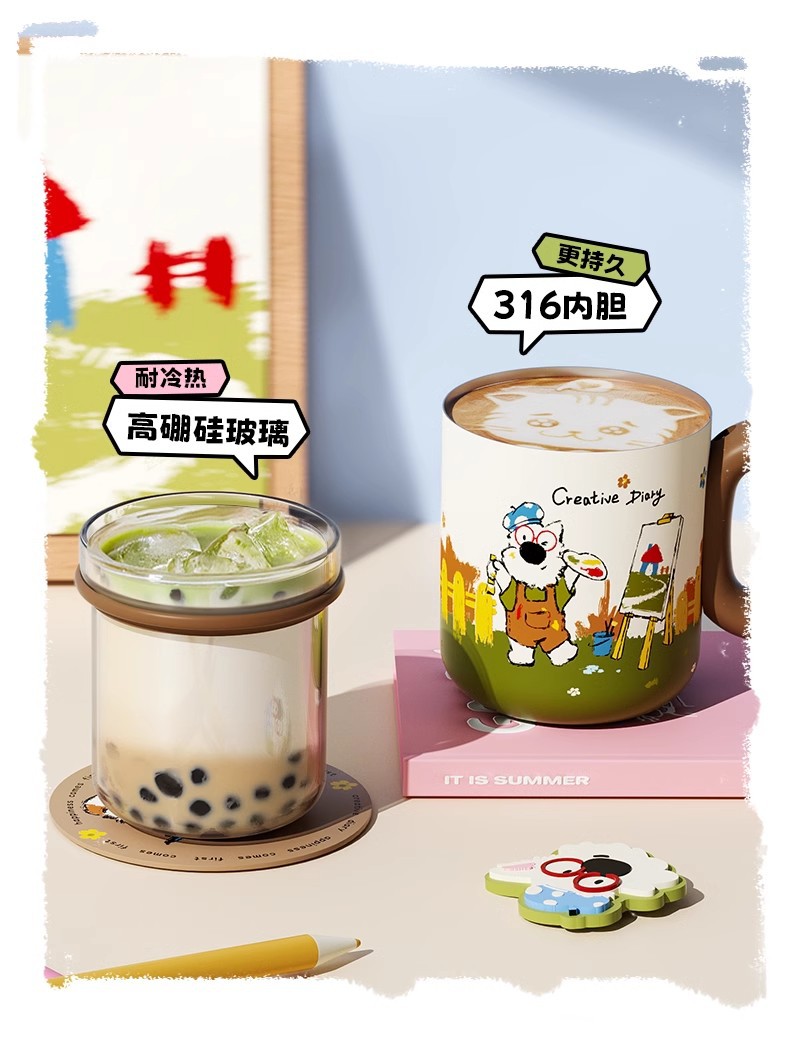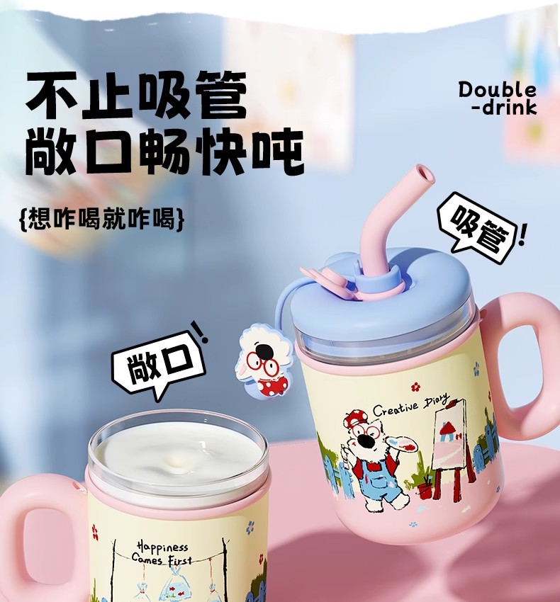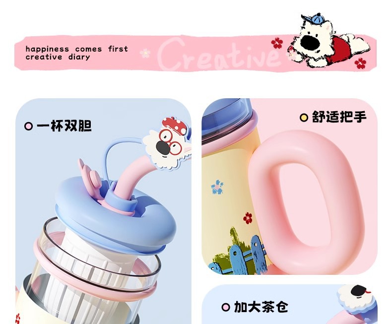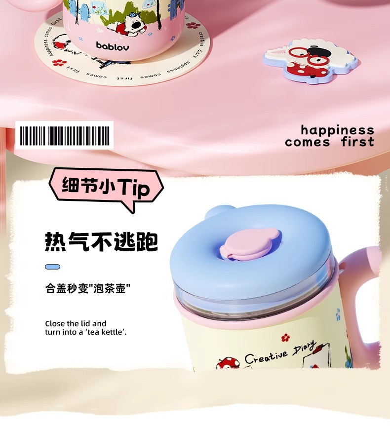 【开学季 | 新装备】bablov保温杯玻璃内胆吸管杯女生高颜值茶水分离泡茶杯子