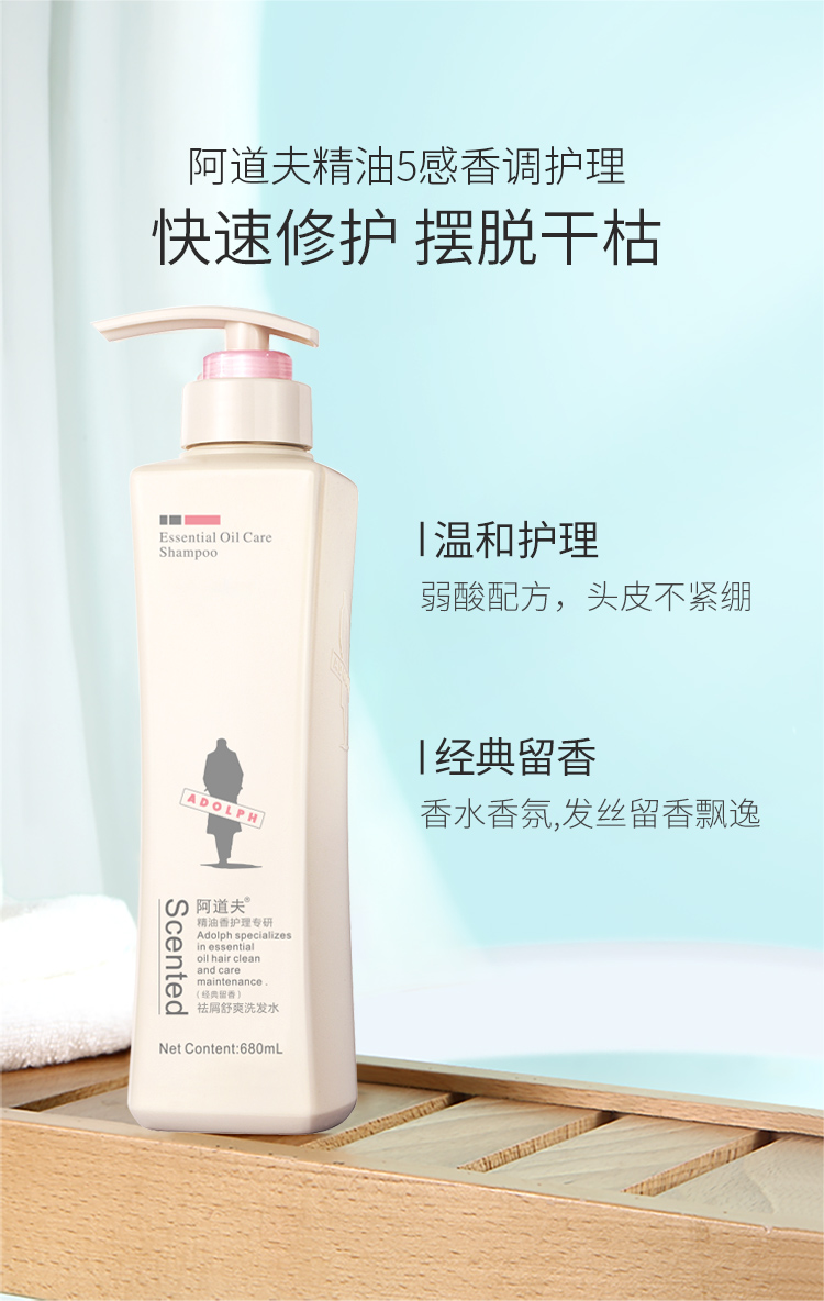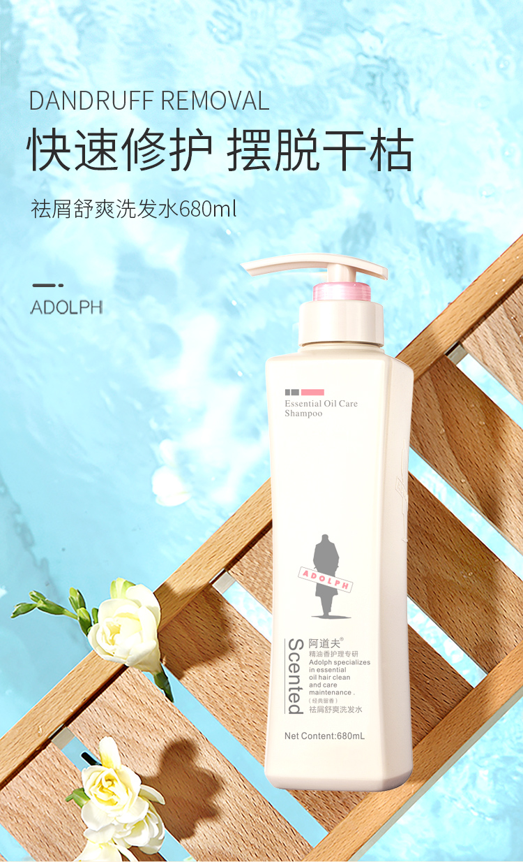 阿道夫控油清爽去屑滋润修护洗发水露680ml精油柔顺丝滑亮泽舒缓 1件装