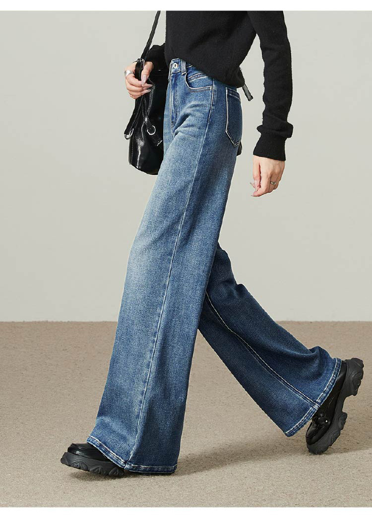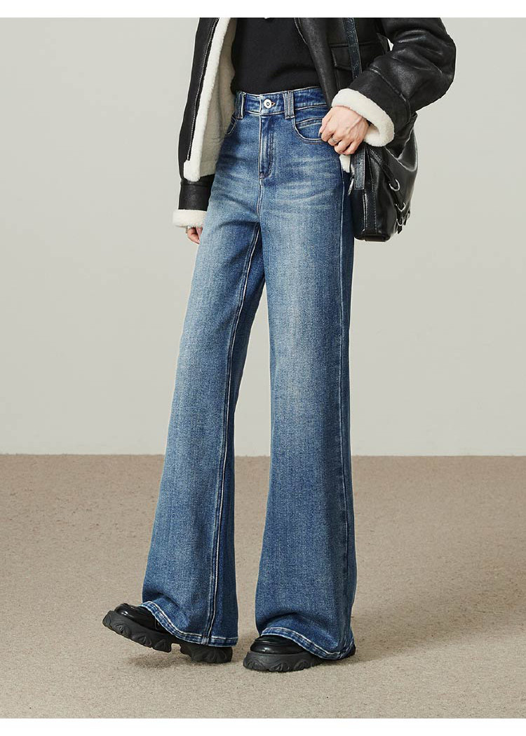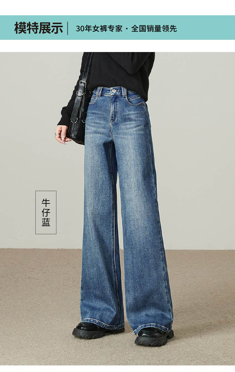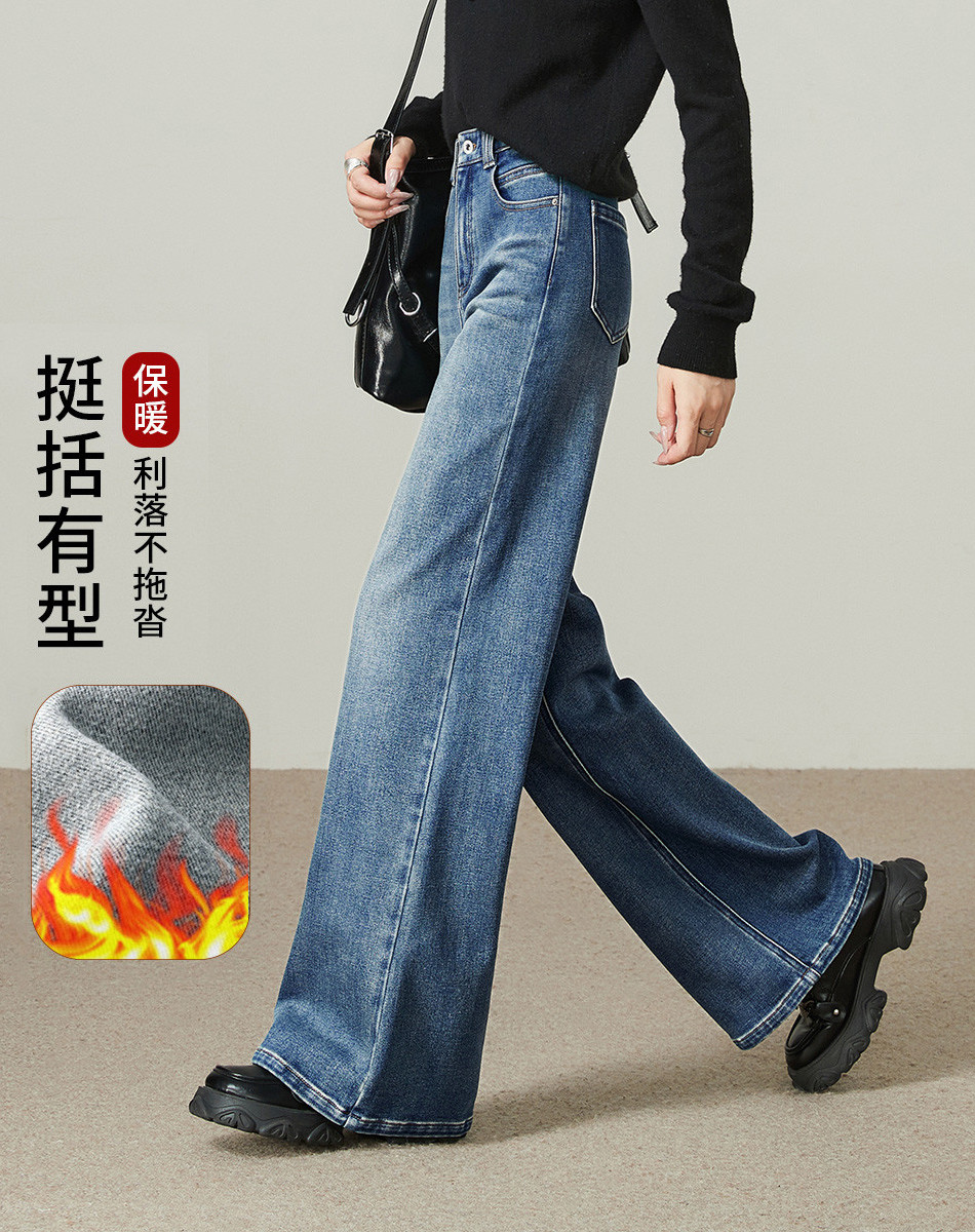 【保暖拉毛-筒喇牛仔】逸阳冬新品加厚喇叭遮肉显瘦阔腿裤8751V