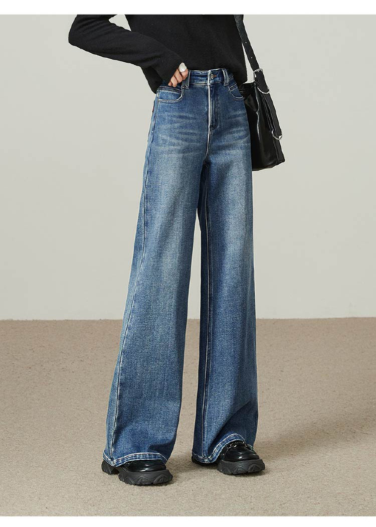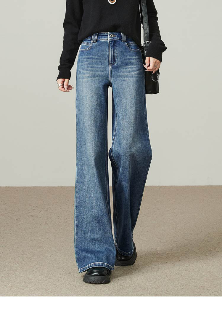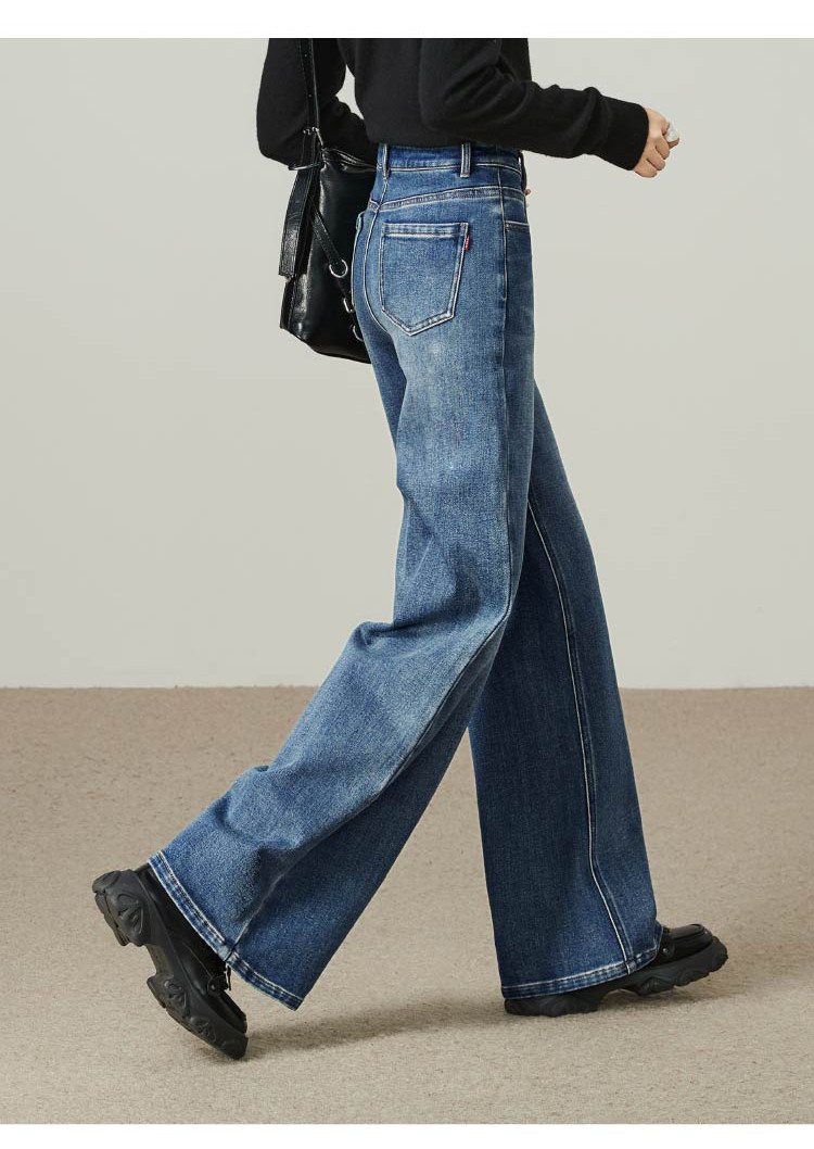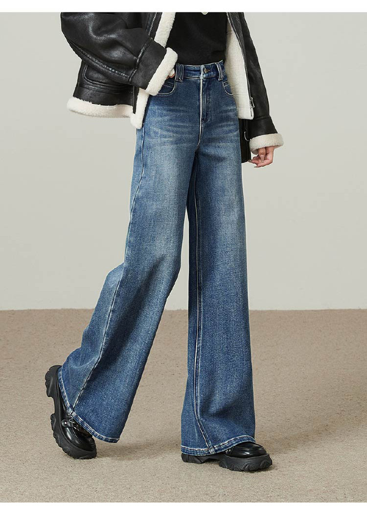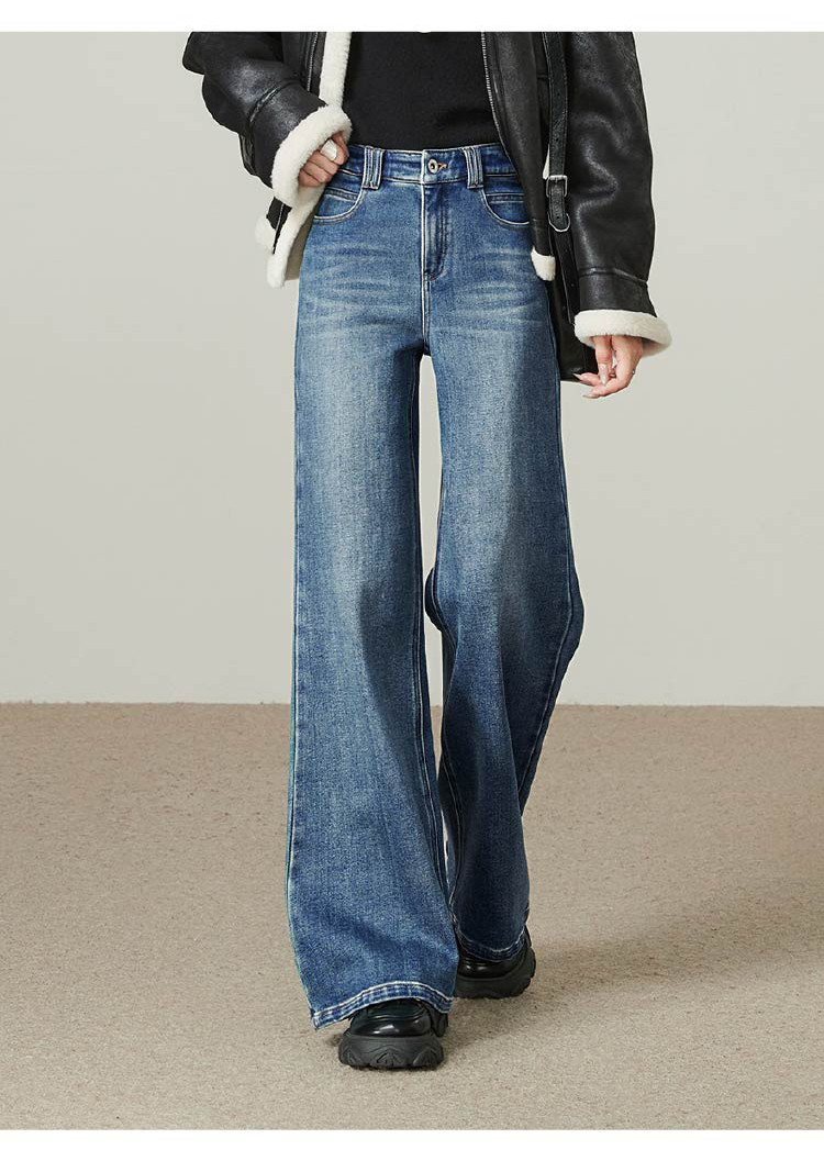 【保暖拉毛-筒喇牛仔】逸阳冬新品加厚喇叭遮肉显瘦阔腿裤8751V