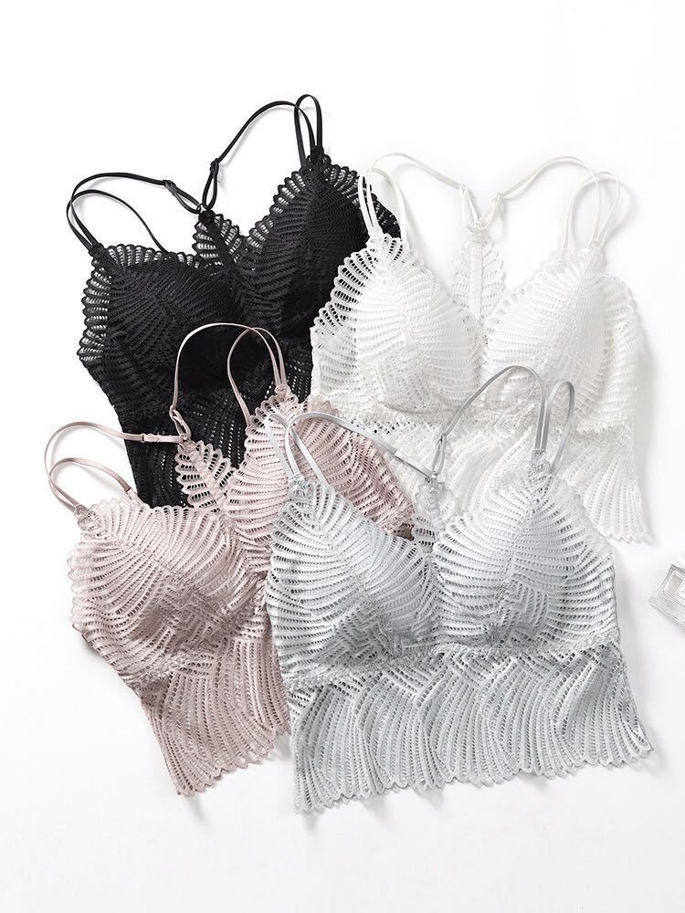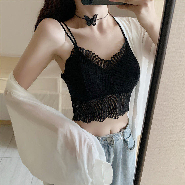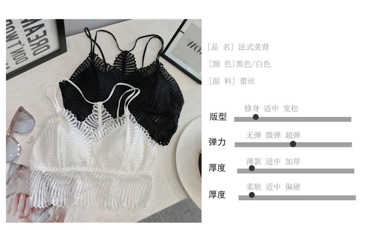 法式 性感蕾丝美背学生文胸无钢圈薄款V领吊带背心女一体式打底内衣细带