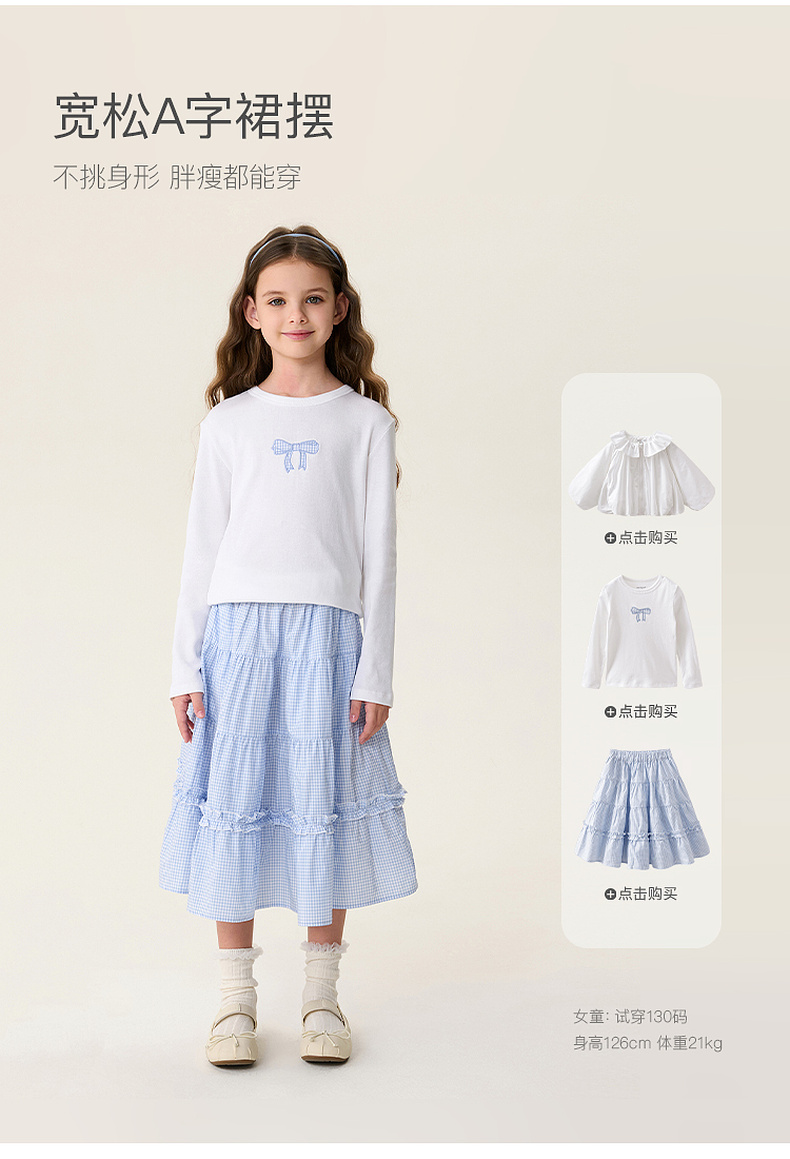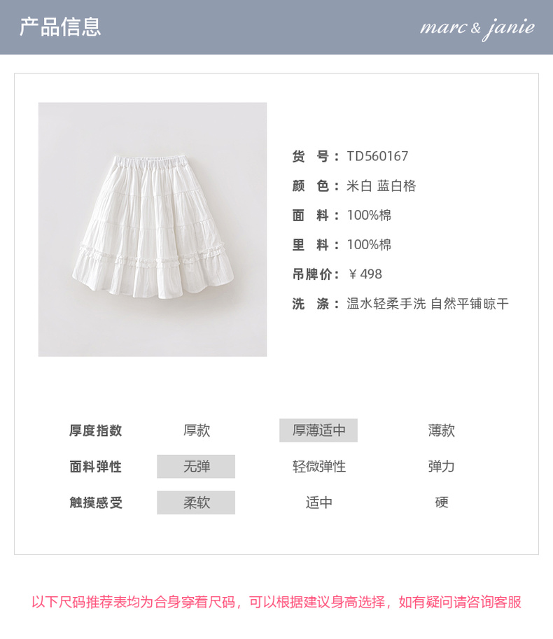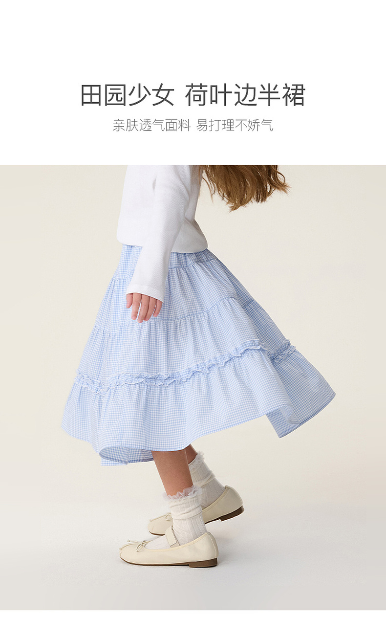 马克珍妮田园少女 女童纯棉荷叶边半裙2026年春装新款560167