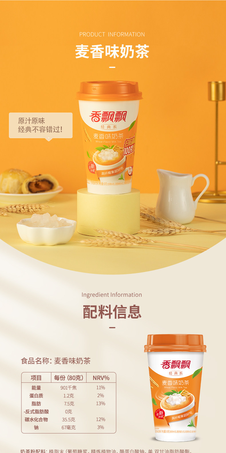 香飘飘 经典麦香奶茶 80g/杯
