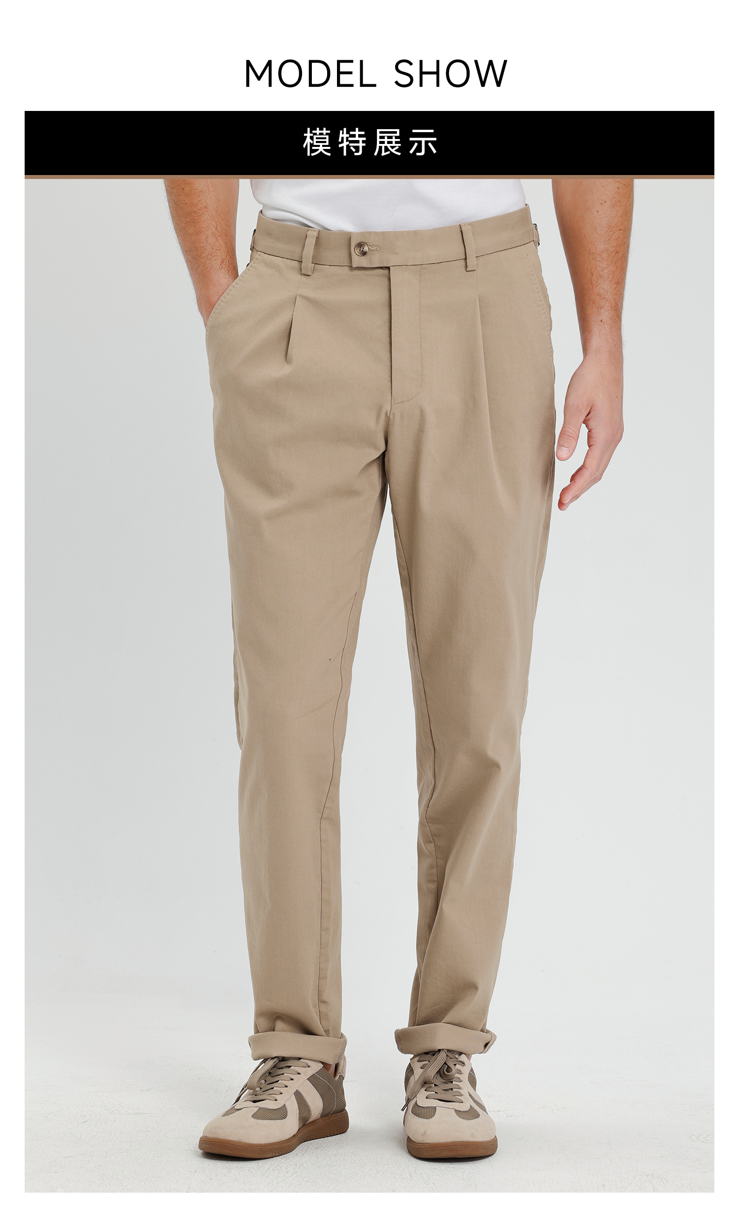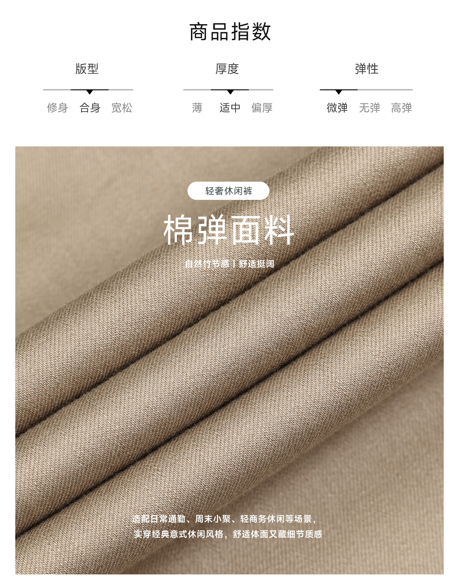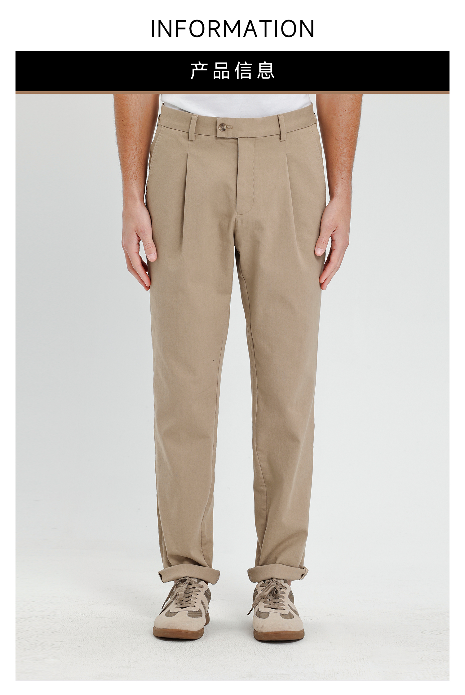 callisto卡其棉弹面料那不勒斯版型休闲裤