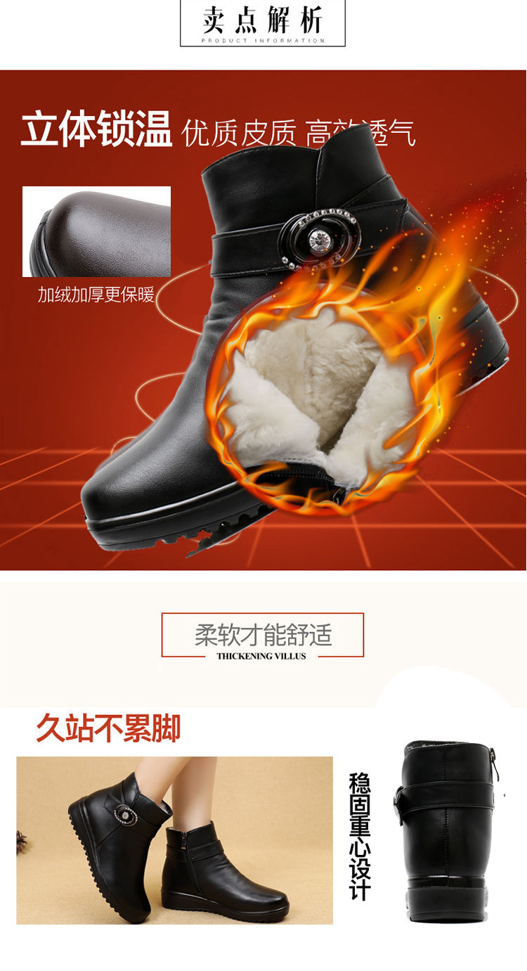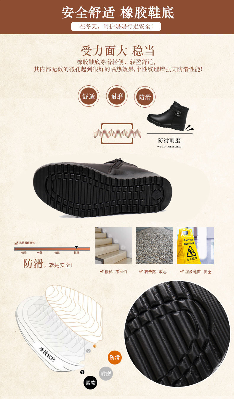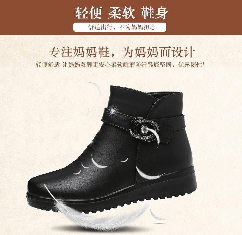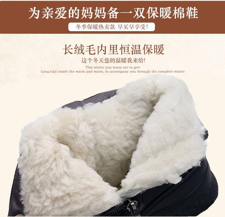 冬季妈妈鞋棉鞋加厚绒保暖防滑软底中老年雪地靴短靴平底老人鞋女