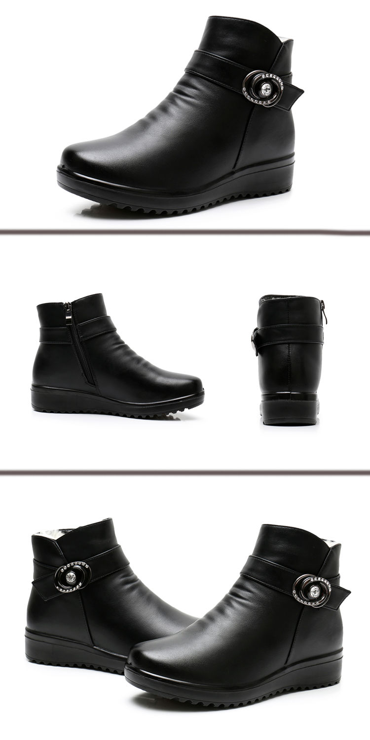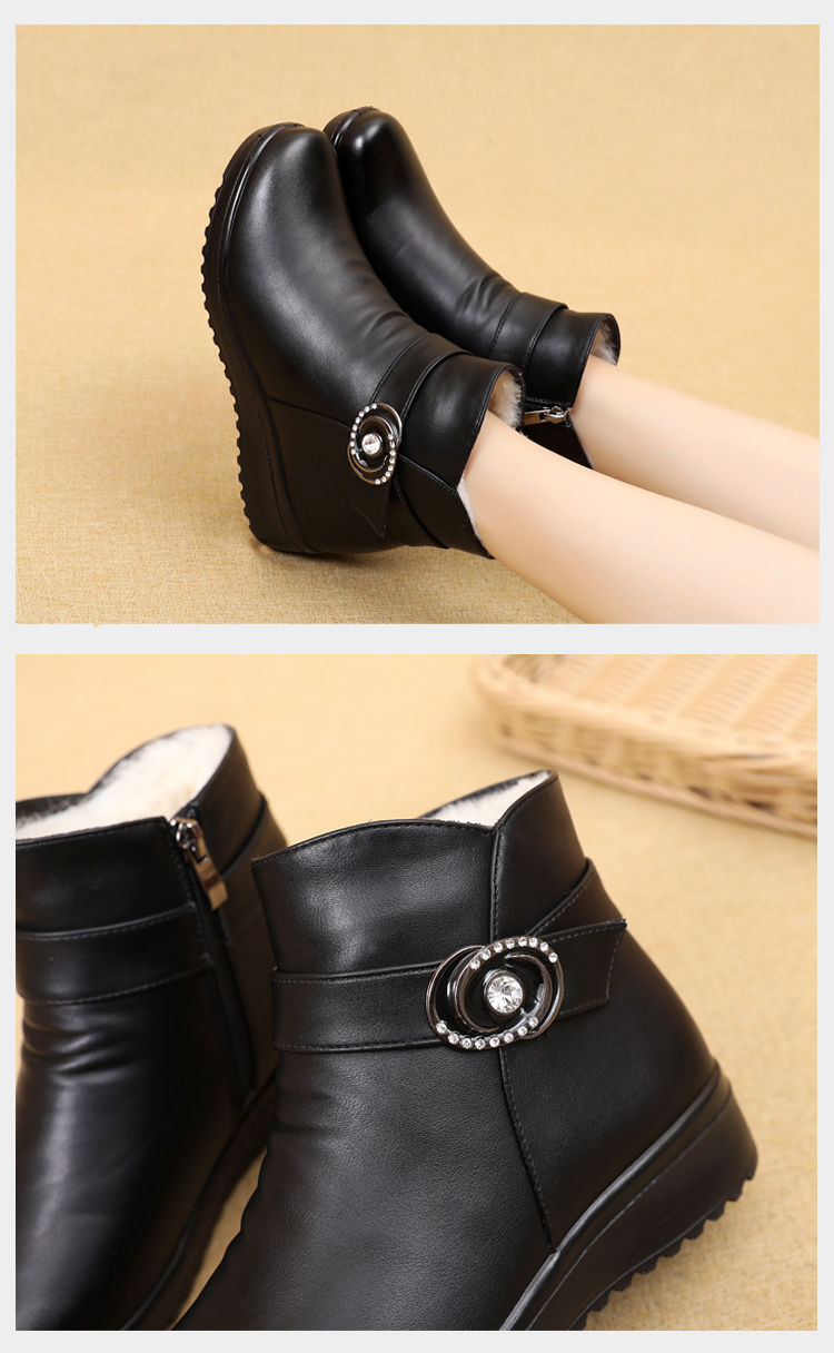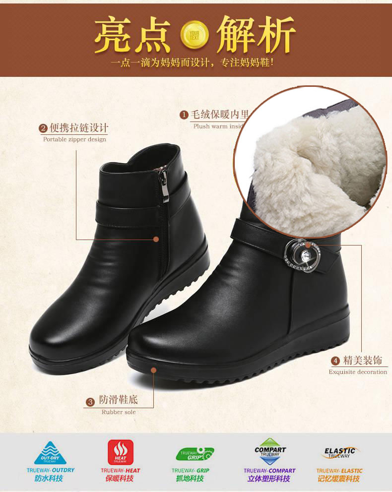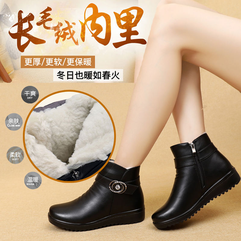 冬季妈妈鞋棉鞋加厚绒保暖防滑软底中老年雪地靴短靴平底老人鞋女