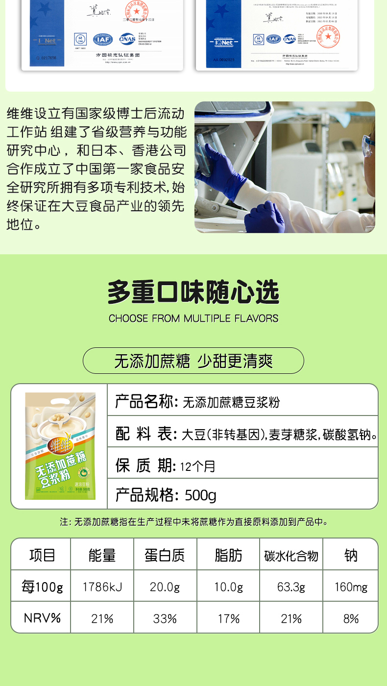 维维 无蔗糖 豆浆粉 500g/袋