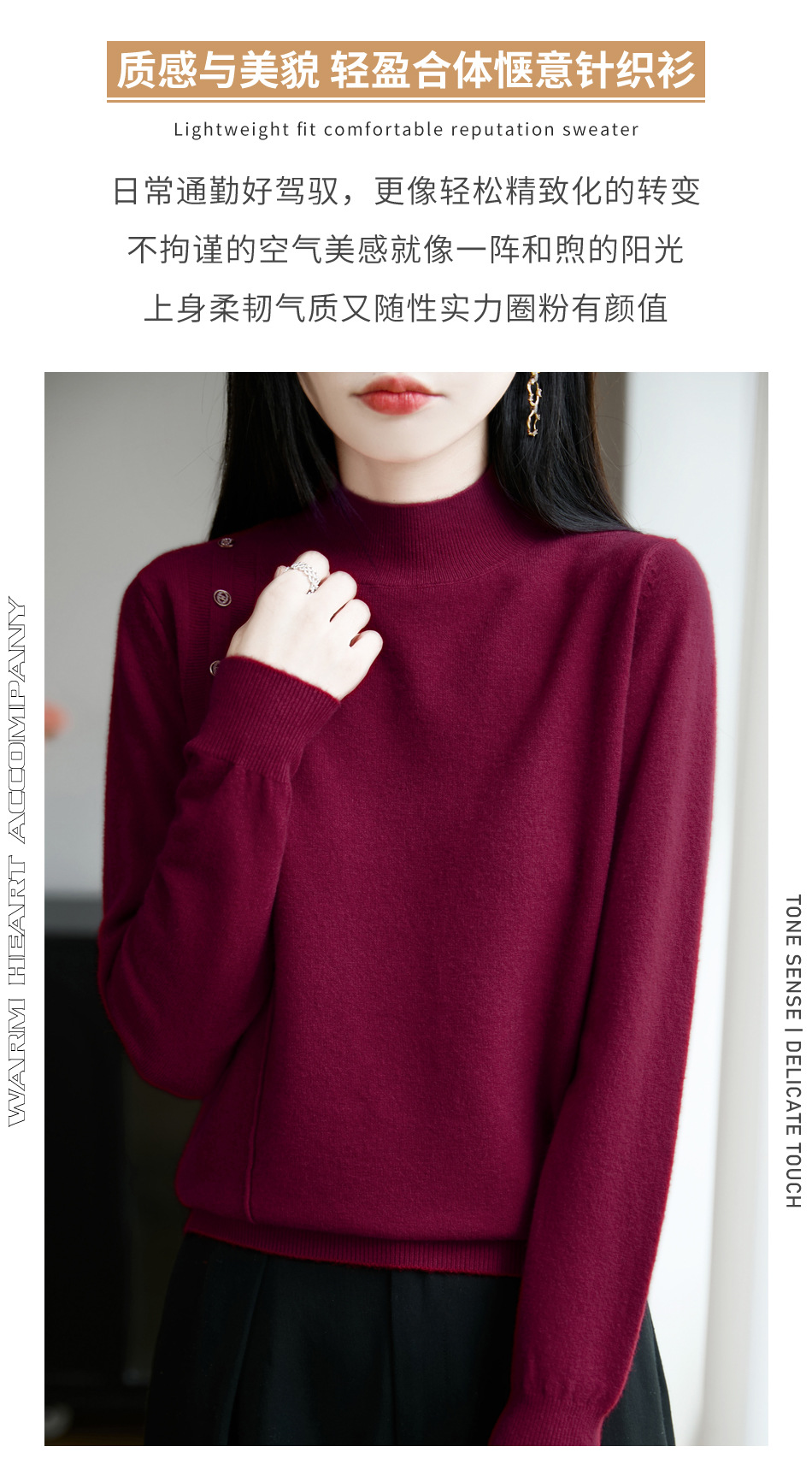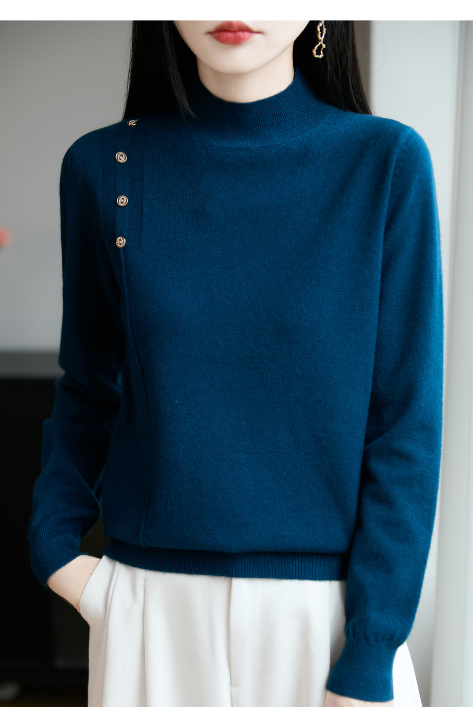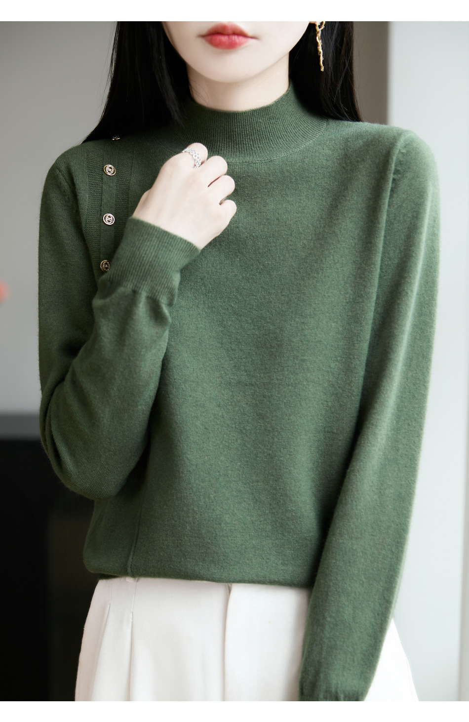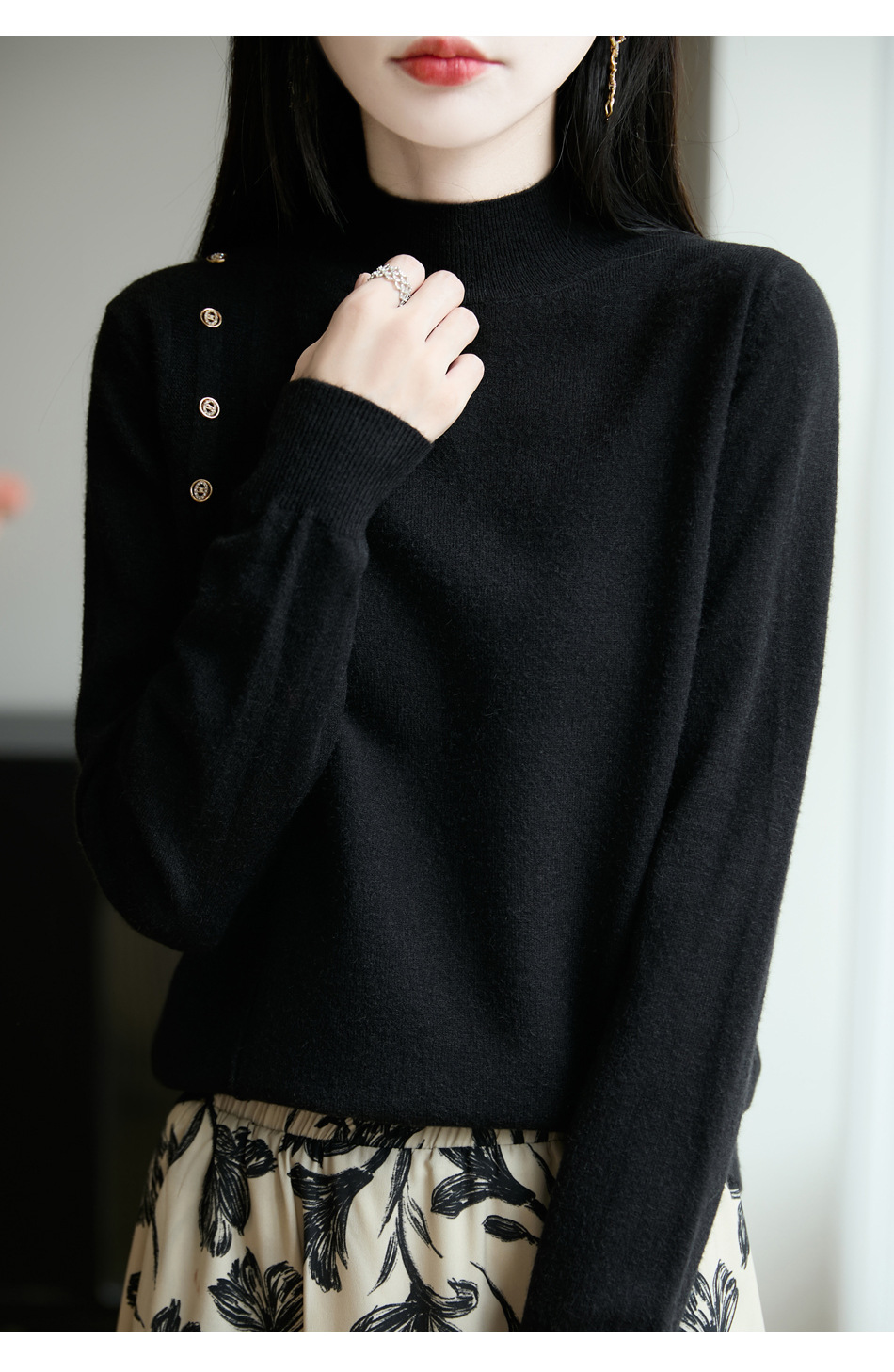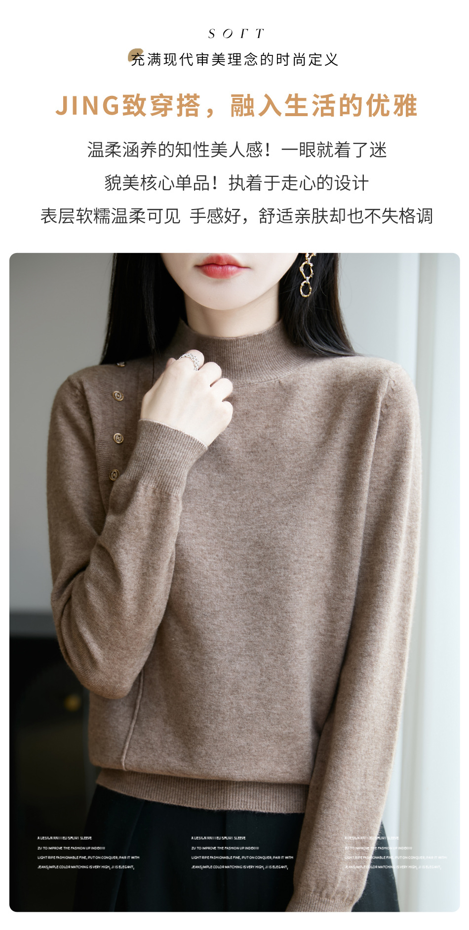 2025新款秋冬半高领打底衫纽扣毛衣女宽松外穿针织上衣洋气毛衣
