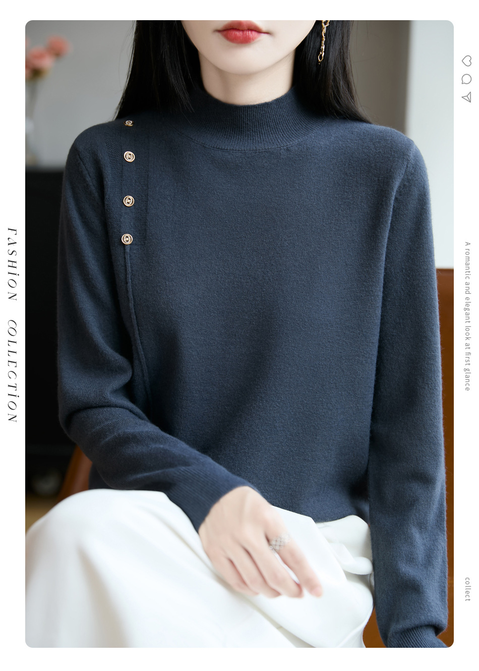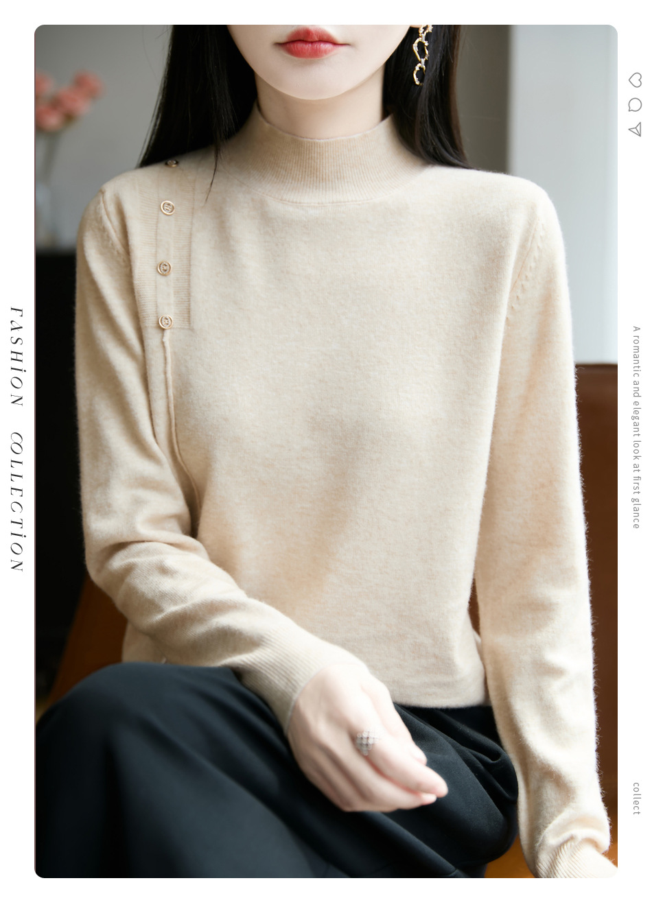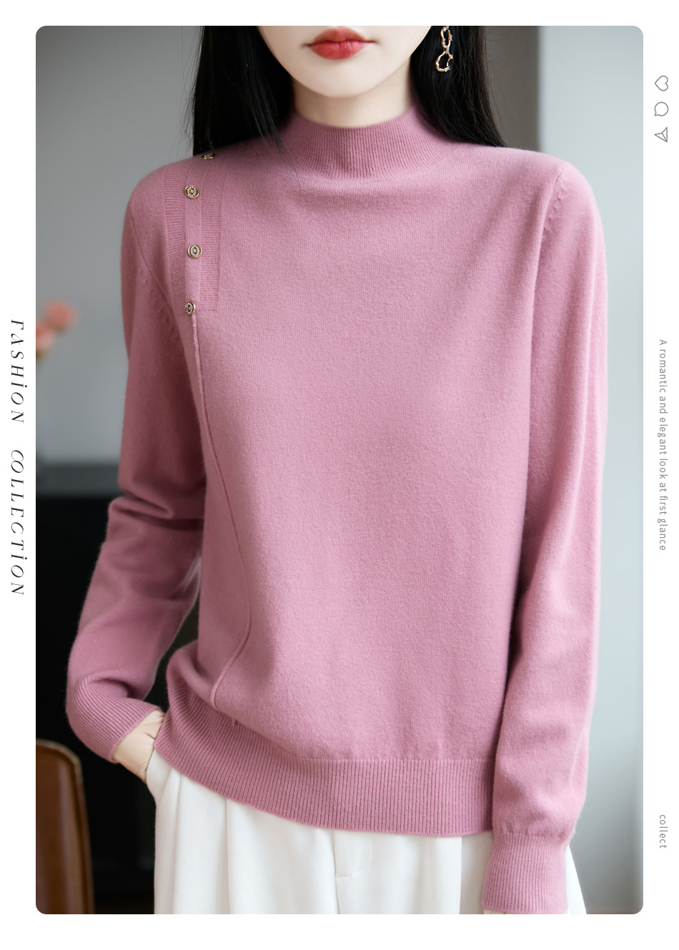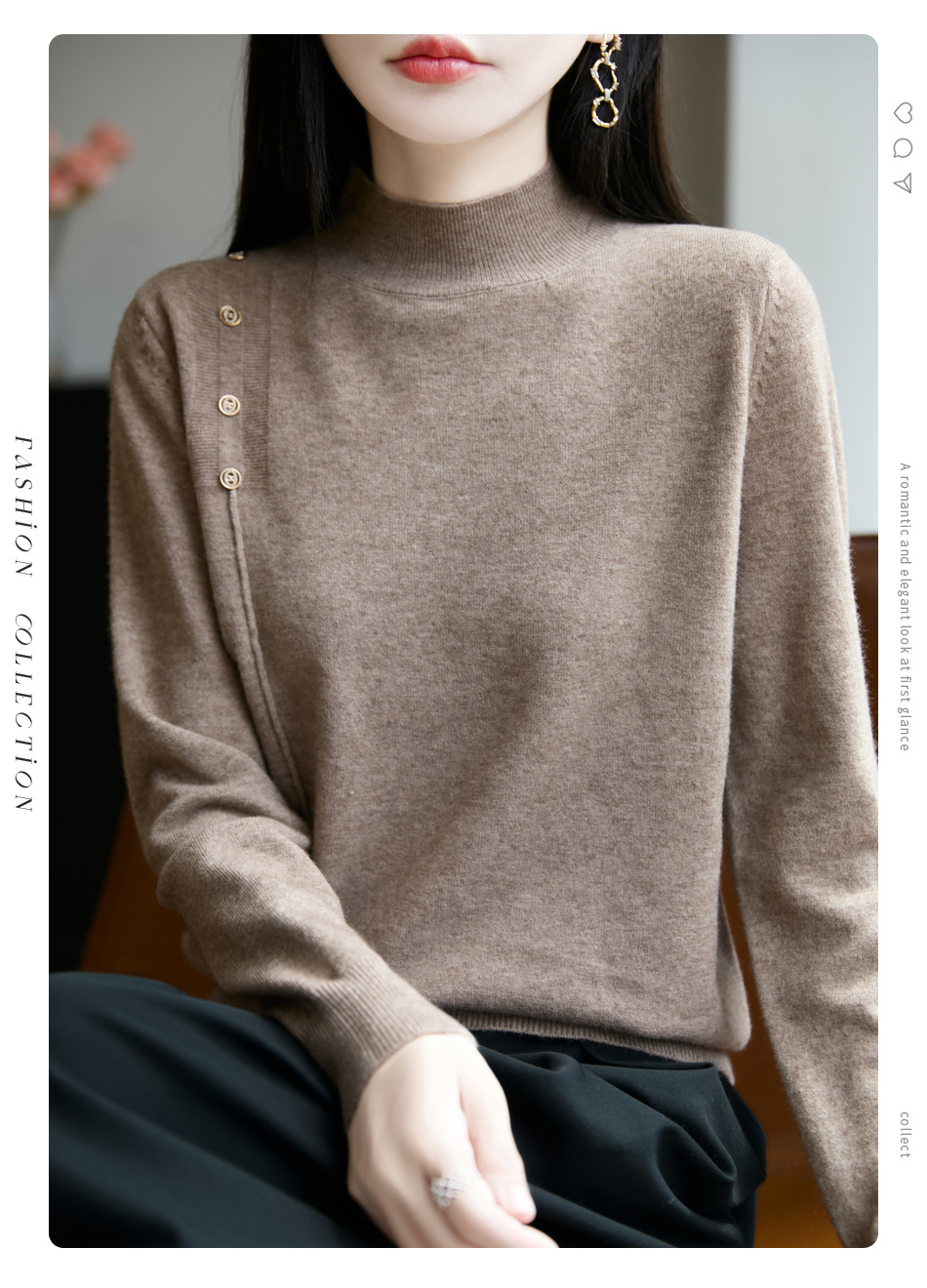 2025新款秋冬半高领打底衫纽扣毛衣女宽松外穿针织上衣洋气毛衣
