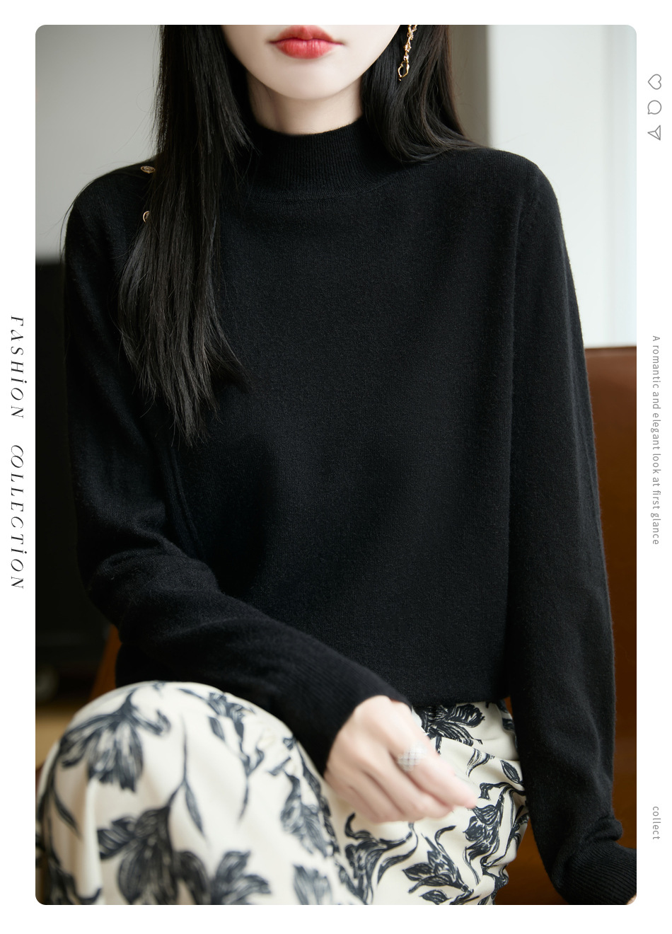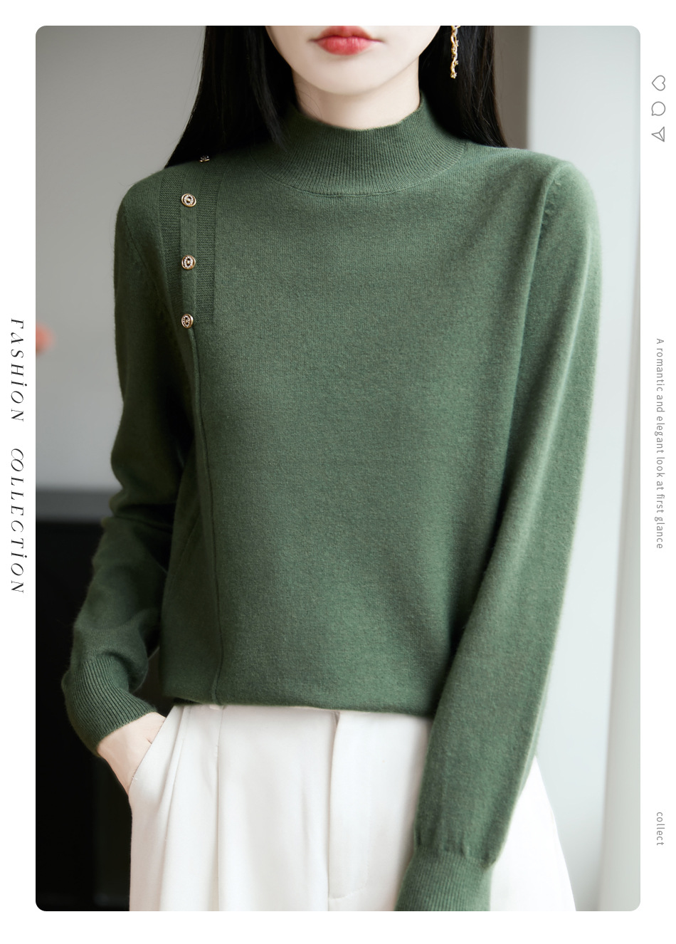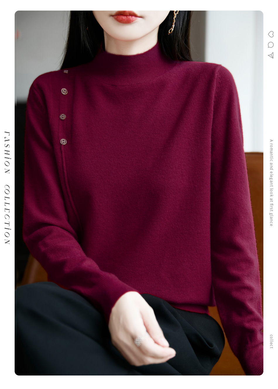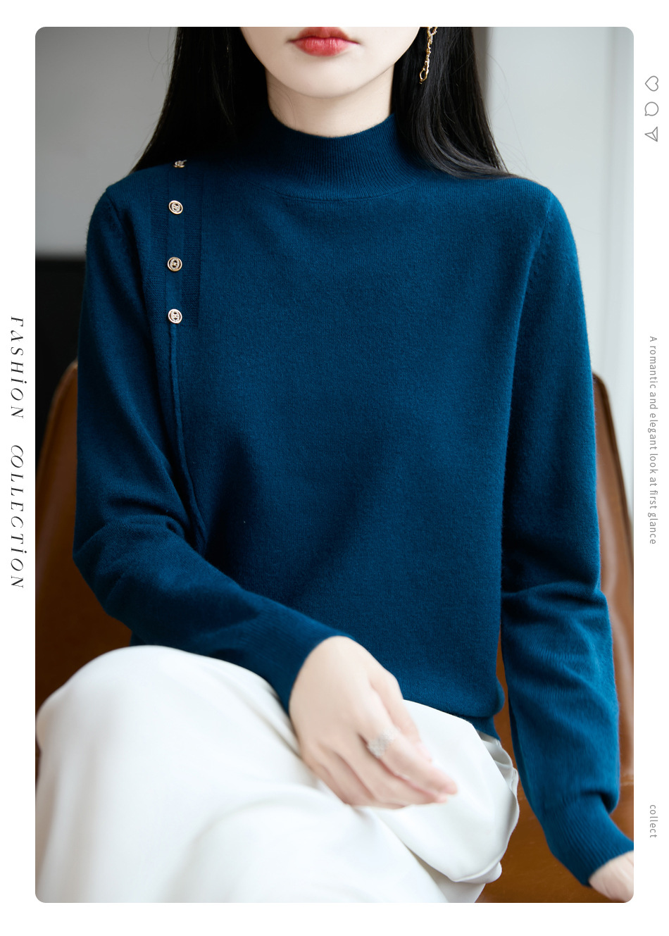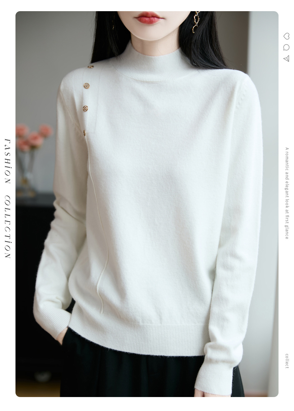 2025新款秋冬半高领打底衫纽扣毛衣女宽松外穿针织上衣洋气毛衣