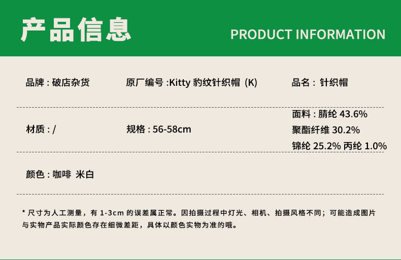 Kitty豹纹针织帽-纪念日百货门店同款165593422