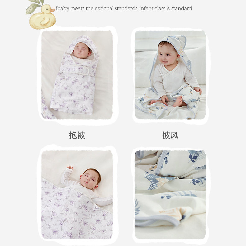 【2025年春夏新款】i-baby/英伦宝贝自然生长婴儿双层针织低敏恒温包被新出生宝宝春秋季外出防惊跳抱被