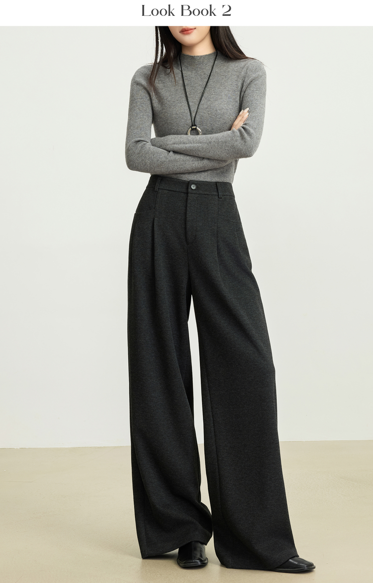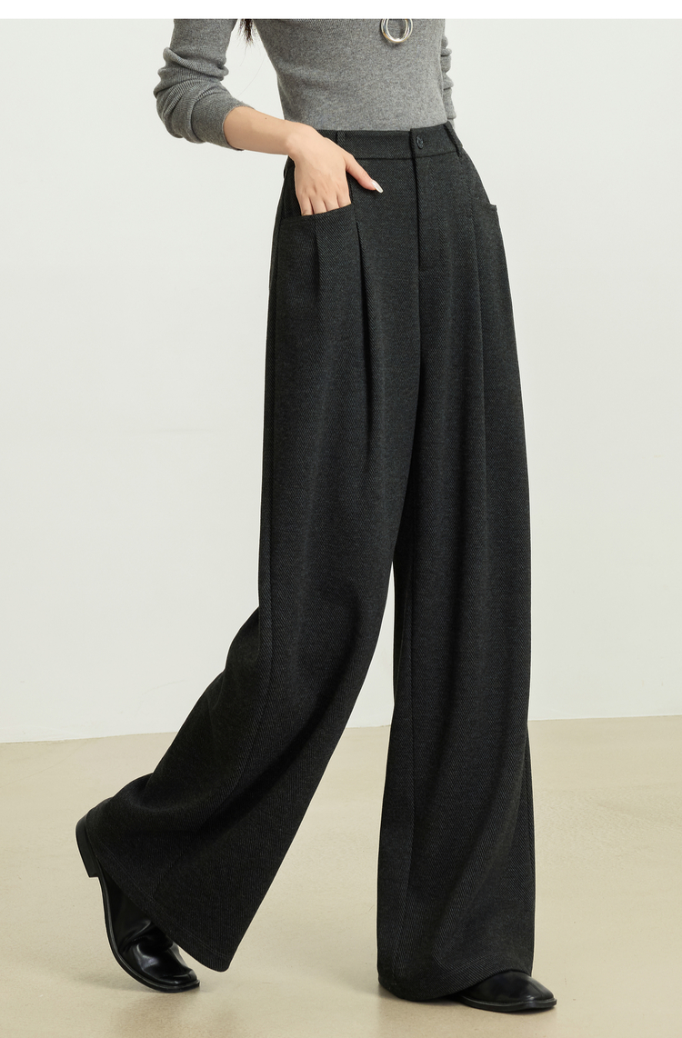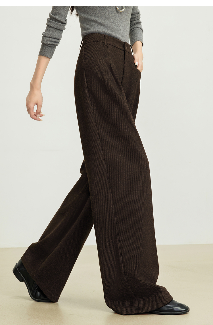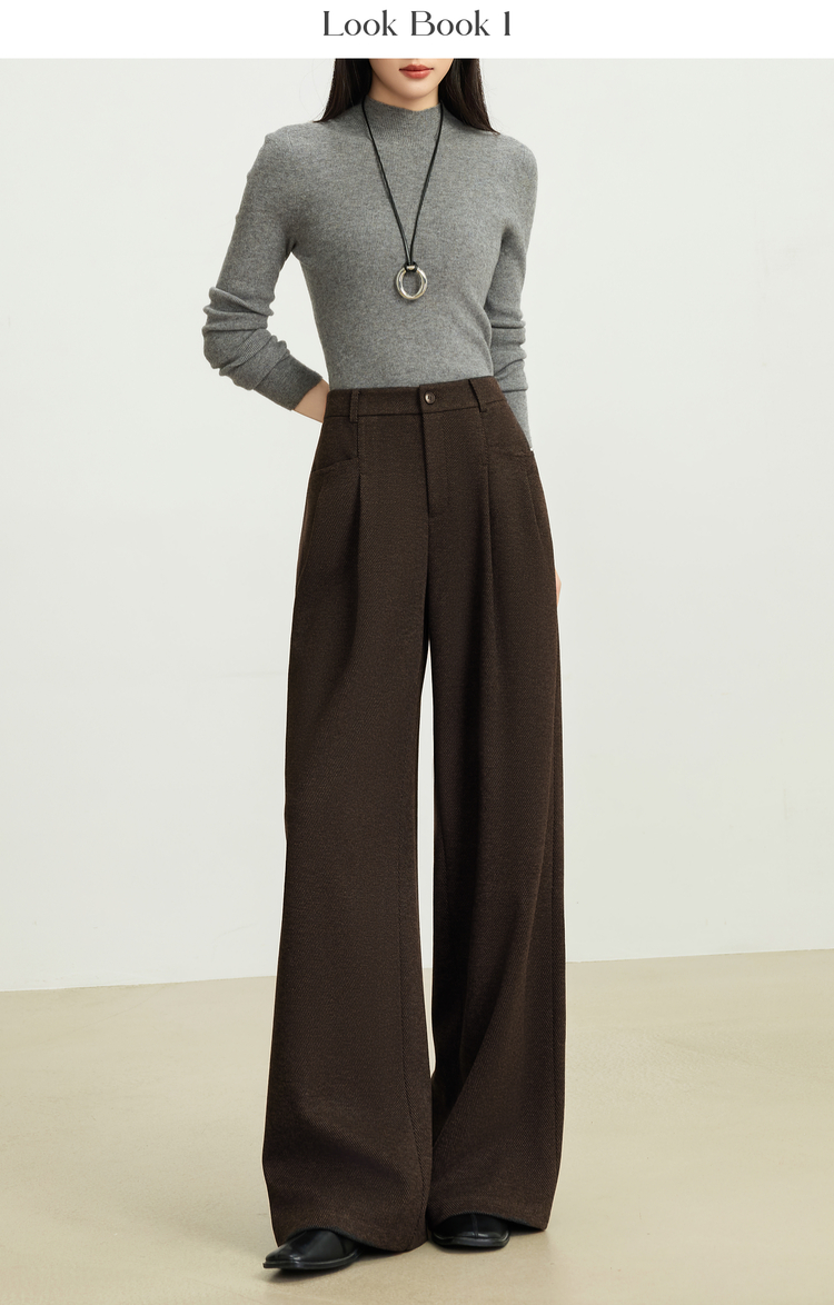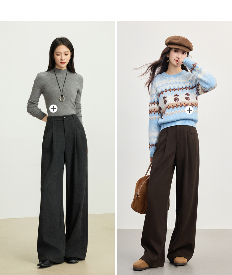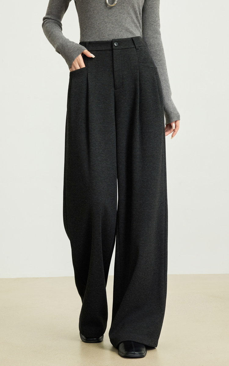 【周末秒杀】熙世界慢人休闲风羊毛呢西装阔腿裤女2025秋冬新款宽松通勤直筒裤