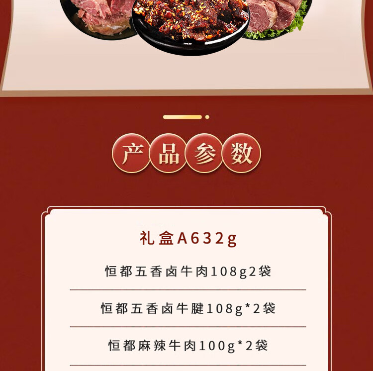 恒都 暖心驿站 焖烧牛肉 即食 休闲食品 礼盒装 职工福利 年货礼盒 恒都红焖礼盒A 6袋 约632g