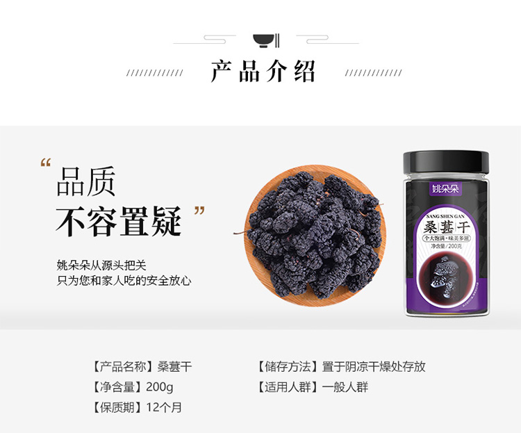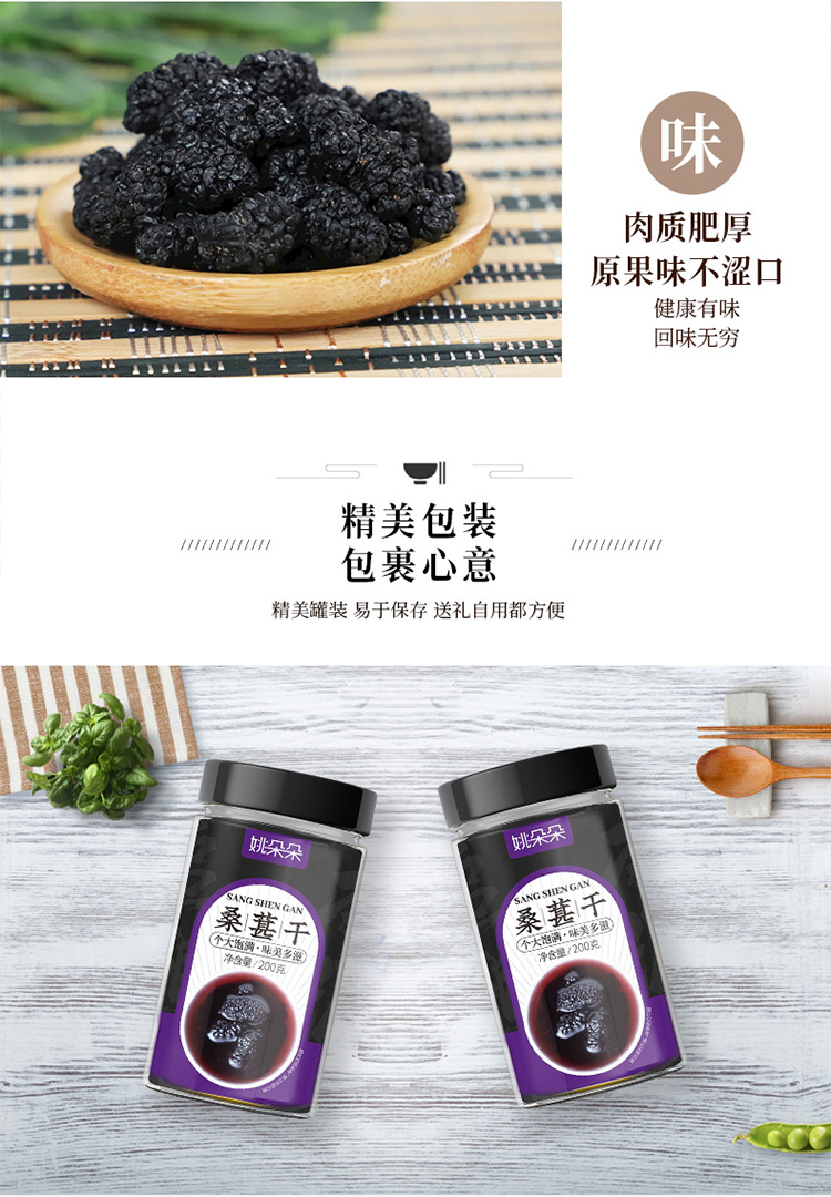 【姚朵朵】大果桑葚干200g*2罐 无沙黑桑葚子 养生茶 桑椹子泡酒