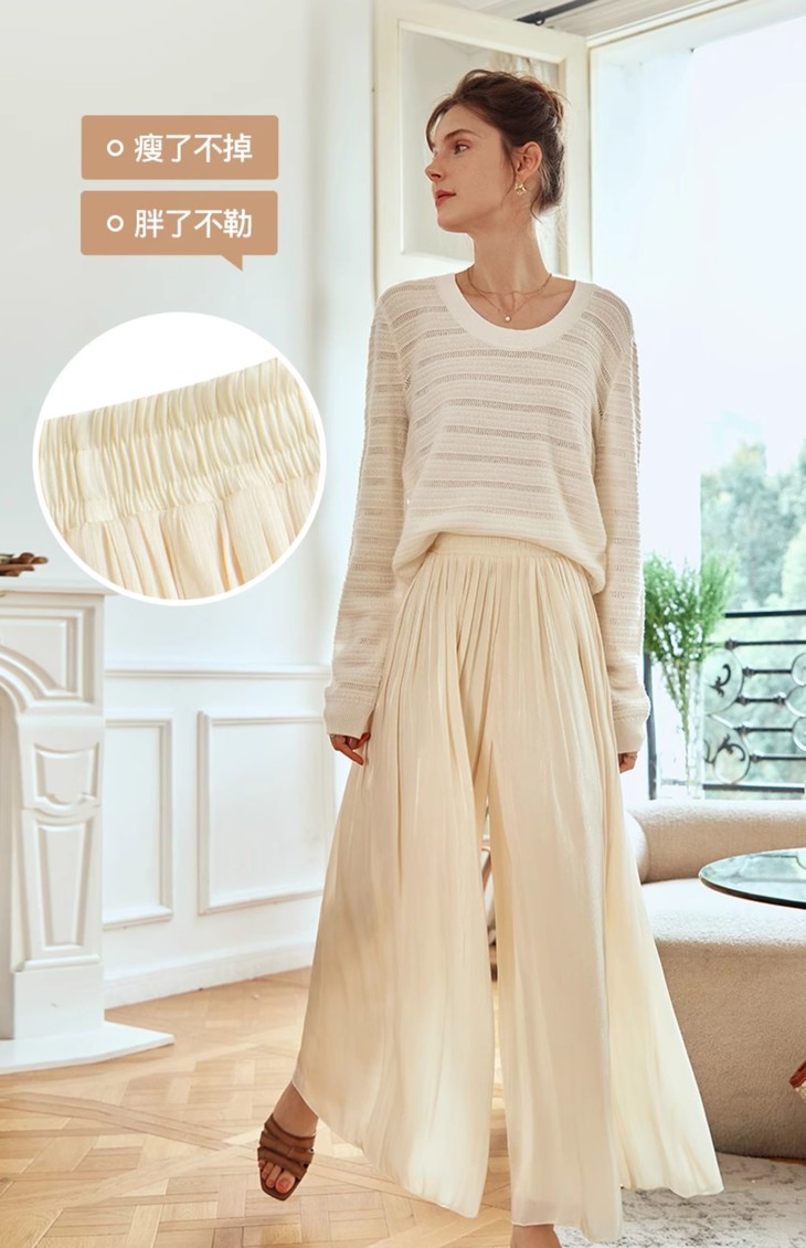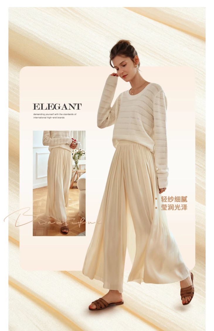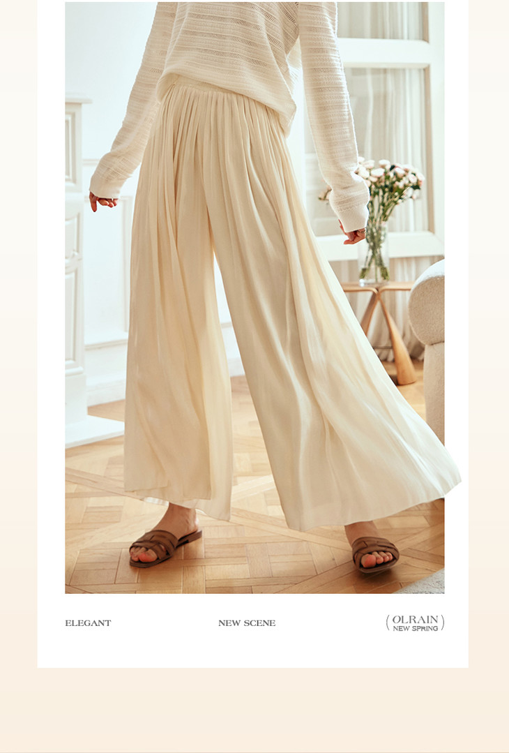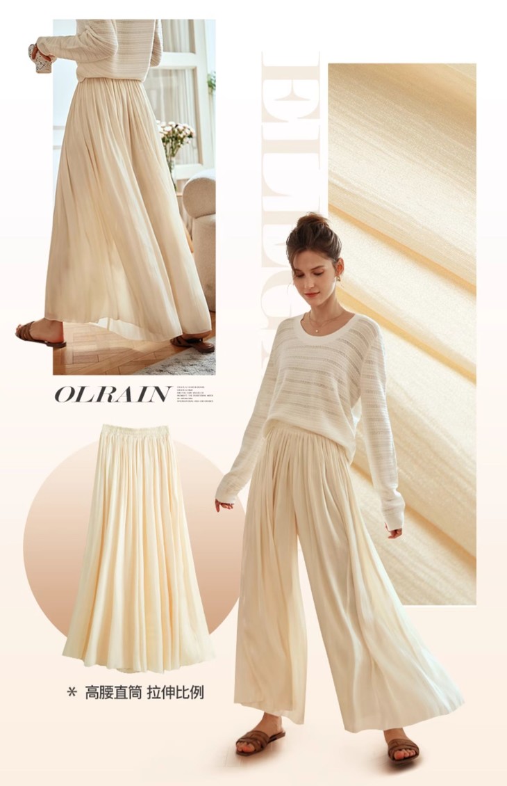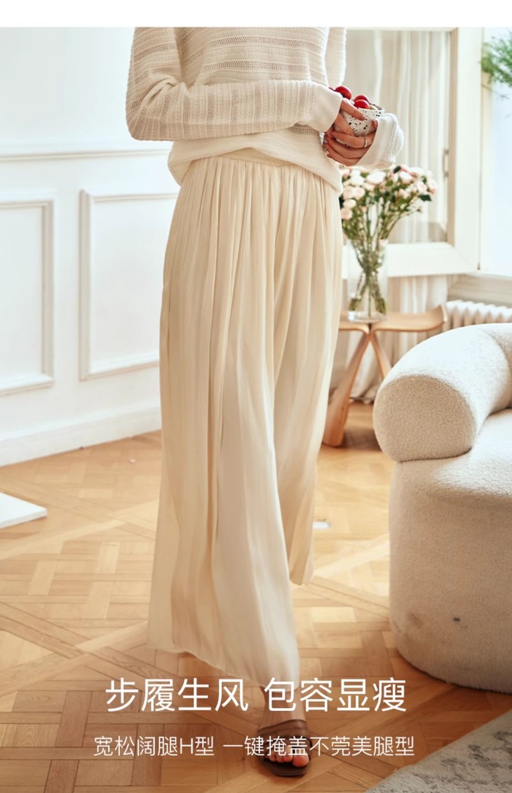 老板娘自留款巨飘逸超显瘦!垂顺不走光!不挑腿型谁穿都好看!OLrain欧芮儿杏黄色休闲裤女早春2024年新款时尚百搭阔腿裙裤