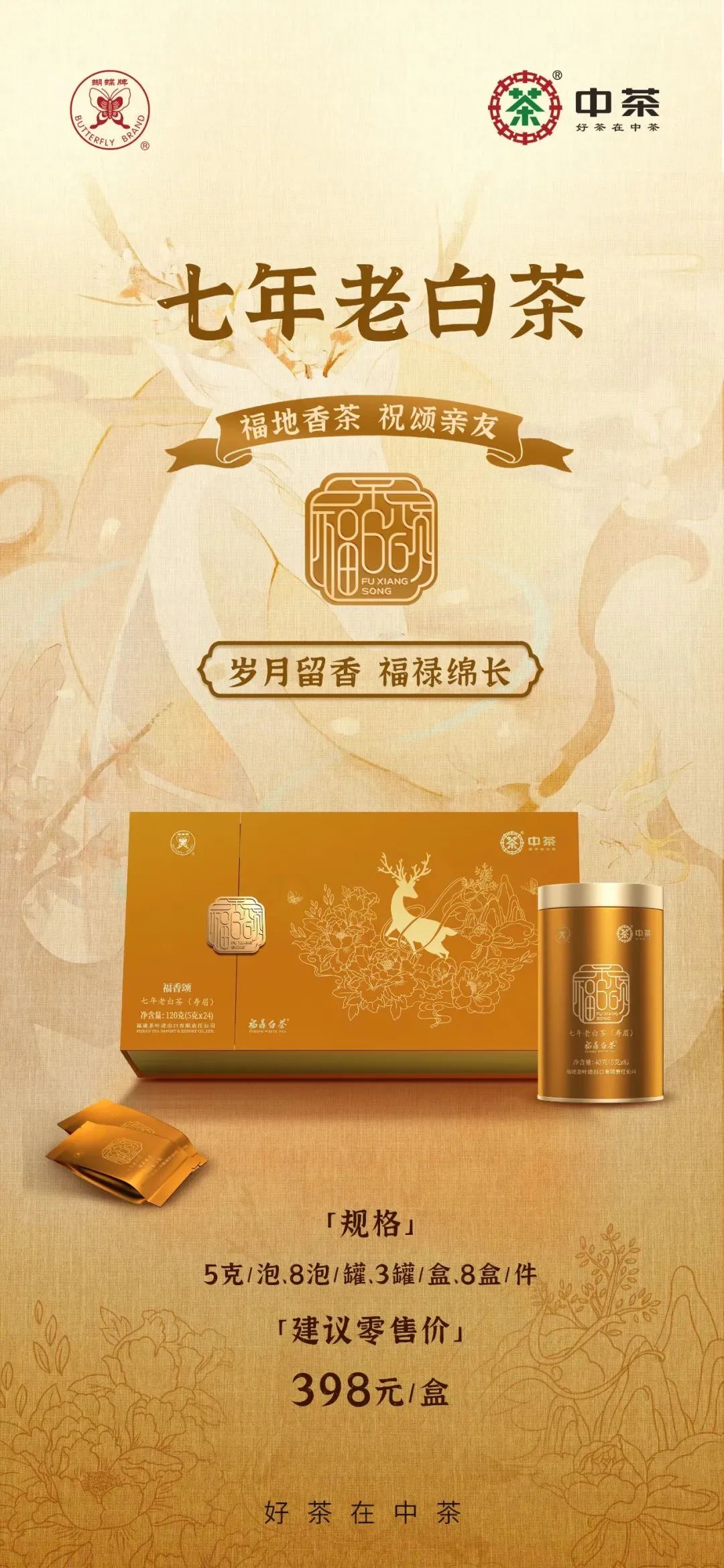 2022中茶蝴蝶5182福香颂七年陈寿眉礼盒120g