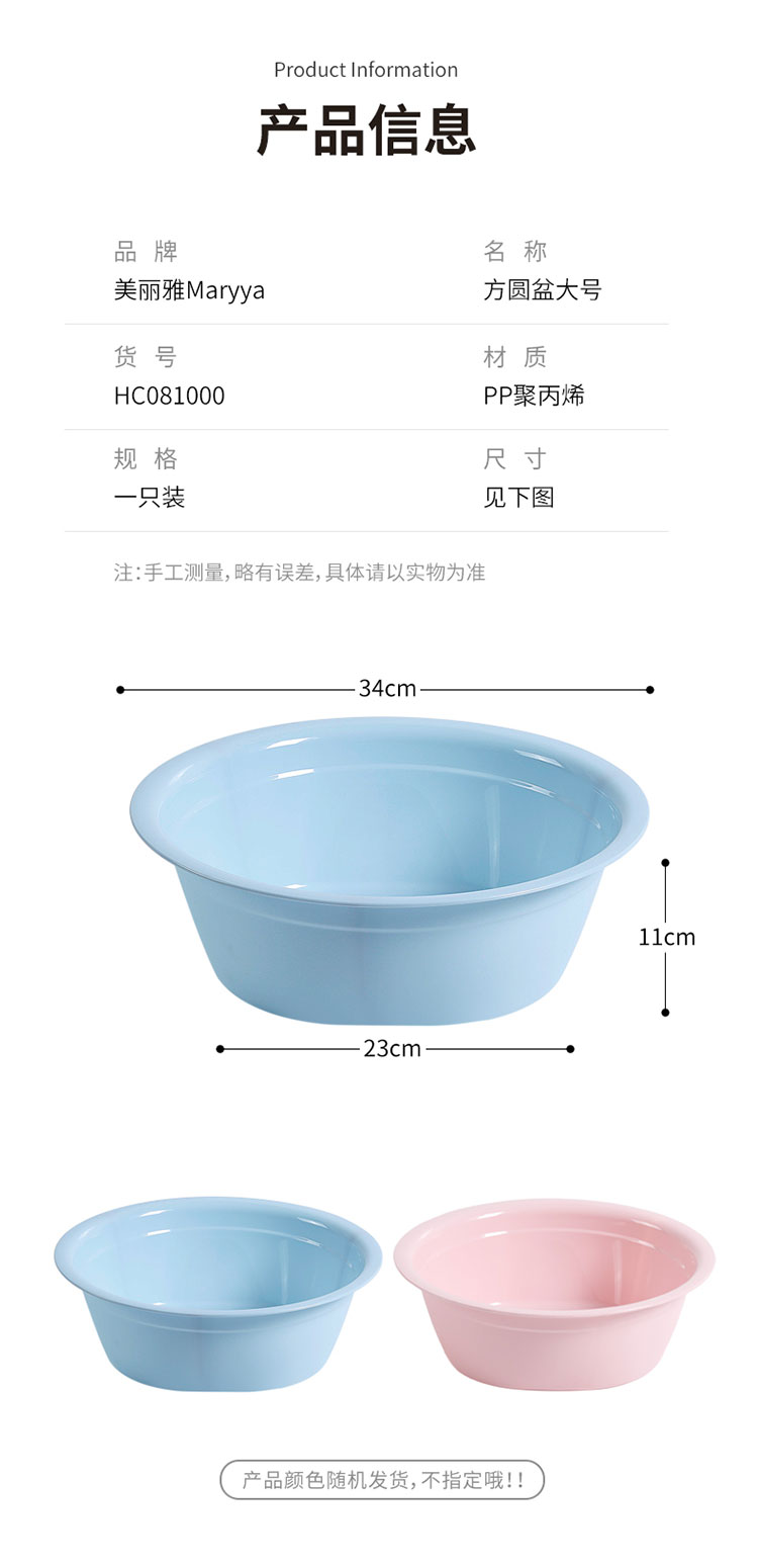【批发】美丽雅盆 洗脸洗菜洗衣盆家用小号学生宿舍加厚耐用塑料盆 颜色随机