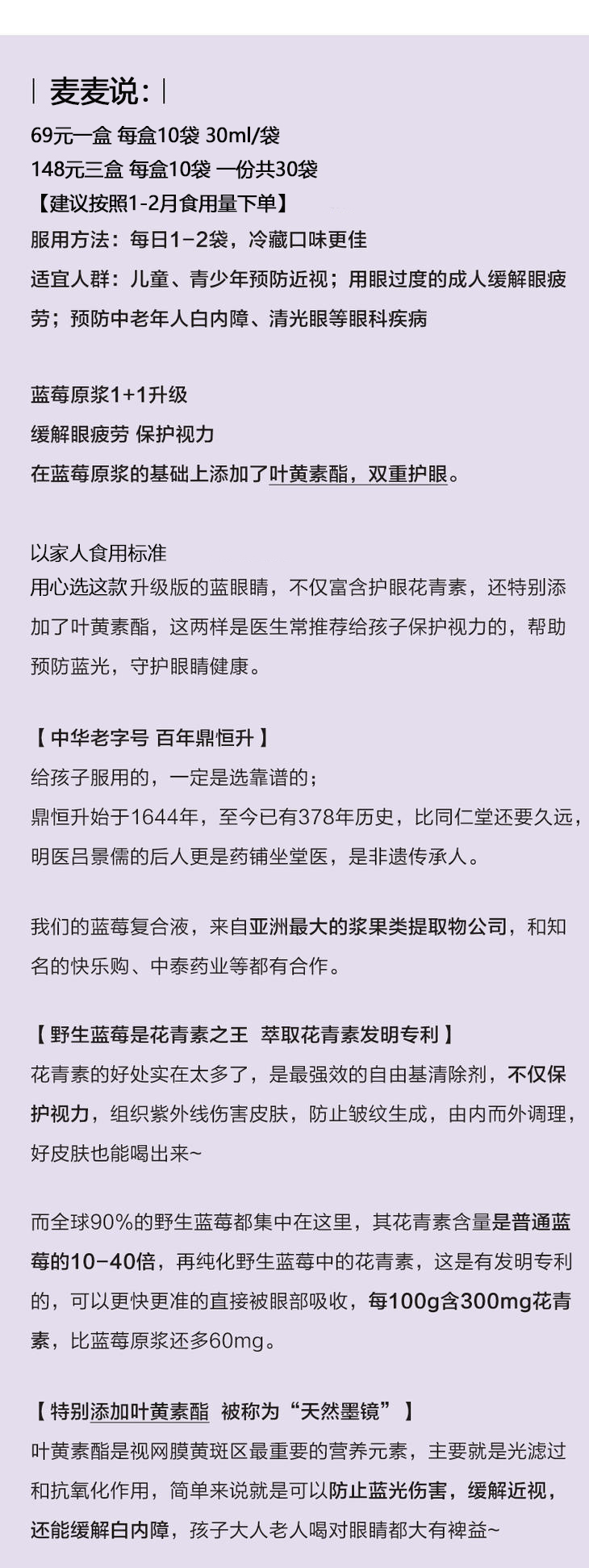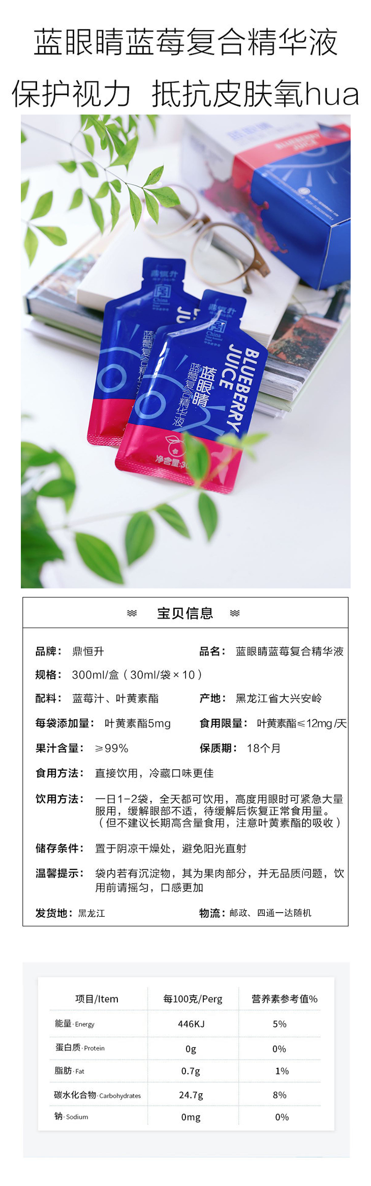 【拍3盒减59元丨鼎恒升蓝莓复合精华液】三百年药企,添加满满花青素和叶黄素酯!每日1-2袋,保护眼睛,预防近视,美容养颜!一盒30ml*10袋!