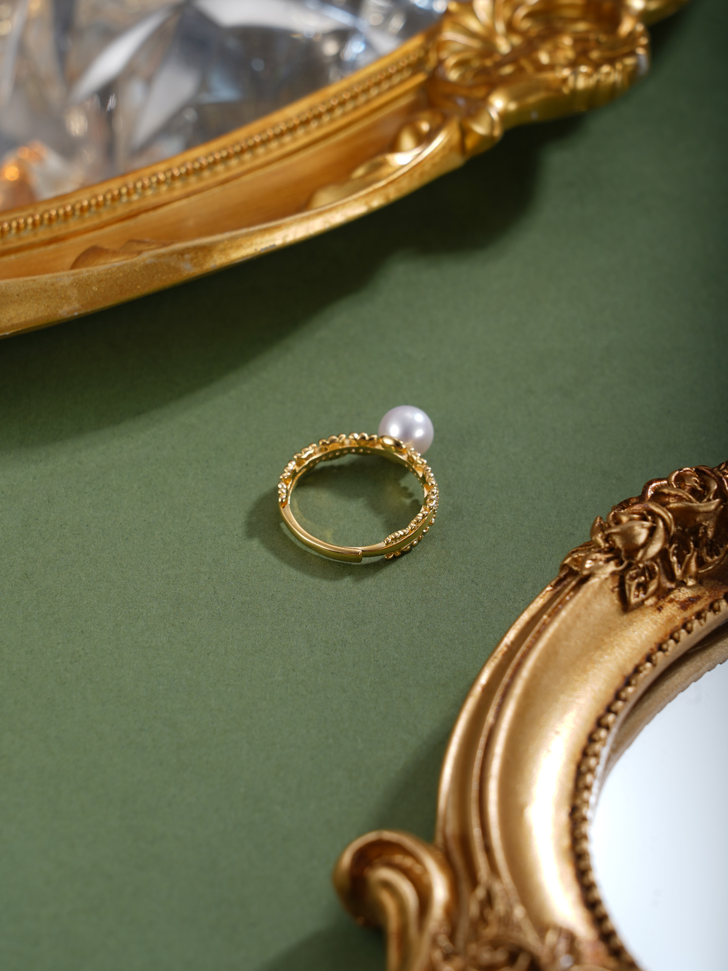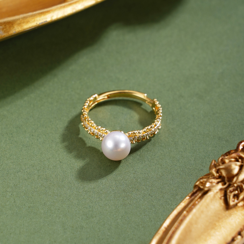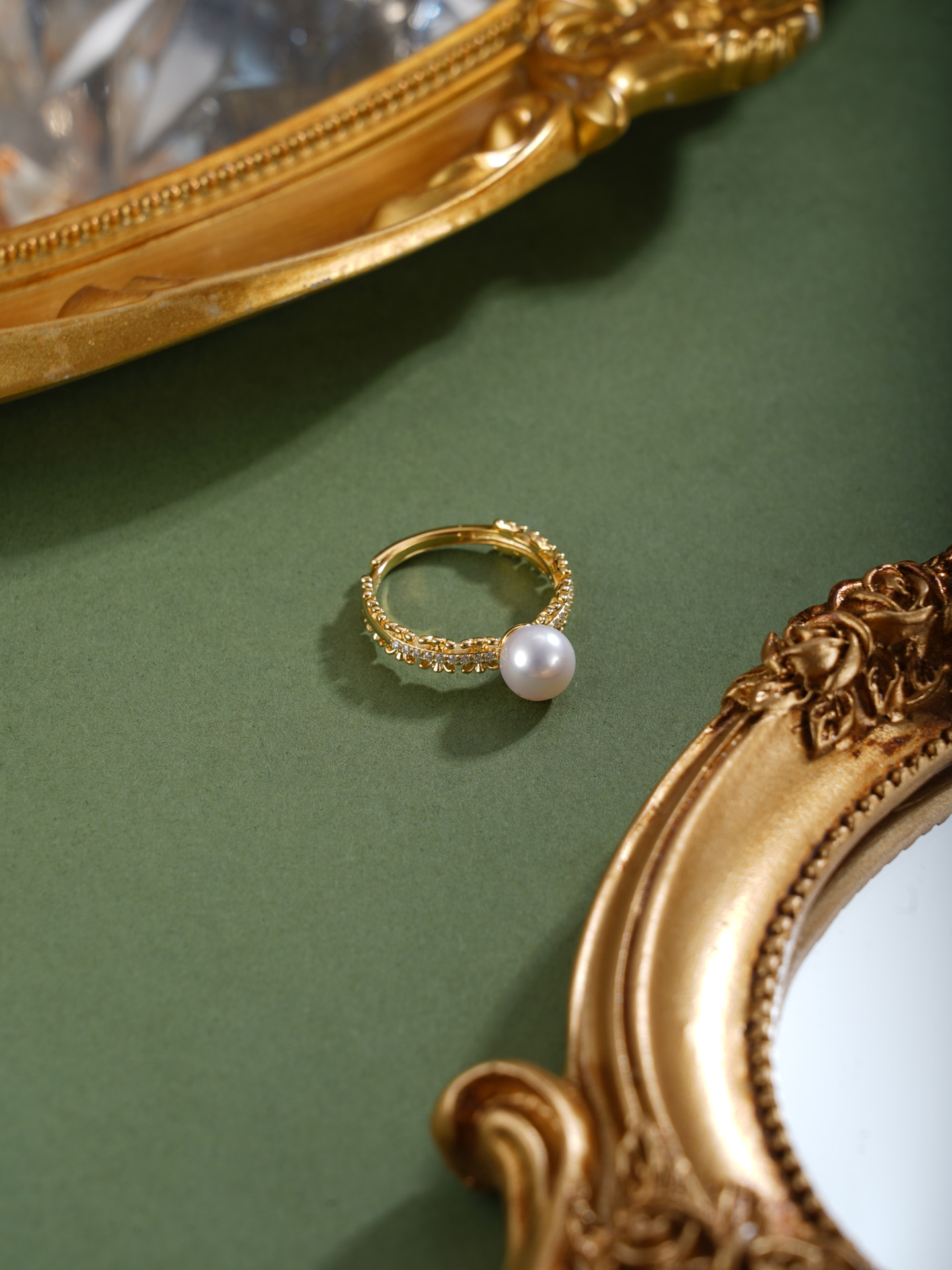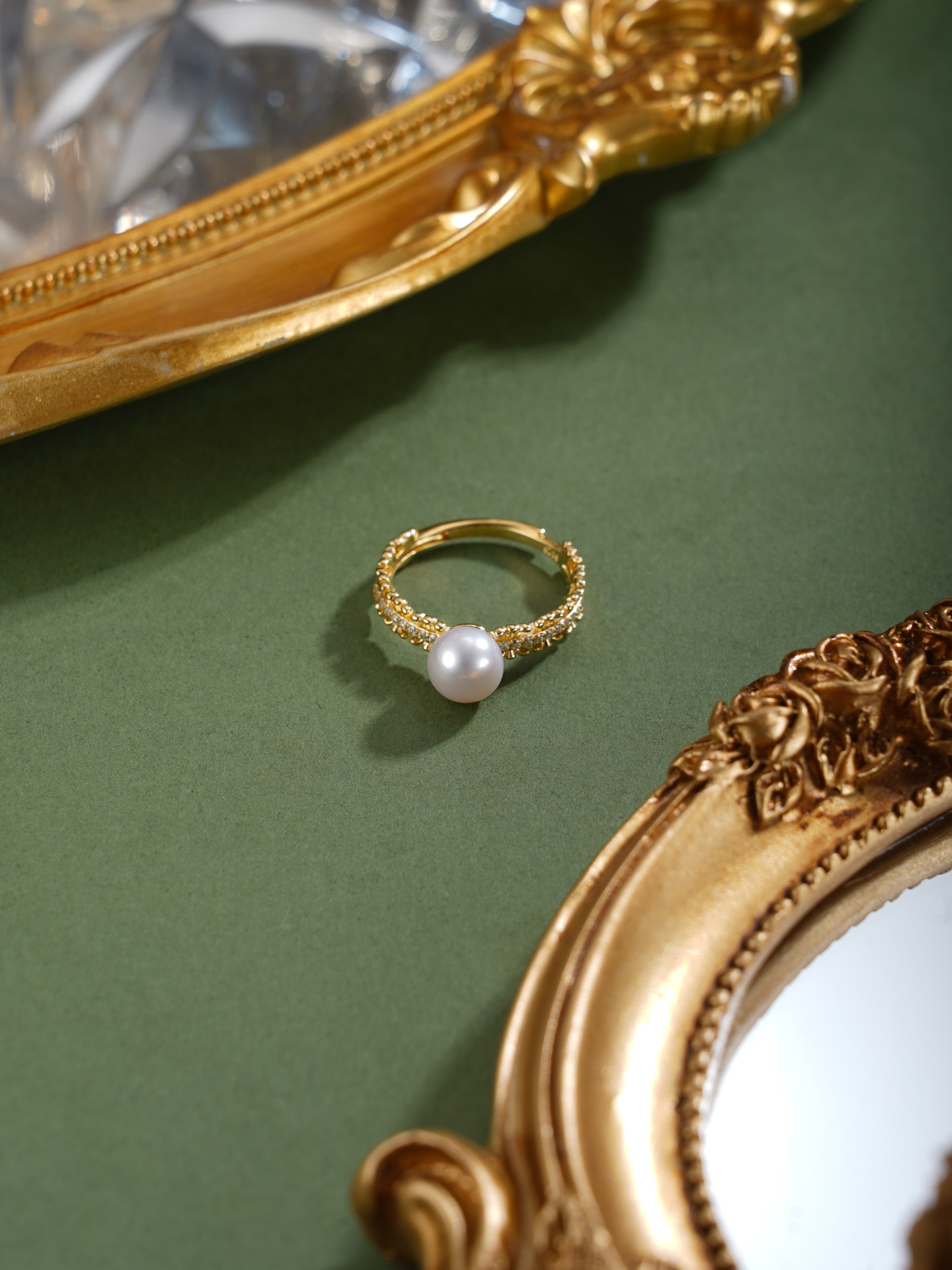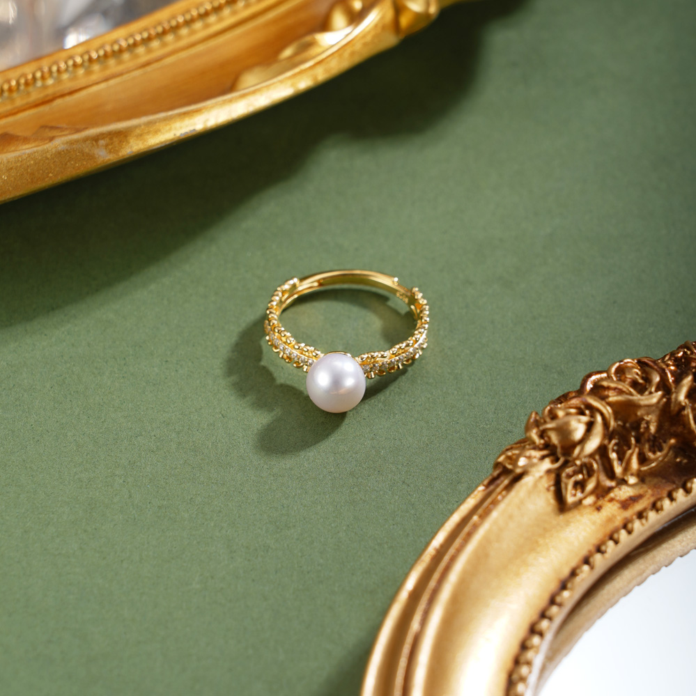 子佩集【真我之始】银S925珍珠惜王妃戒指【R2315】镀金单排钻2602