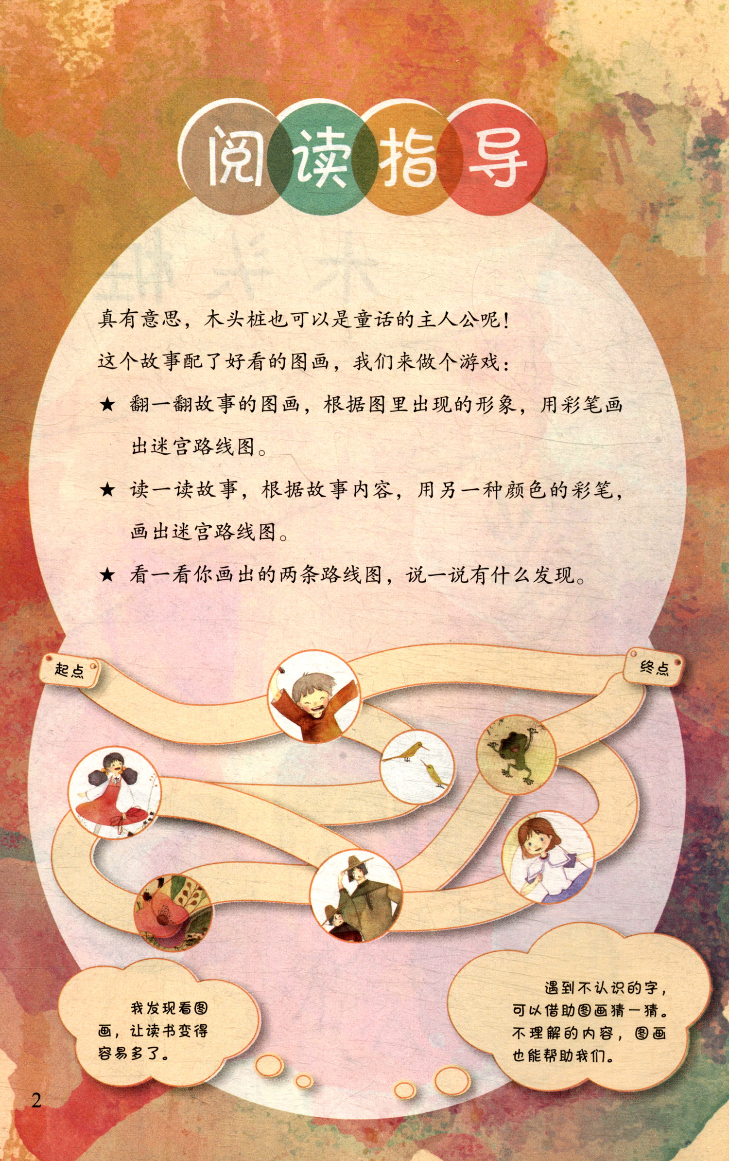 翻一翻《快乐读书吧·名著阅读课程化丛书 歪脑袋 木头桩 2年级/上册》的图画,根据图里出现的形象,用彩笔画出迷宫路线图。