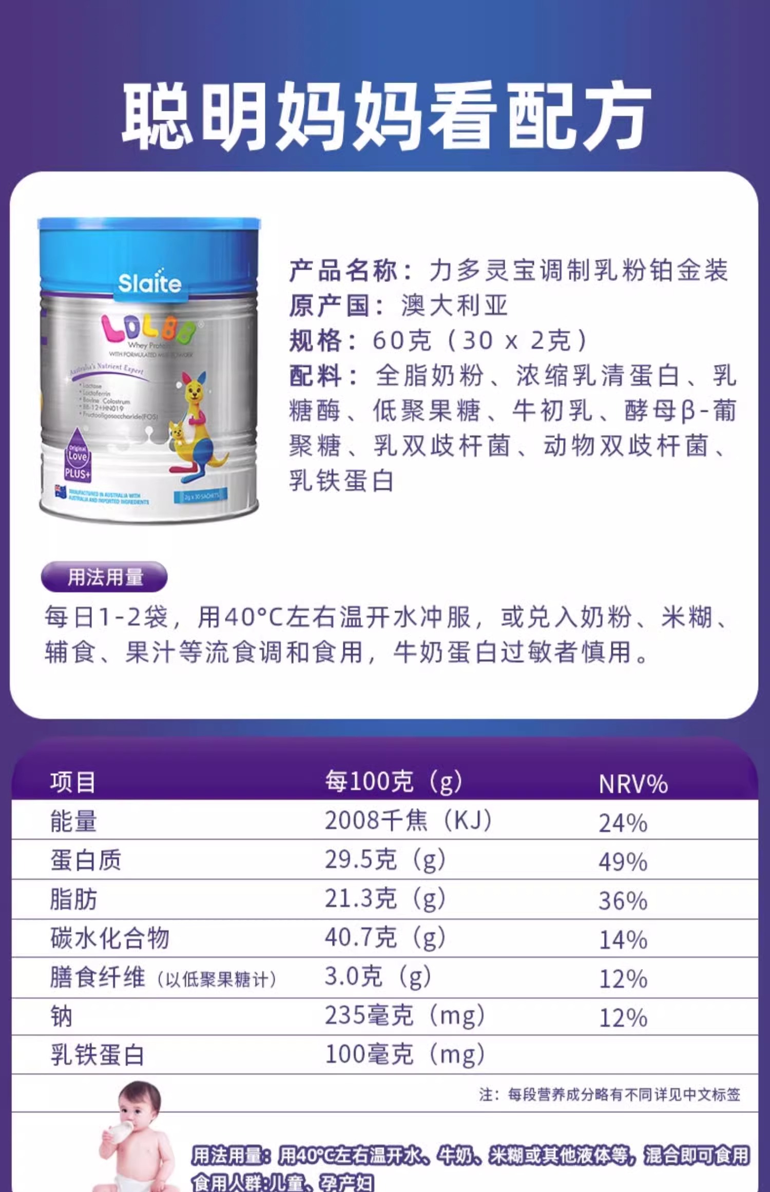 slaite新西特乳铁蛋白力多灵宝铂金版儿童调制乳粉澳洲宝宝/XXT-004324