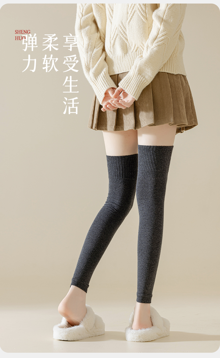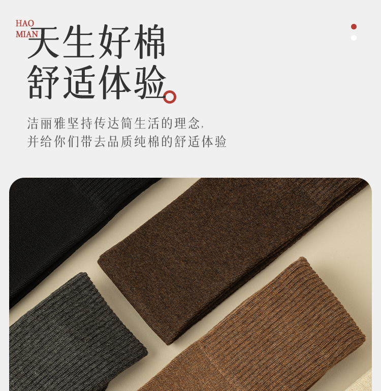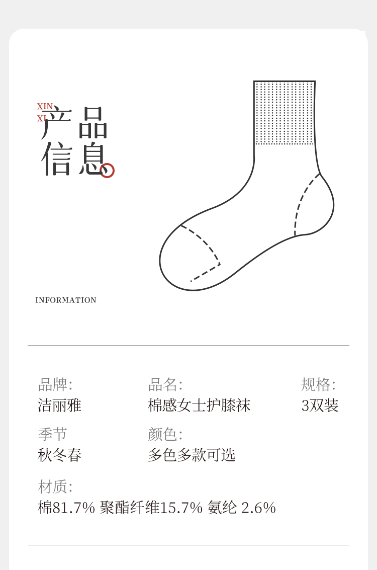 洁丽雅3双装女士棉质长筒袜弹力舒适柔软无骨高支简约纯色护膝袜