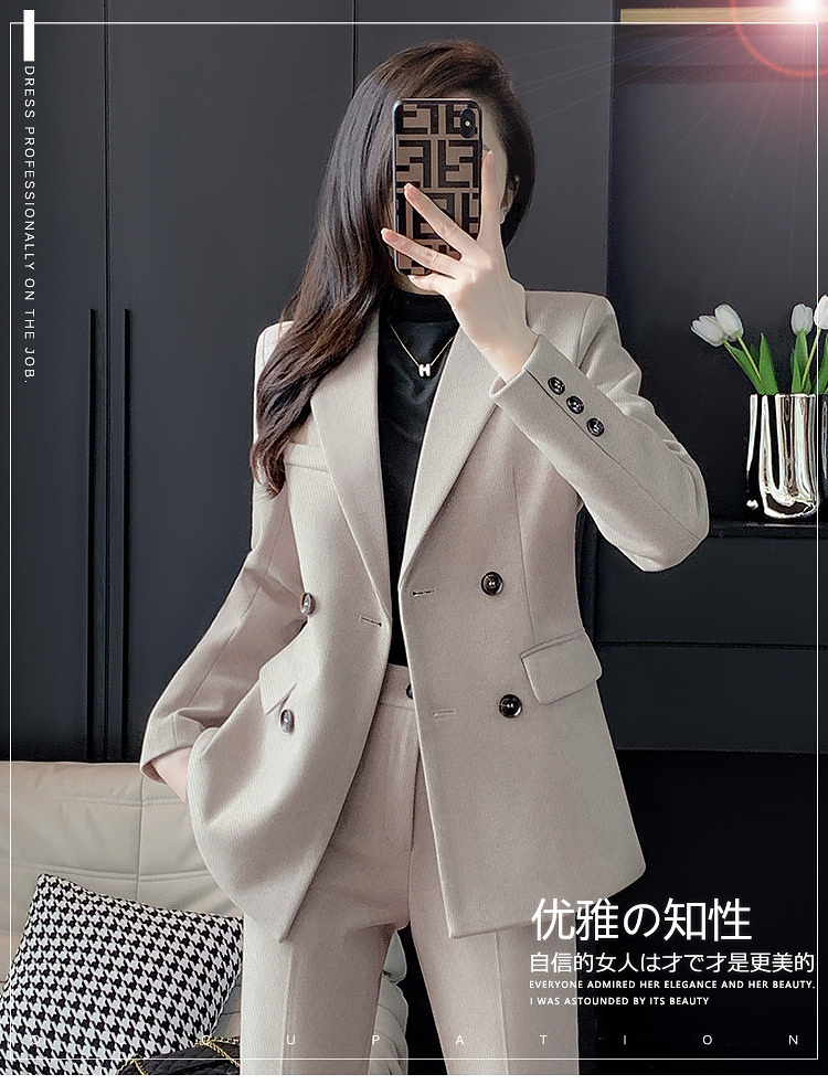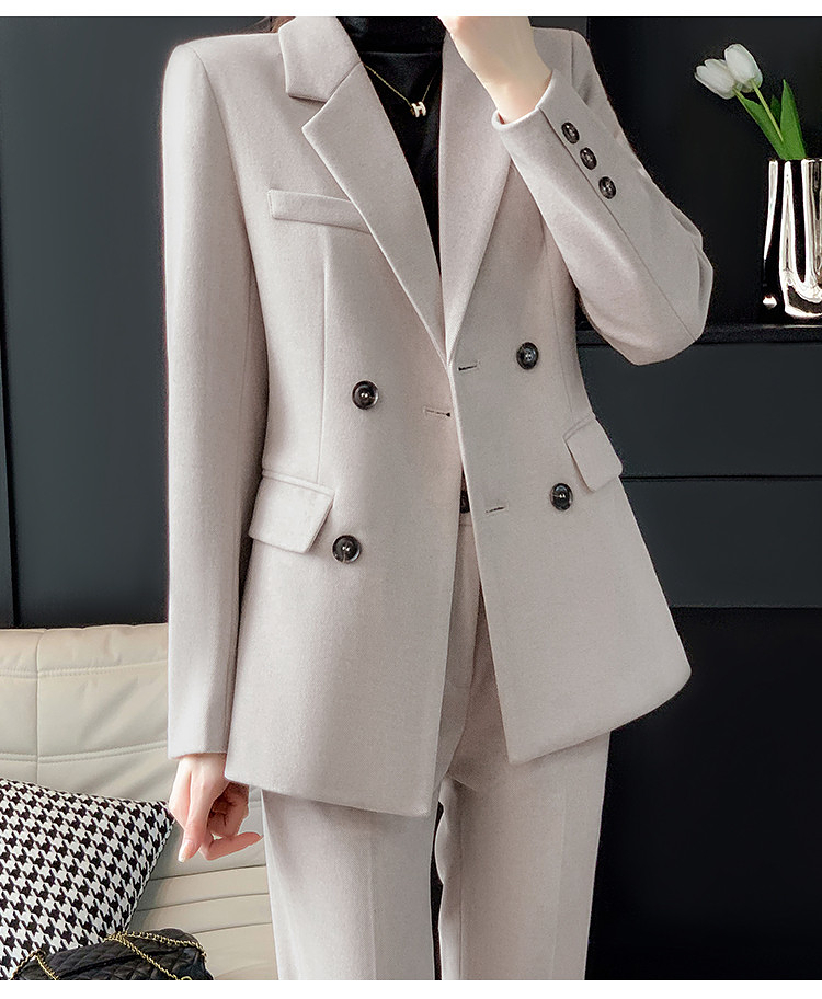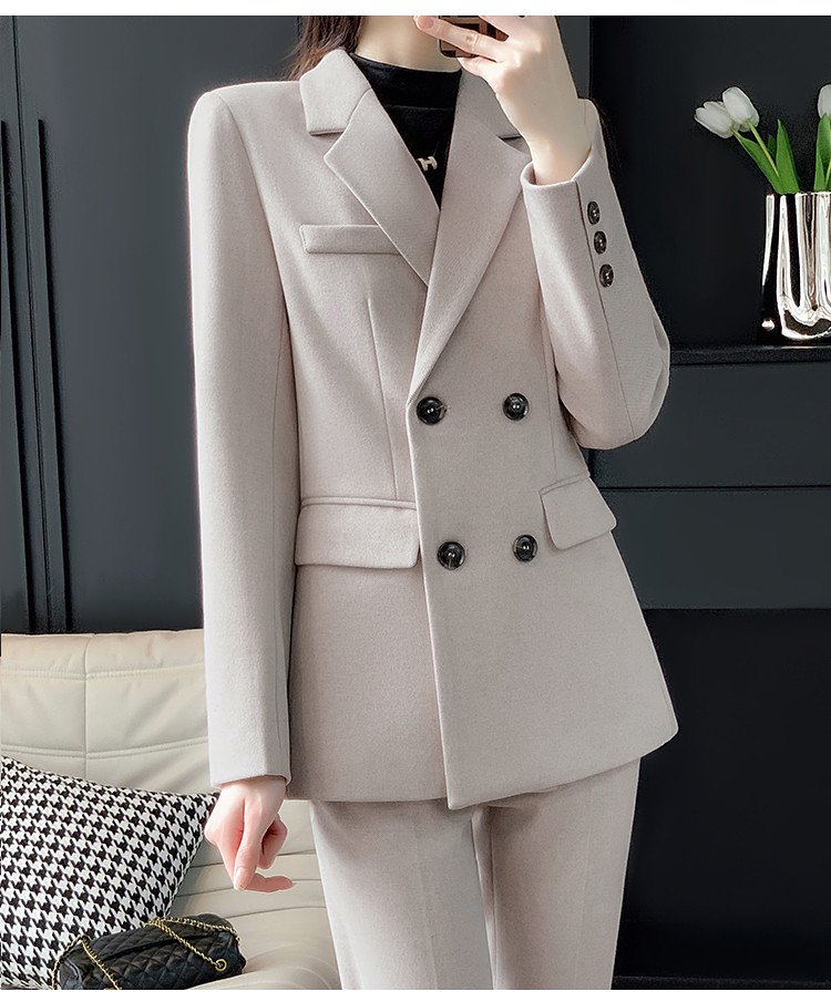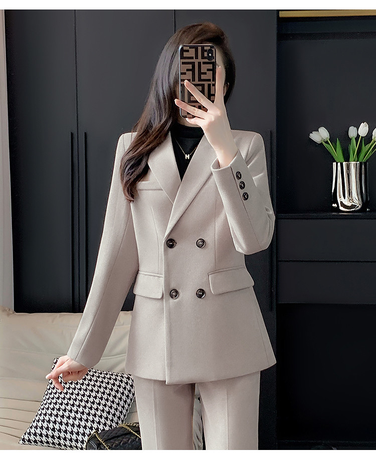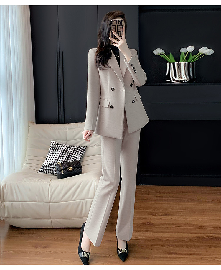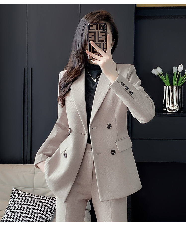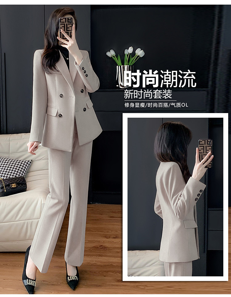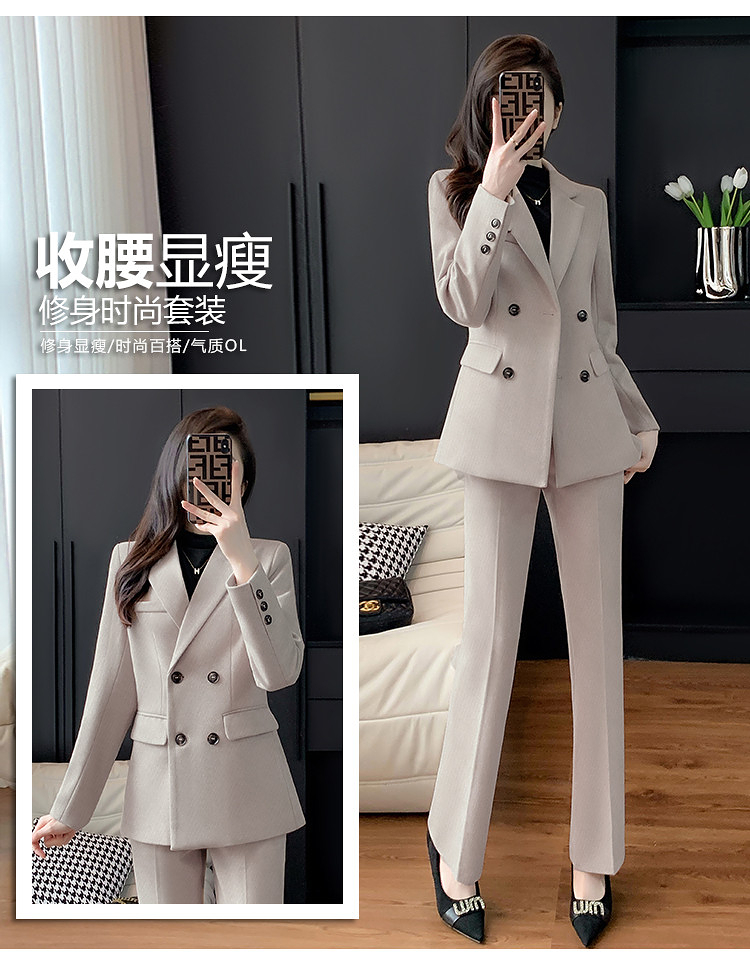 奢姿女装2025新款气质翻领职业套装女士时尚双排扣西装裤子两件套250918891