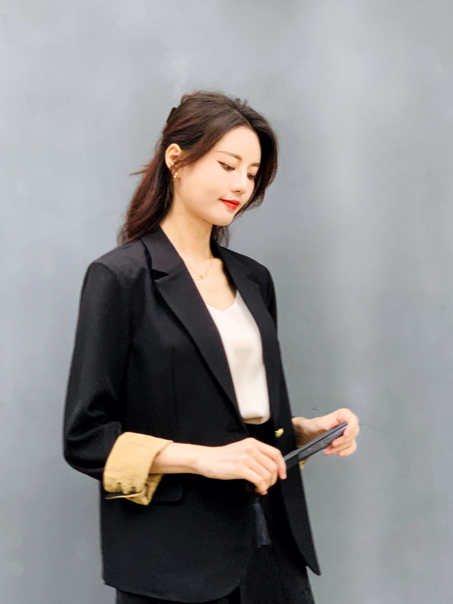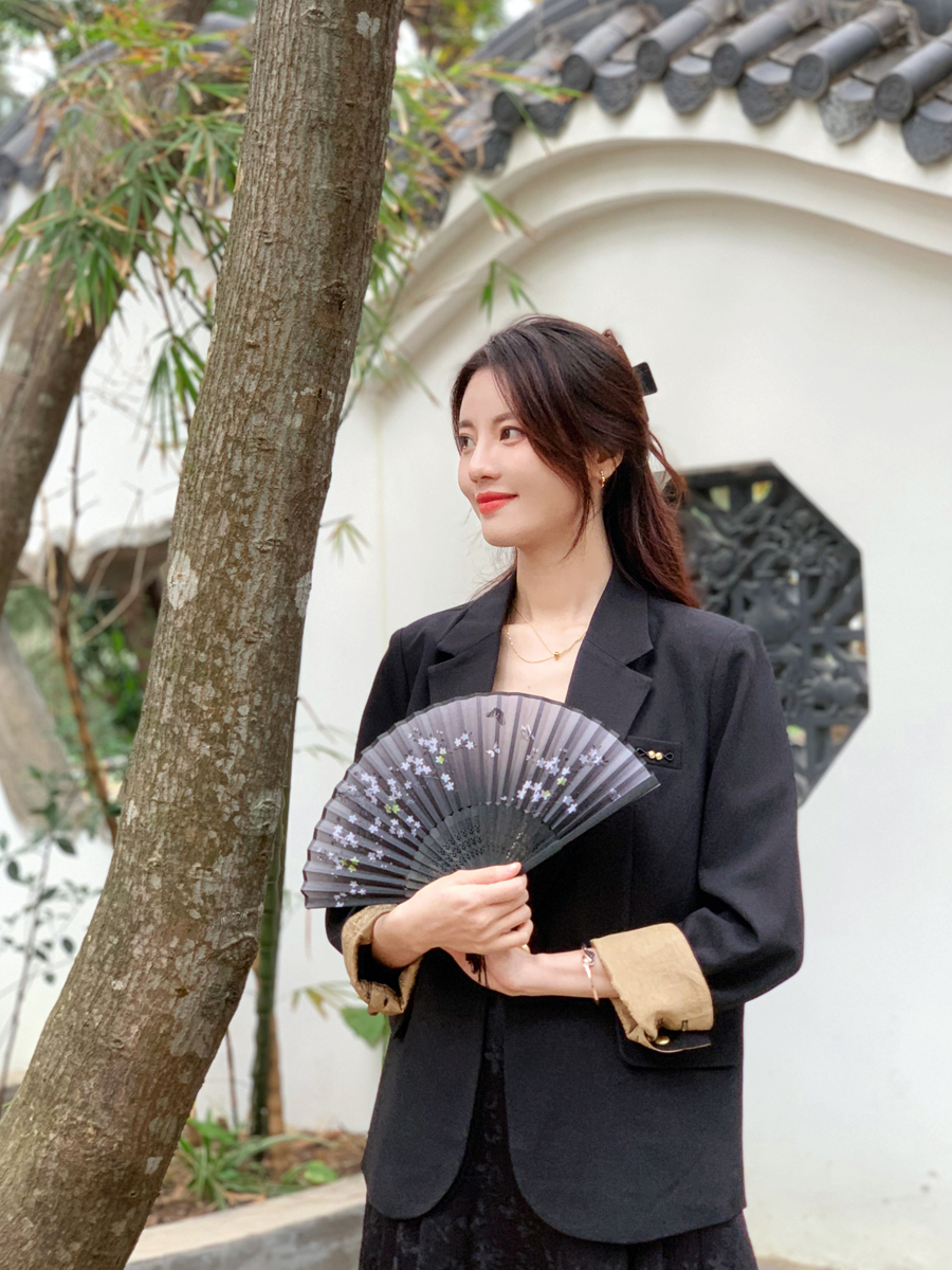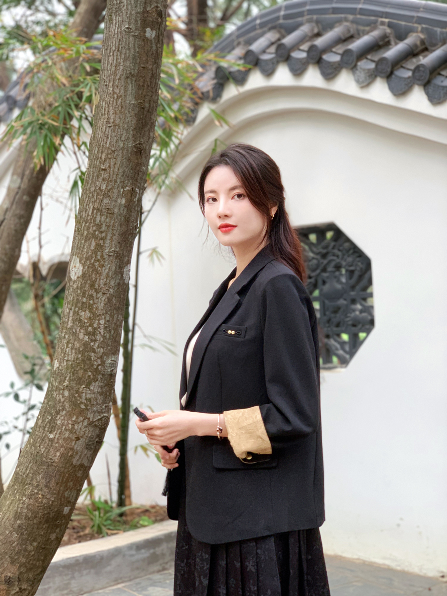 【百图lulu定制】【国风西装】新中式西装 正肩 单层 袖口拼接刺绣 挺括 长袖 国风翻边 七分袖西装