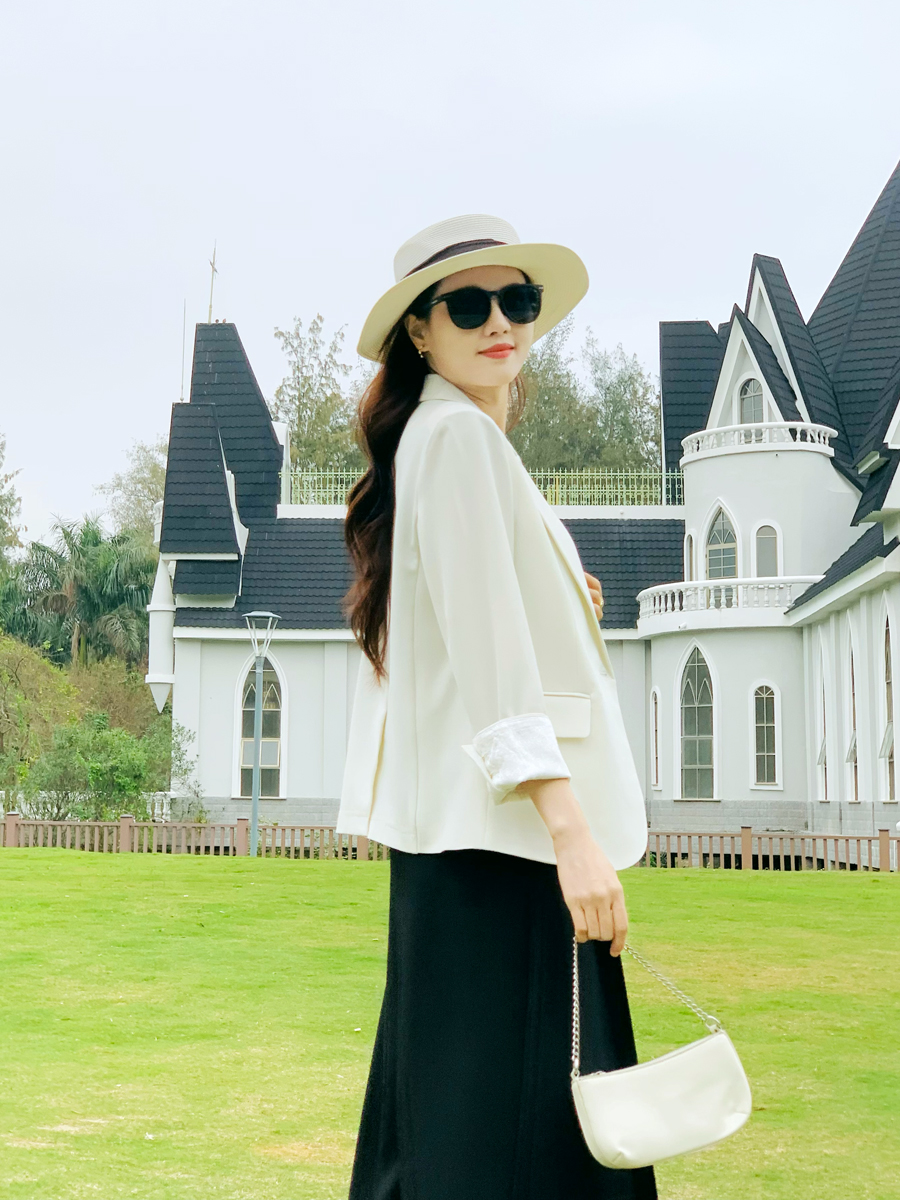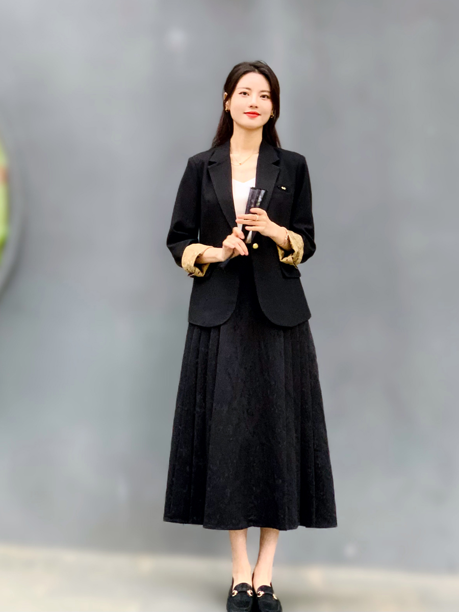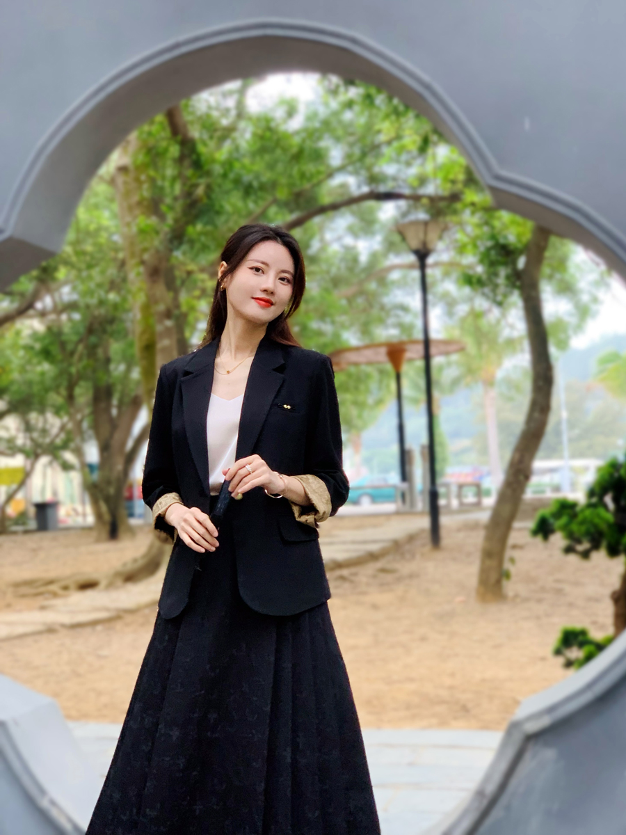 【百图lulu定制】【国风西装】新中式西装 正肩 单层 袖口拼接刺绣 挺括 长袖 国风翻边 七分袖西装
