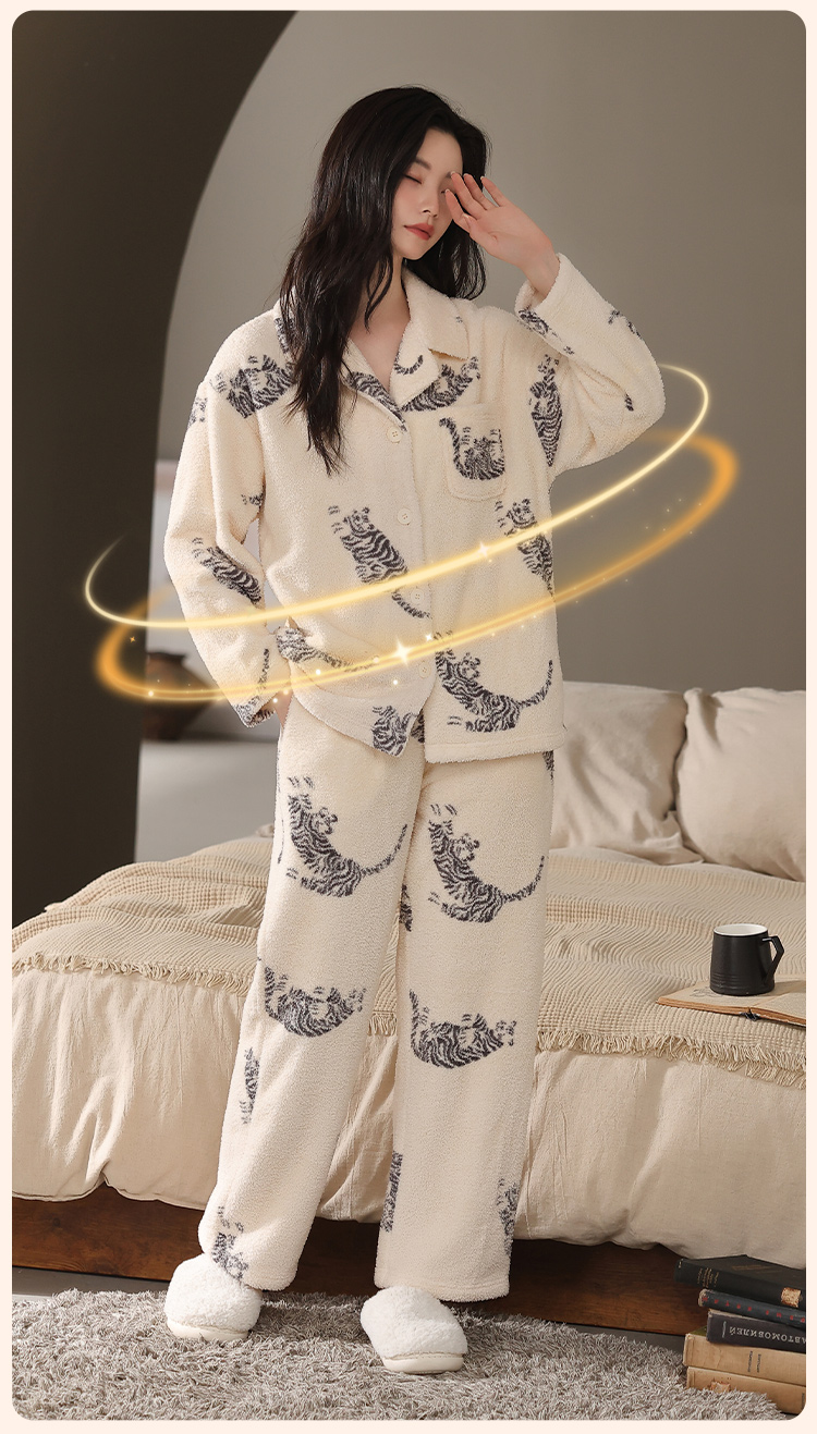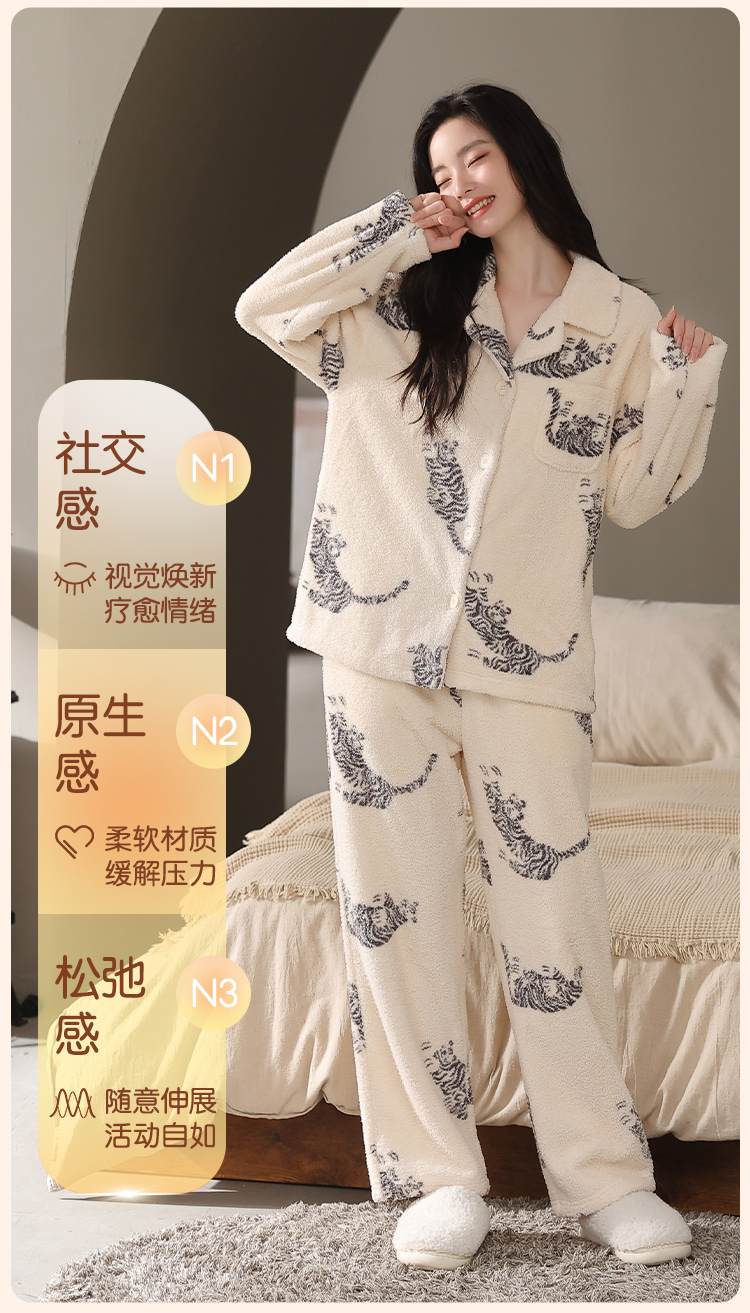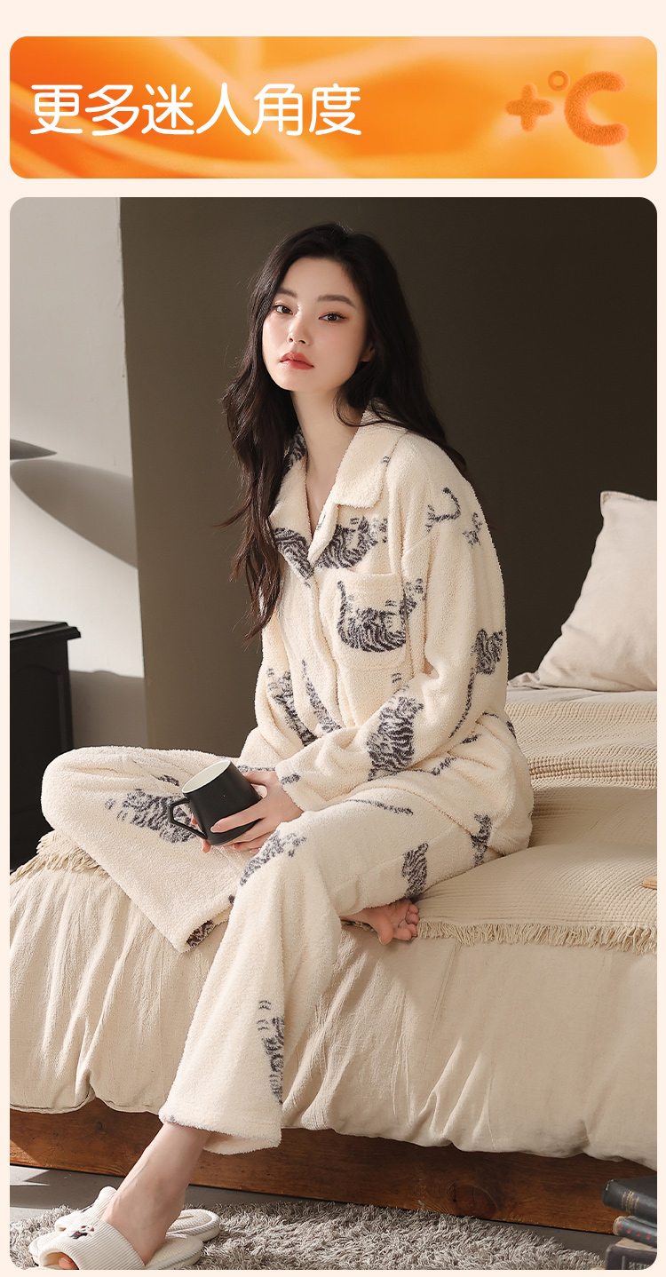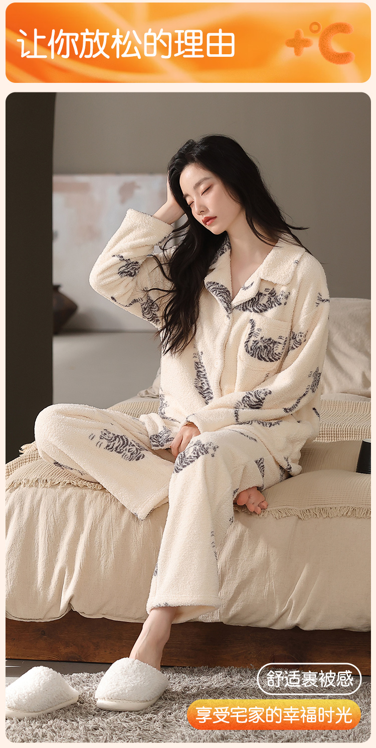 【M-2XL】【猫人】女士冬款半边绒家居服套装