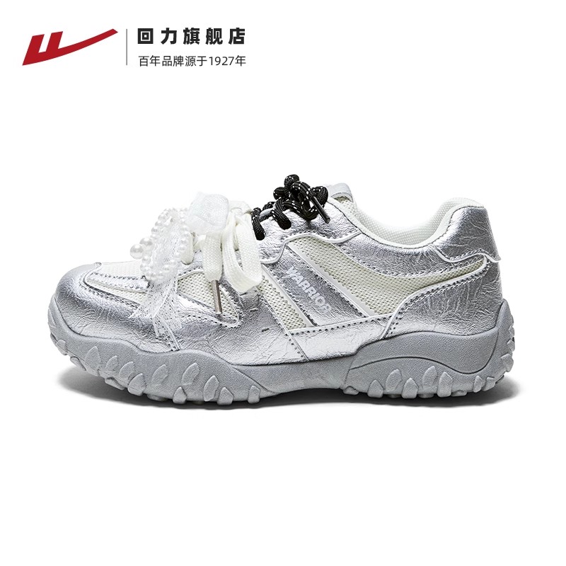 回力女鞋芭蕾德训鞋2025夏季薄底运动休闲鞋网面透气银色蕾丝小众WXY(S)-5323N