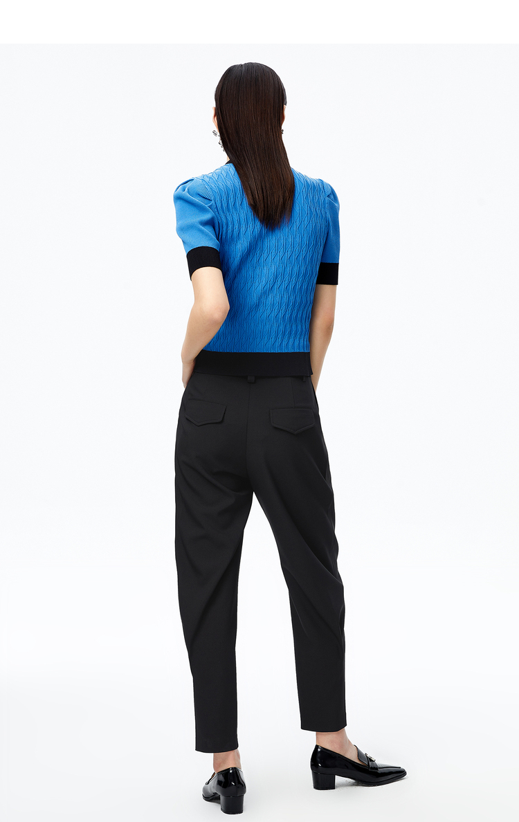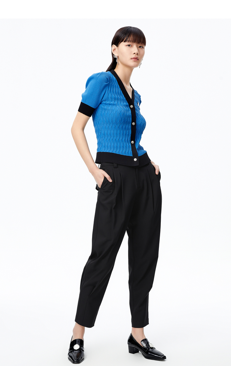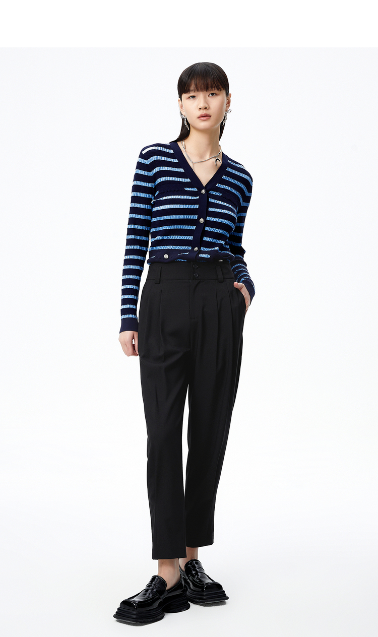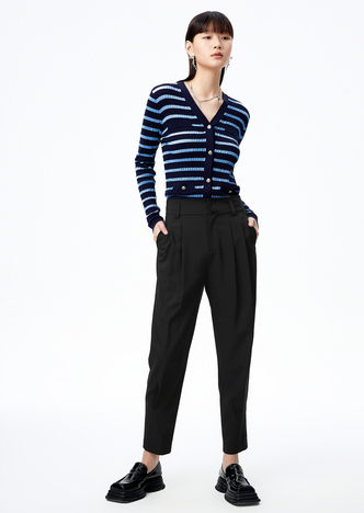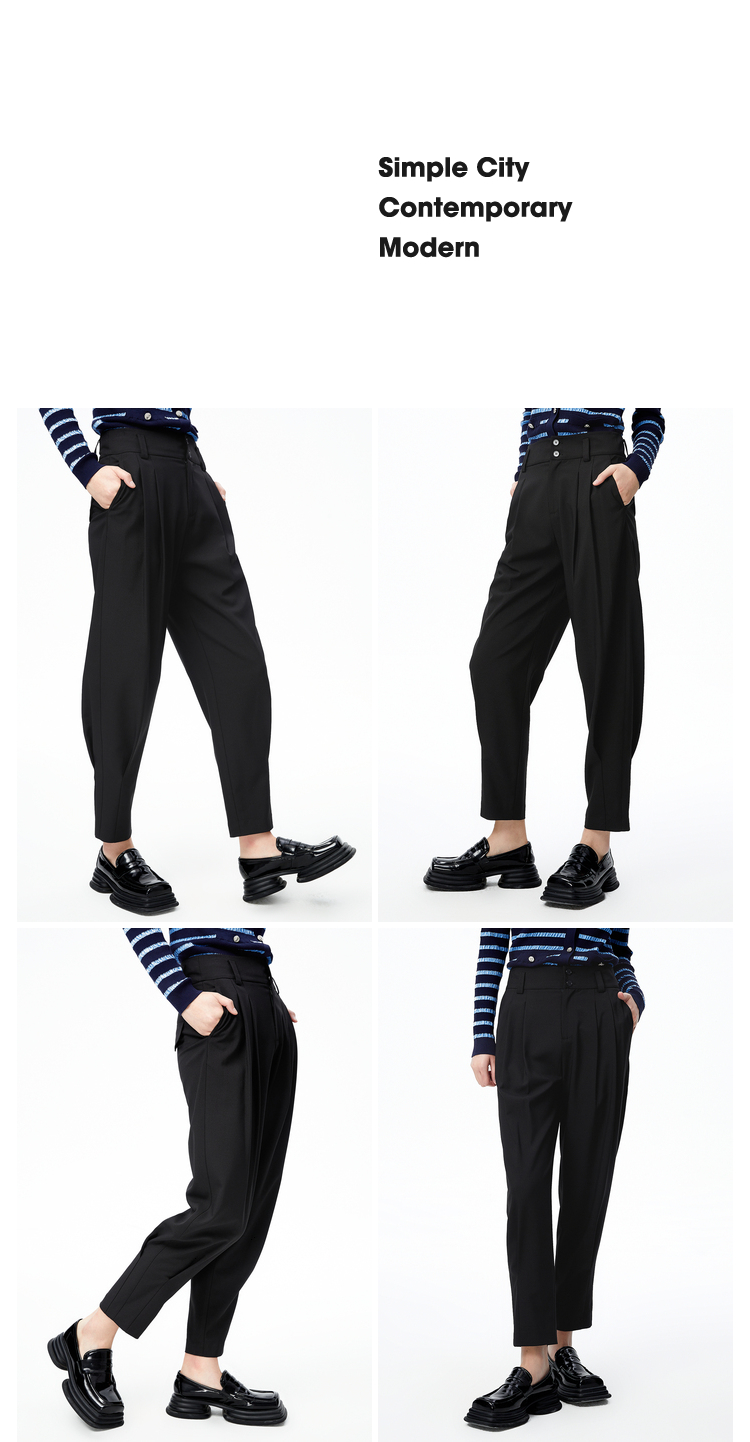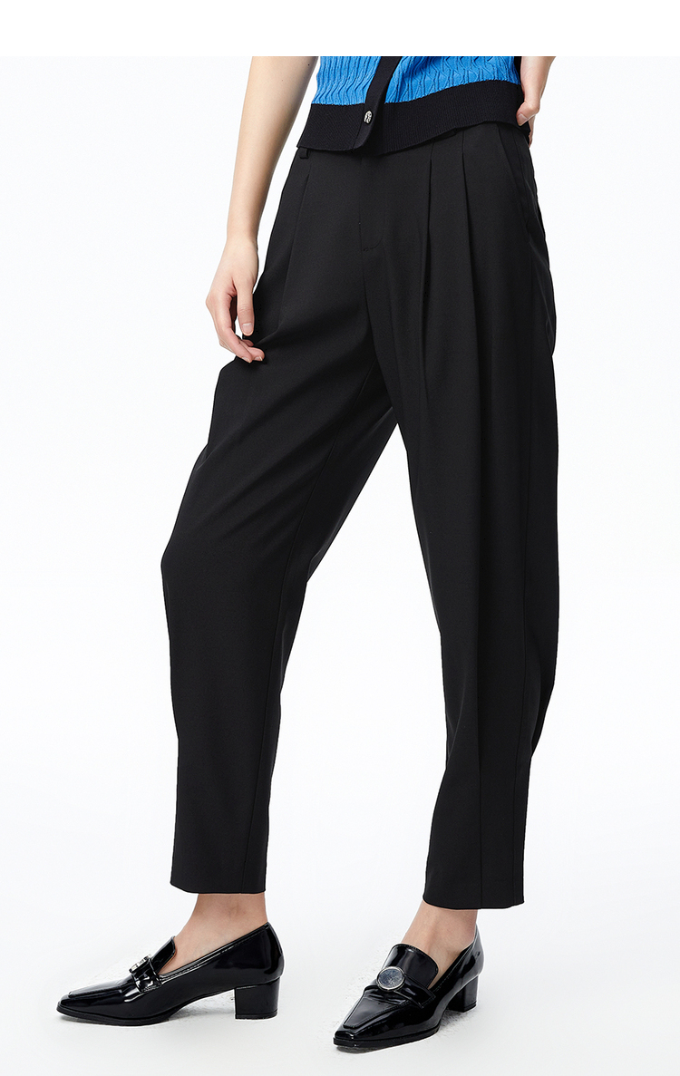 NEELLY纳俪商场同款高腰立体打褶西装裤显瘦束脚哈伦裤百搭休闲裤N22072H01036