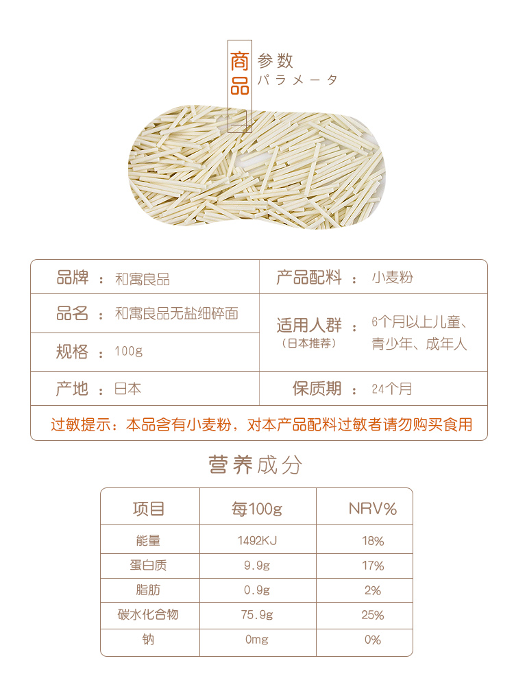 和寓良品 日本原装进口面条 原味无盐细碎面 营养粒粒面细碎面 宝宝儿童面条普通食品面条 100g/袋【 和寓良品】