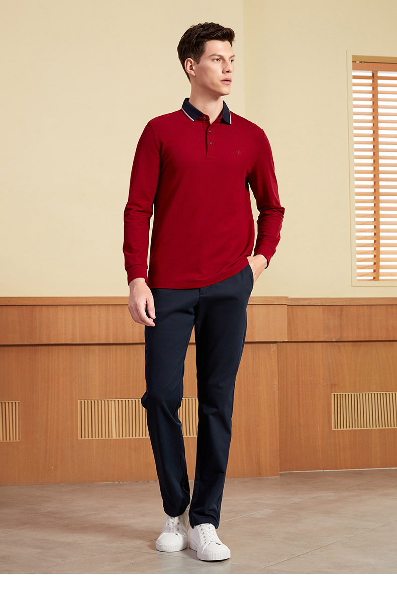 【名盾】撞色长袖Polo衫,新疆长绒棉混纺,透气舒适,柔软不易变形M0CL11694A