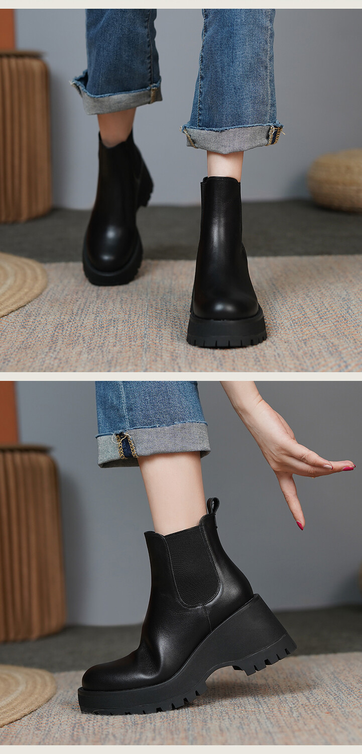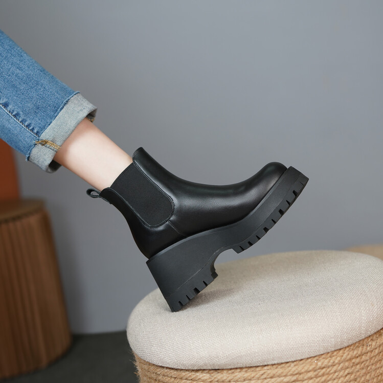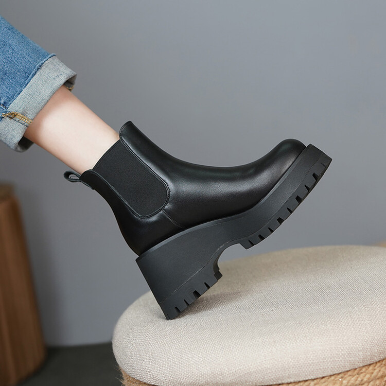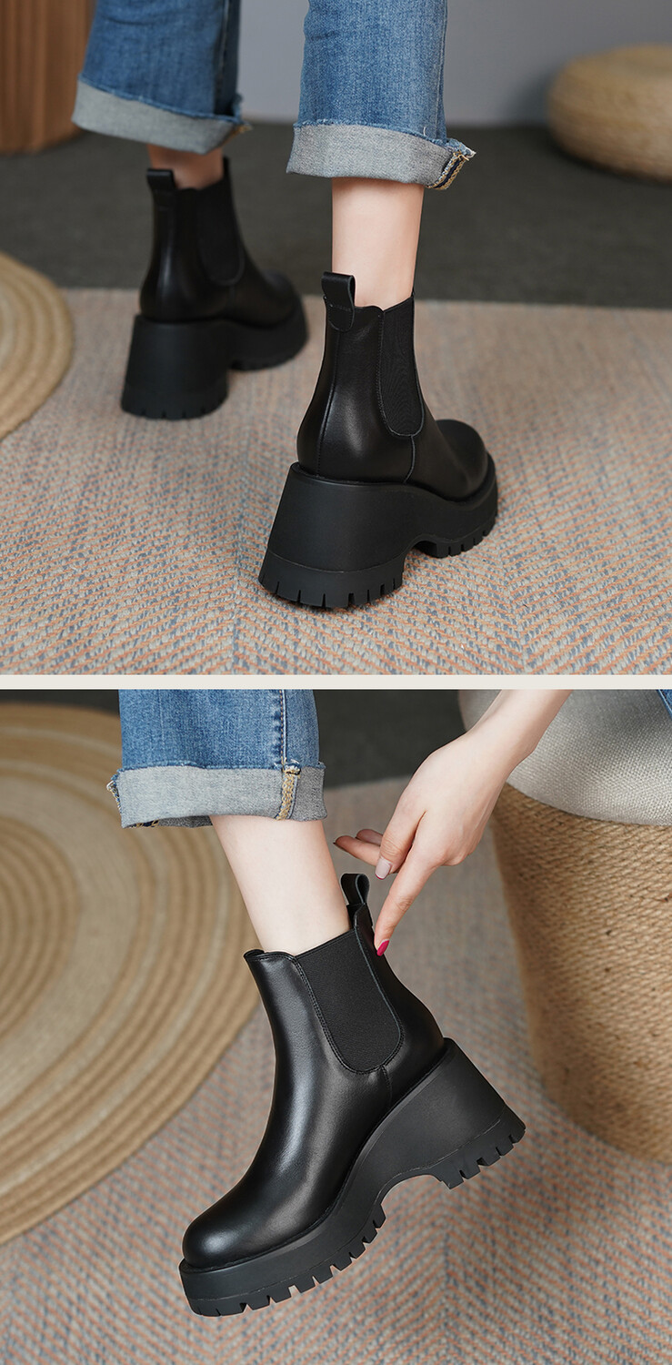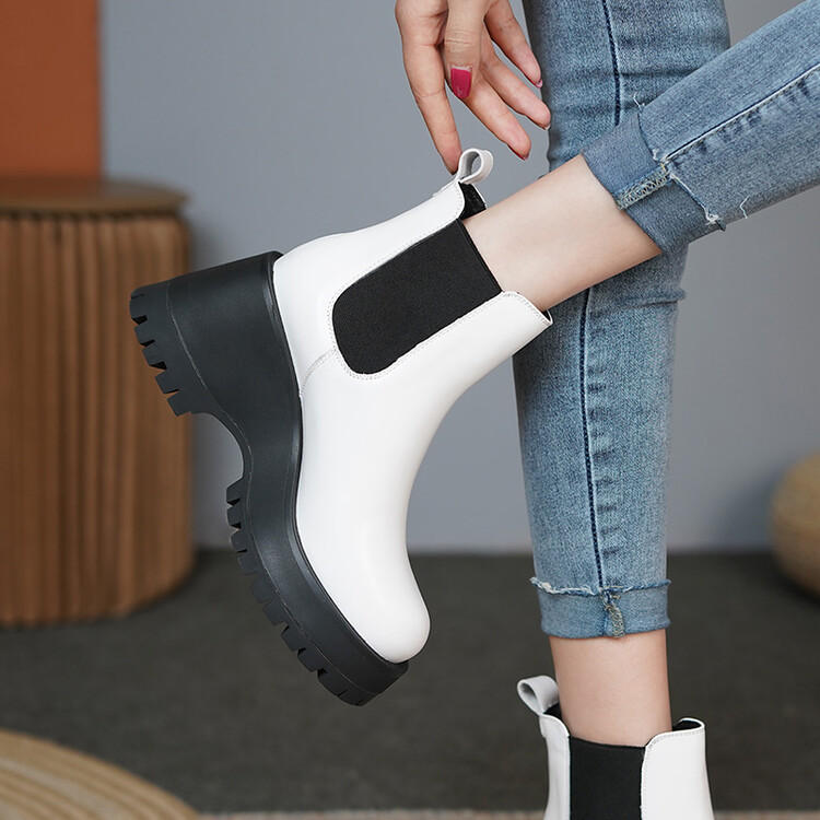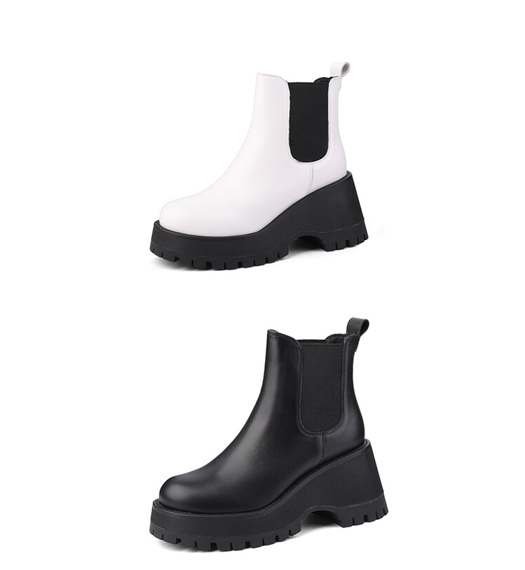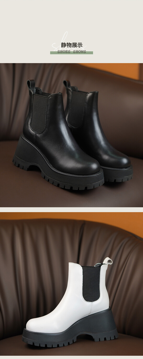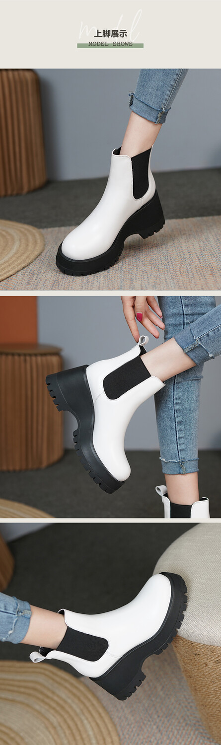 【预售5天】厚底切尔西靴秋冬季新款女靴粗跟高跟时装靴欧美短靴防水台女鞋MWLR&708A
