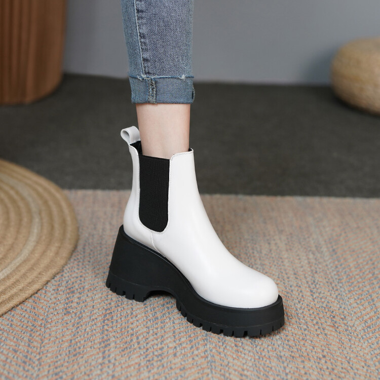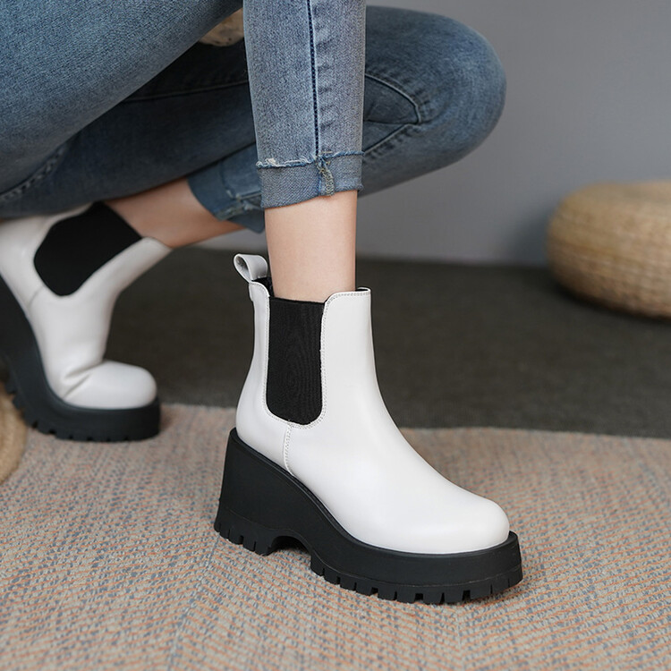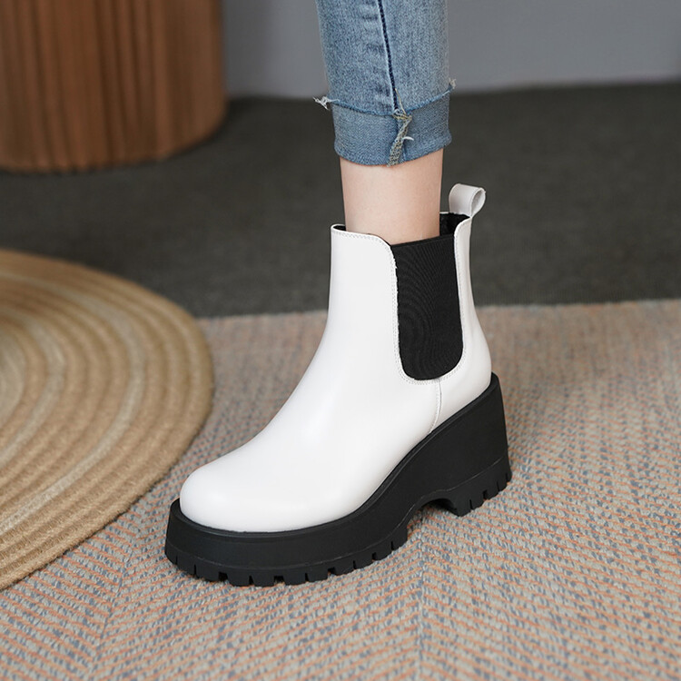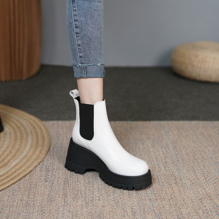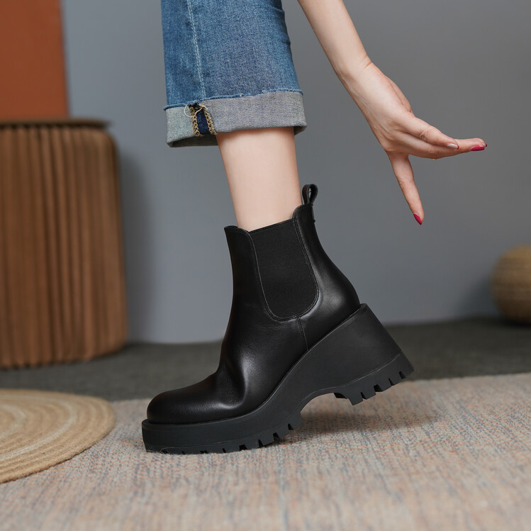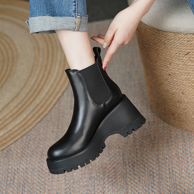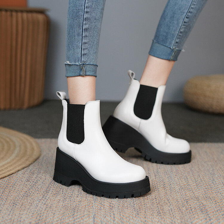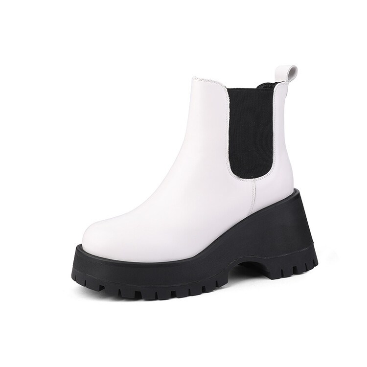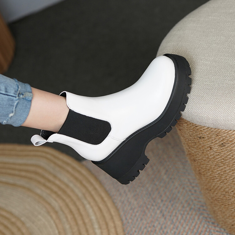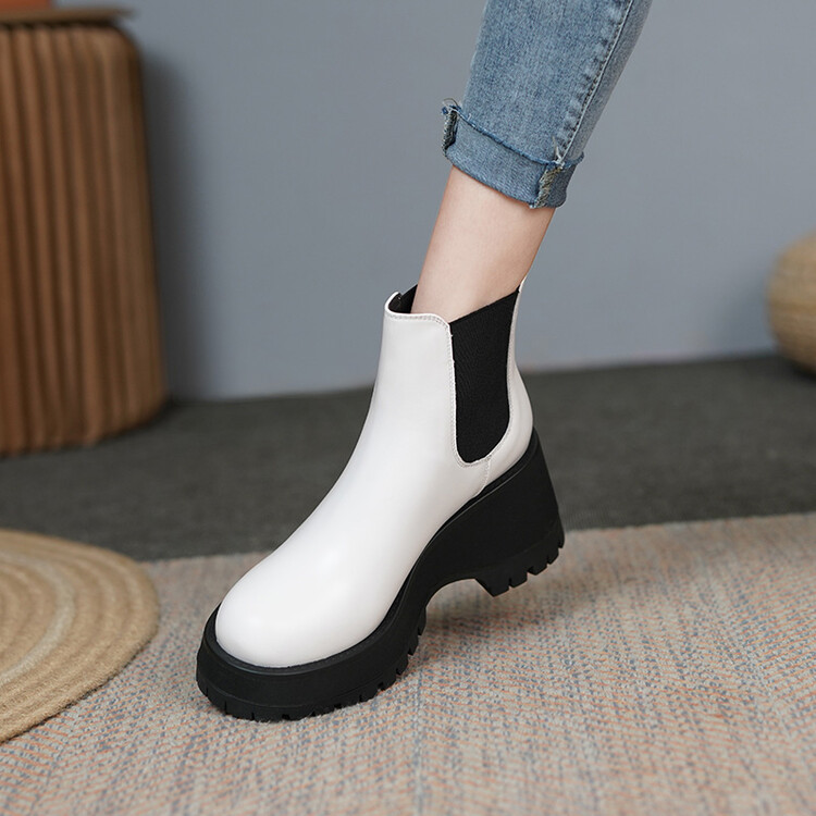 【预售5天】厚底切尔西靴秋冬季新款女靴粗跟高跟时装靴欧美短靴防水台女鞋MWLR&708A