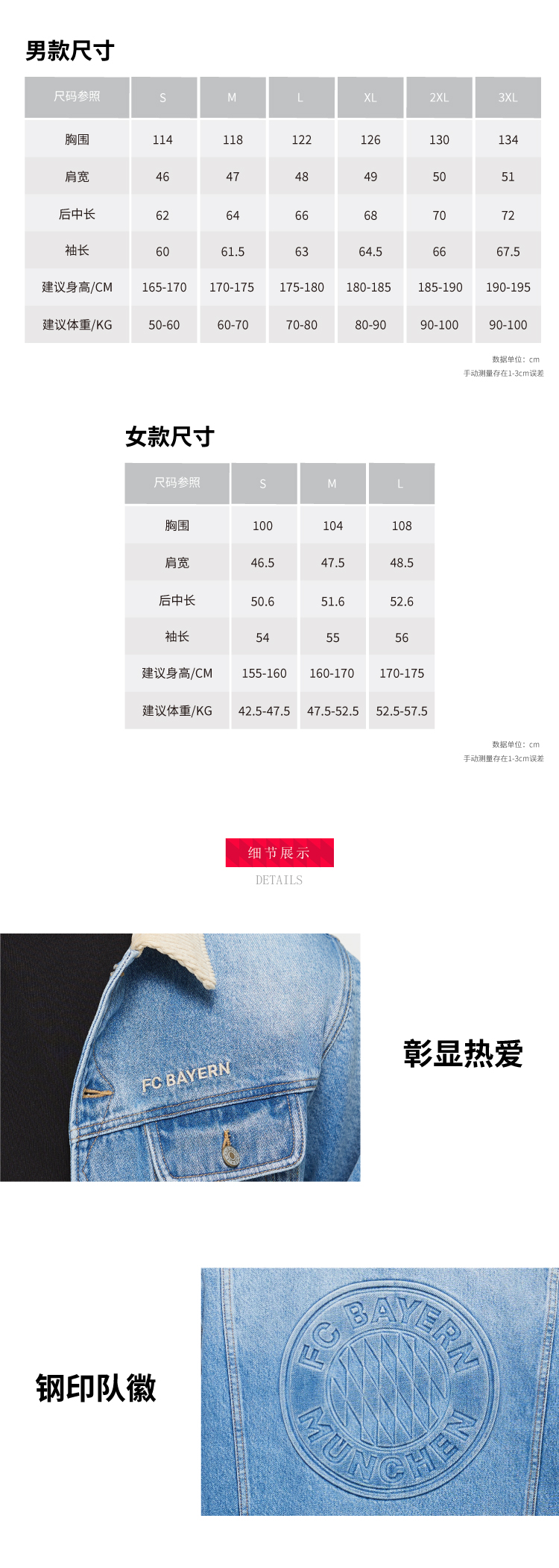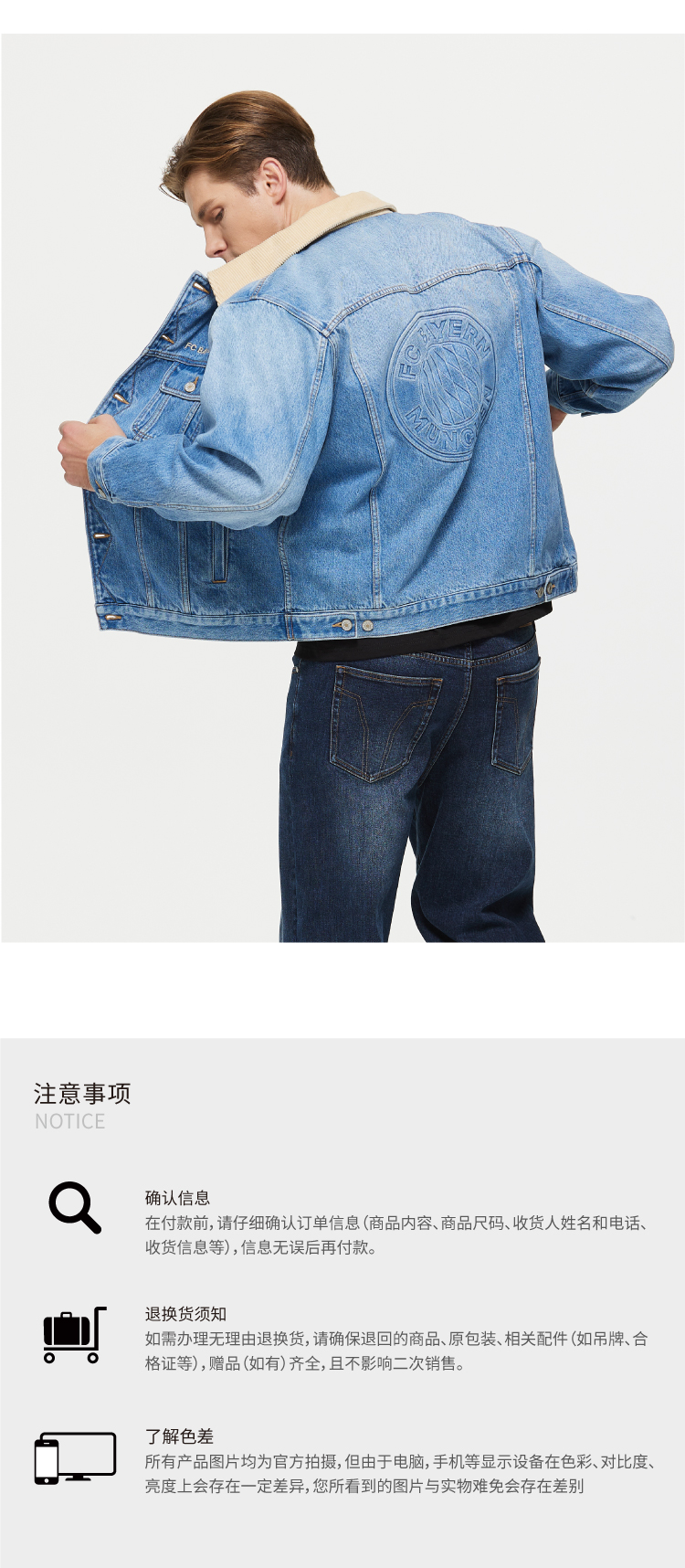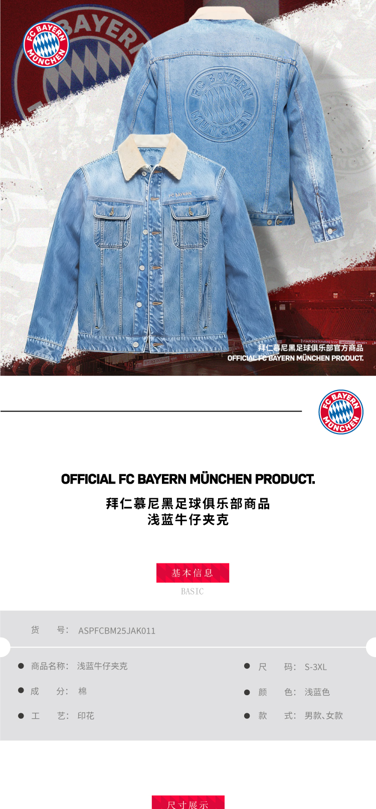 【官方正版】拜仁足球俱乐部丨浅蓝牛仔夹克秋季休闲百搭外套