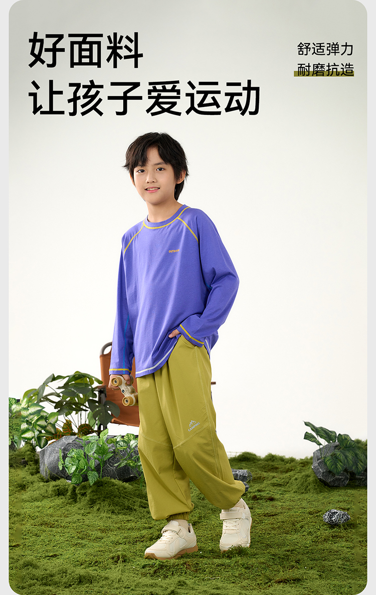 棉花堂春款触肤凉感轻户外童装梭织长裤-FD61095