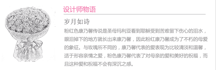 花材:33朵粉色康乃馨,点缀黄莺