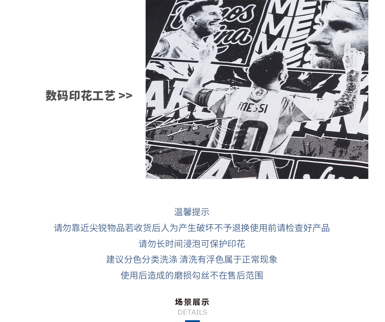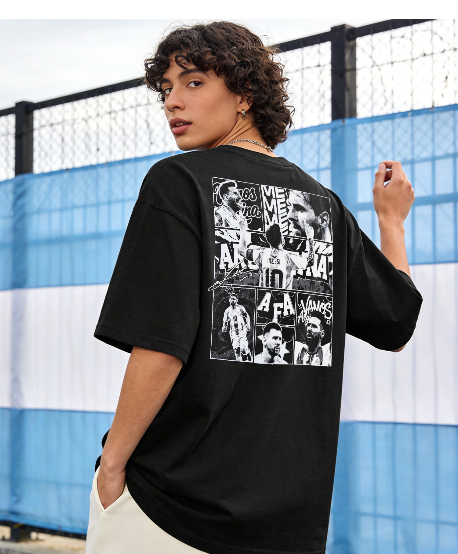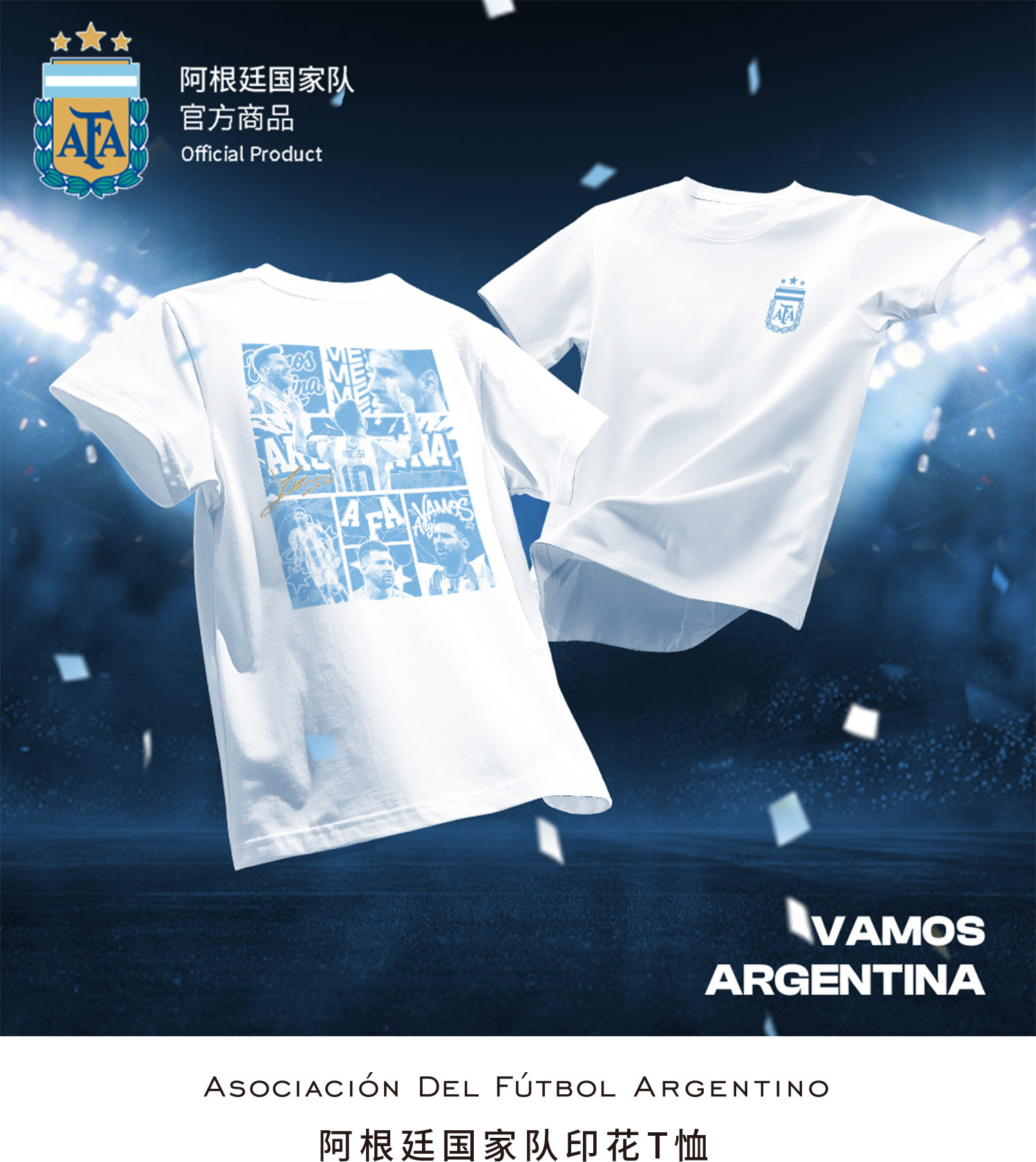 【官方正版】阿根廷国家队 | 春夏新款黑白双色印花T恤舒适透气梅西