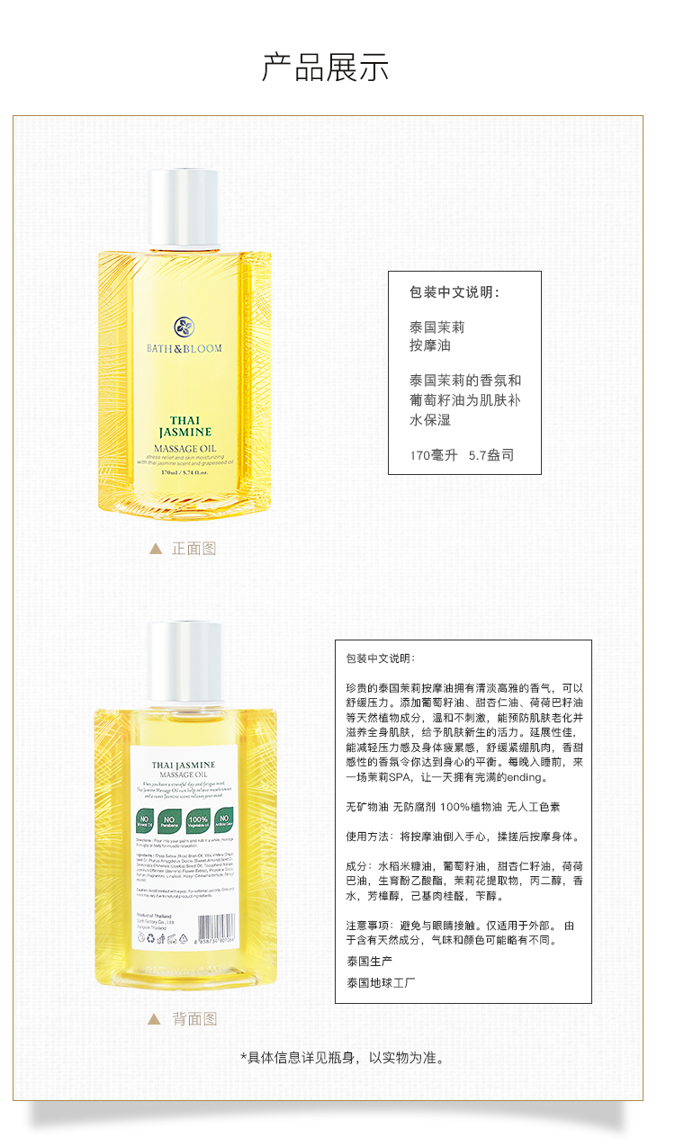 BATHBLOOM茉莉润肤油 170ml A-3271
