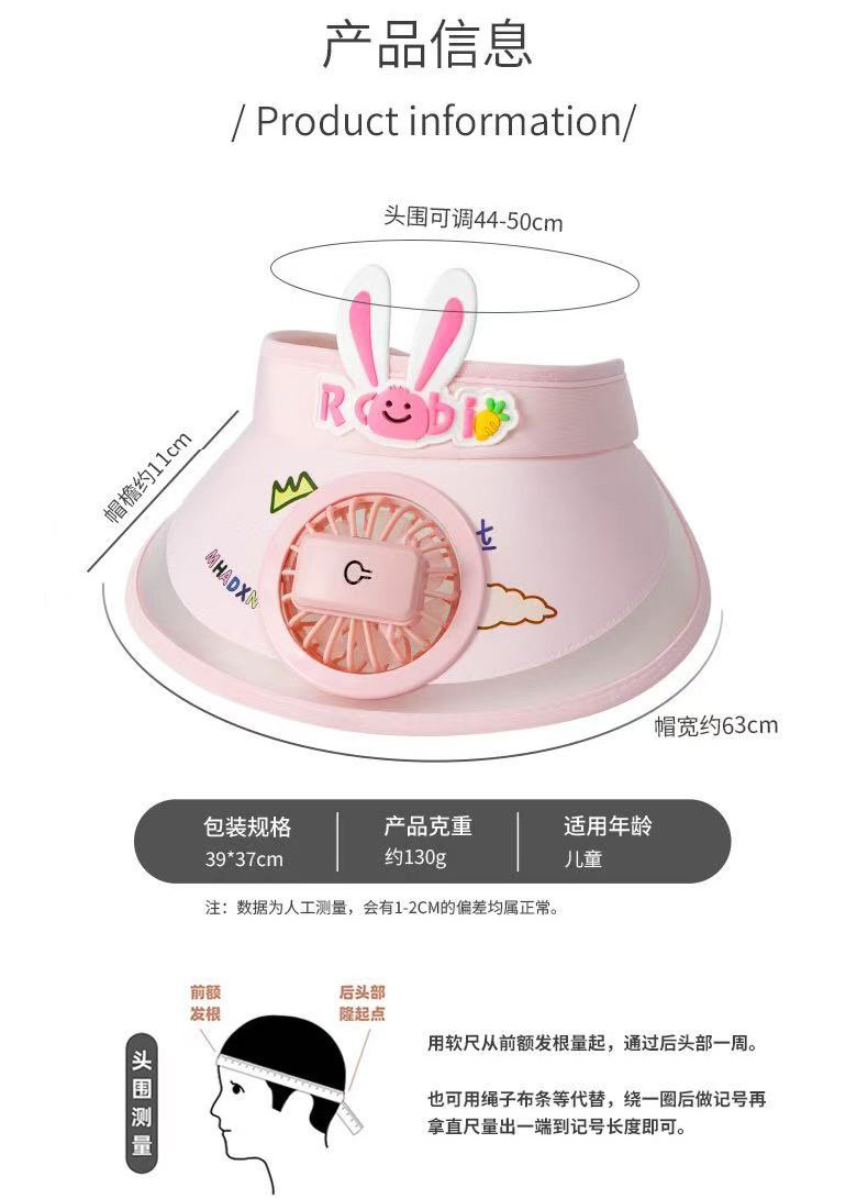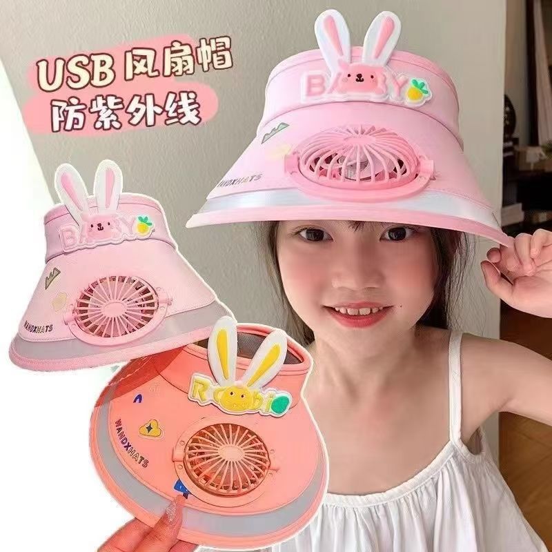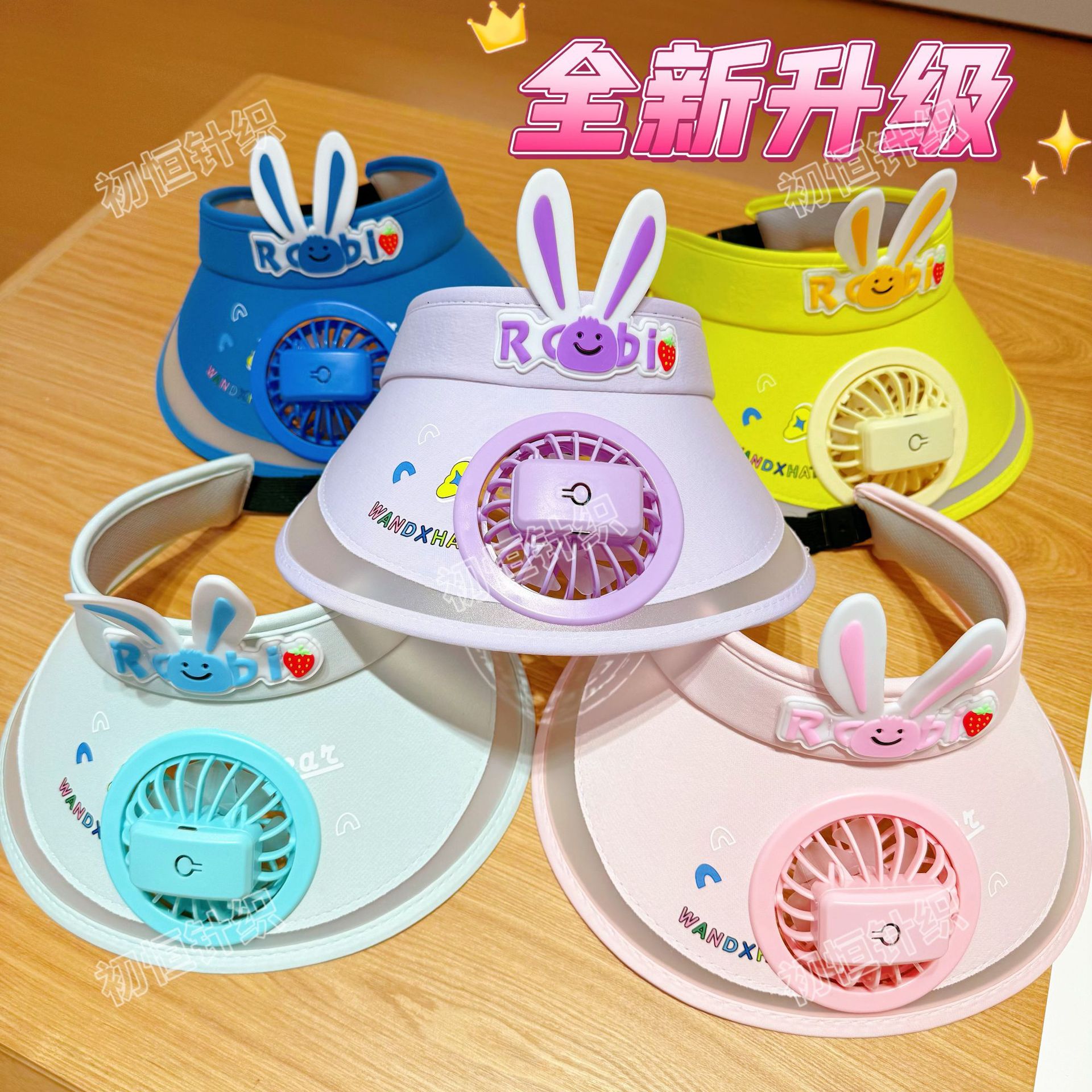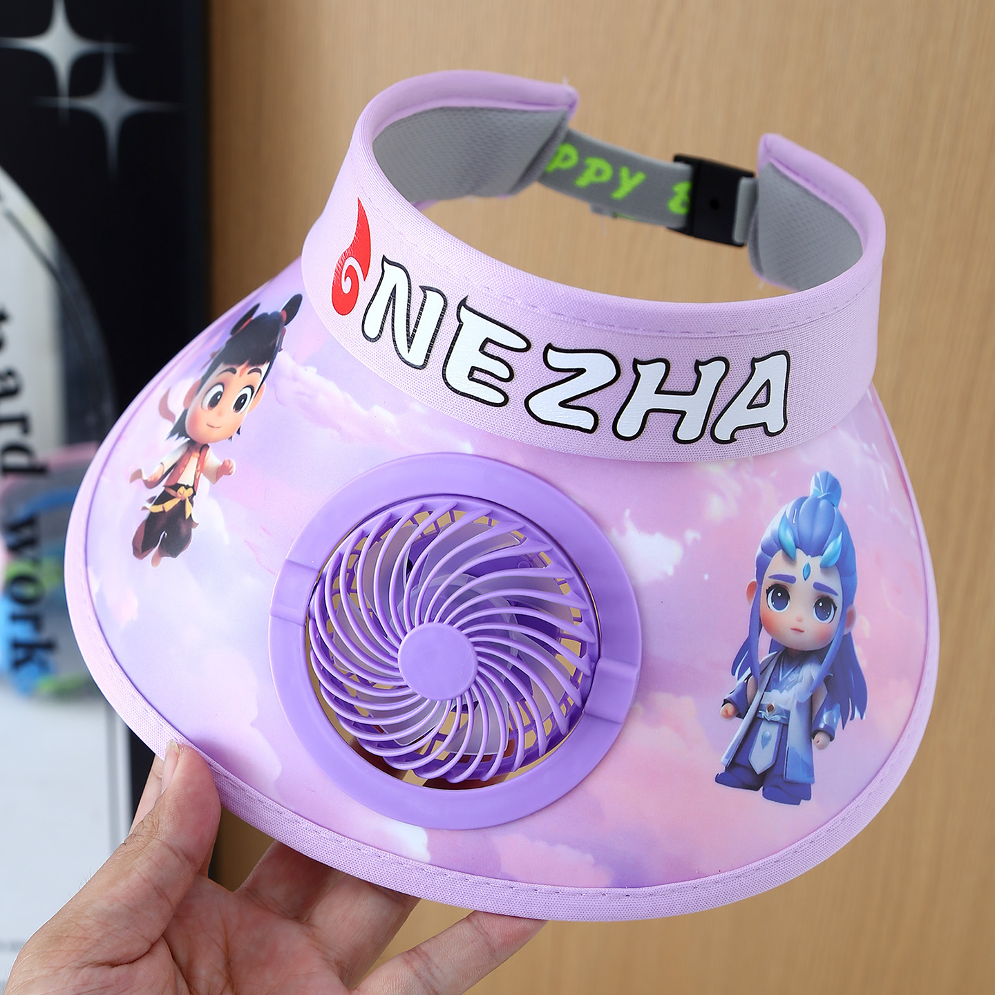 【卡通遮阳帽❗️带风扇】夏季儿童带风扇遮阳帽空顶帽宝宝帽子卡通哪吒防晒女童太阳帽。ya