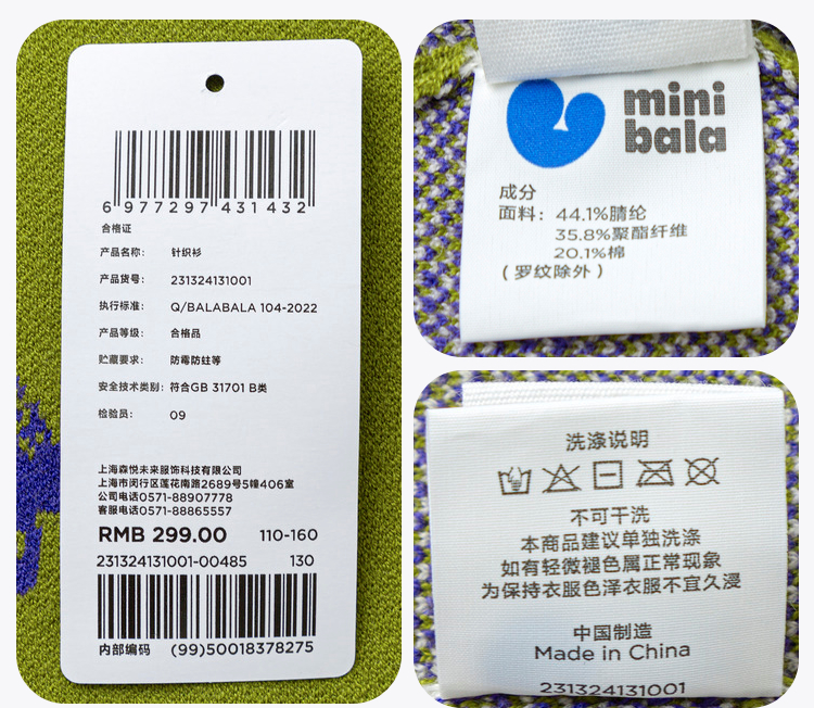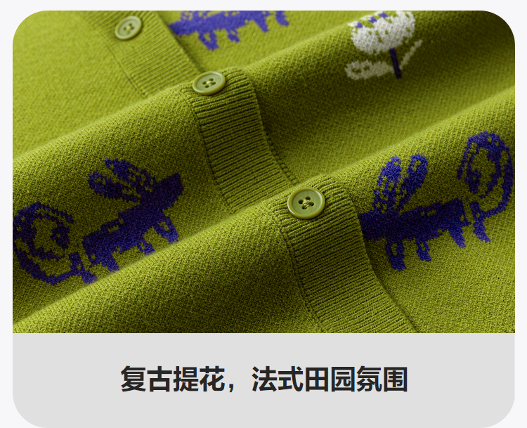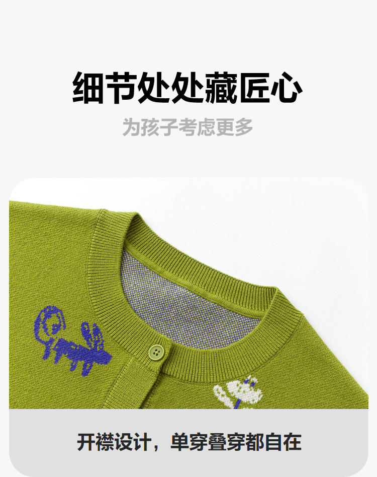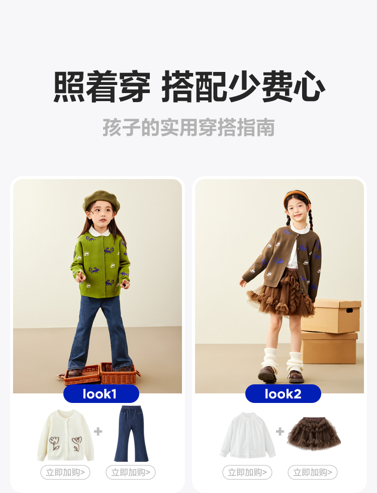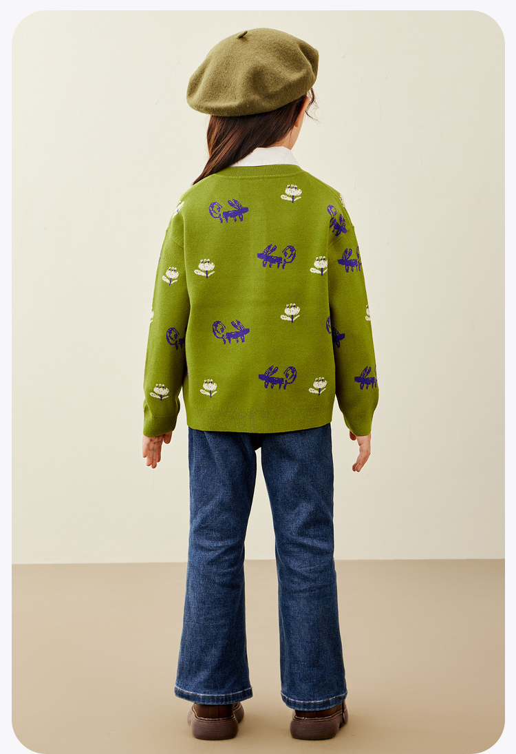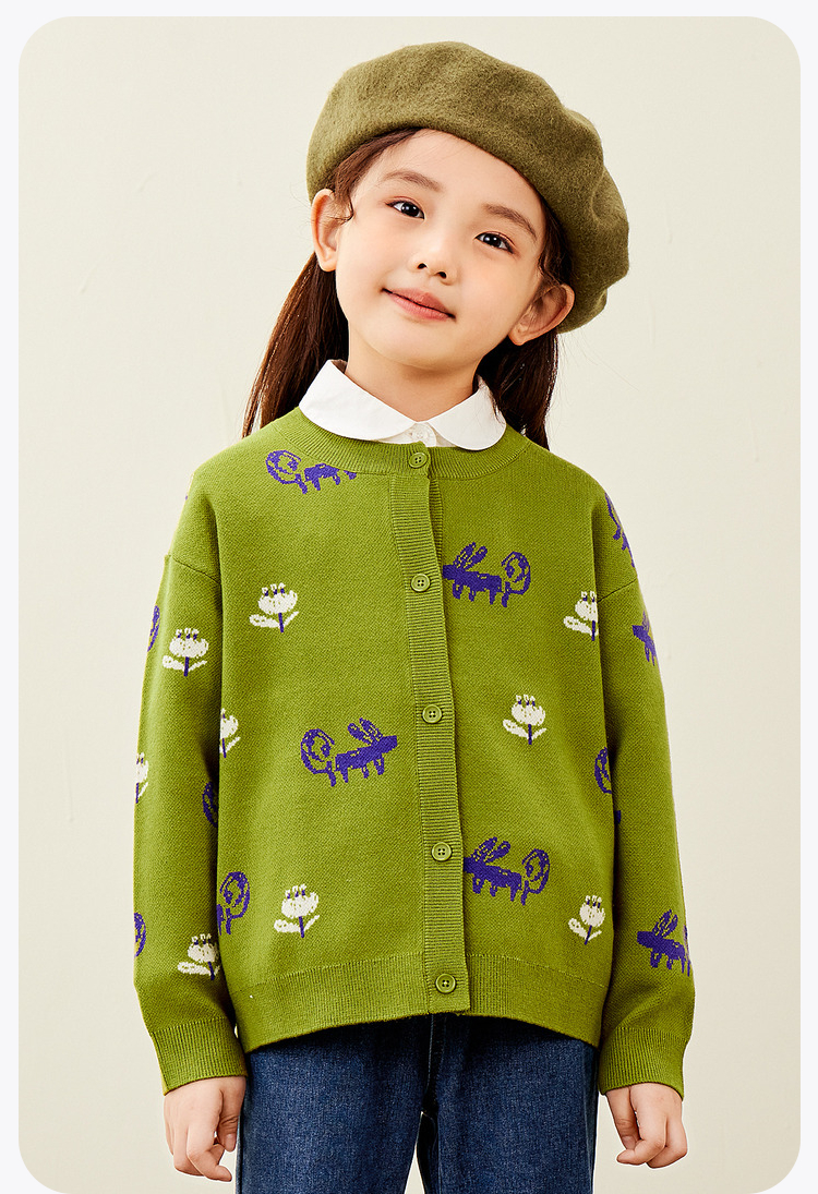 迷你巴拉女童儿童针织开衫秋季复古撞色提花毛衫