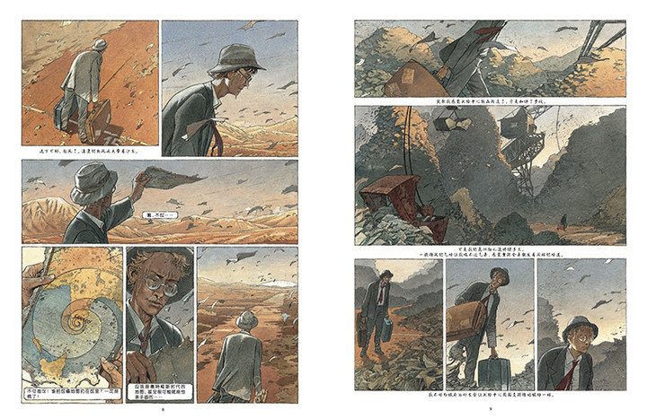 《消失的边境线》创作于2002年,同年,冯索瓦·史奇顿因为《朦胧城市》系列的连续创作而获得了最重要的奖项——终身成就奖。两位作者对科技进步、城市更新这些命题一向比较关注,而《消失的边境线》把这种对未来的不安表现到了极致。因为主人公同为地图测绘师,因此这本书会让人联想到卡夫卡的《城堡》,两者在荒谬、怪诞等方面无疑是共通的。作者在这个故事中想探讨的究竟是土地、国家的边境,还是人类身体、心理那道维护尊严的最后防线呢?