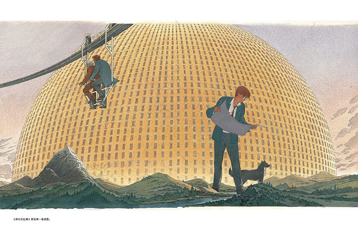 在《朦胧城市》系列中,几乎每一页画面中都有大量让人叹为观止的建筑物和城市,那些游走于现实与虚幻之间的超现实主义建筑最终成为了该系列的招牌特色。这部作品中虽然故事的重点是土地,但也有很多非常有趣的元素,像蜂巢般的建筑、城市模型、穿梭于建筑半空的自行车交通网、圆形的机械车等等,使读者在了解故事的同时,更提升了视觉上的愉悦感。