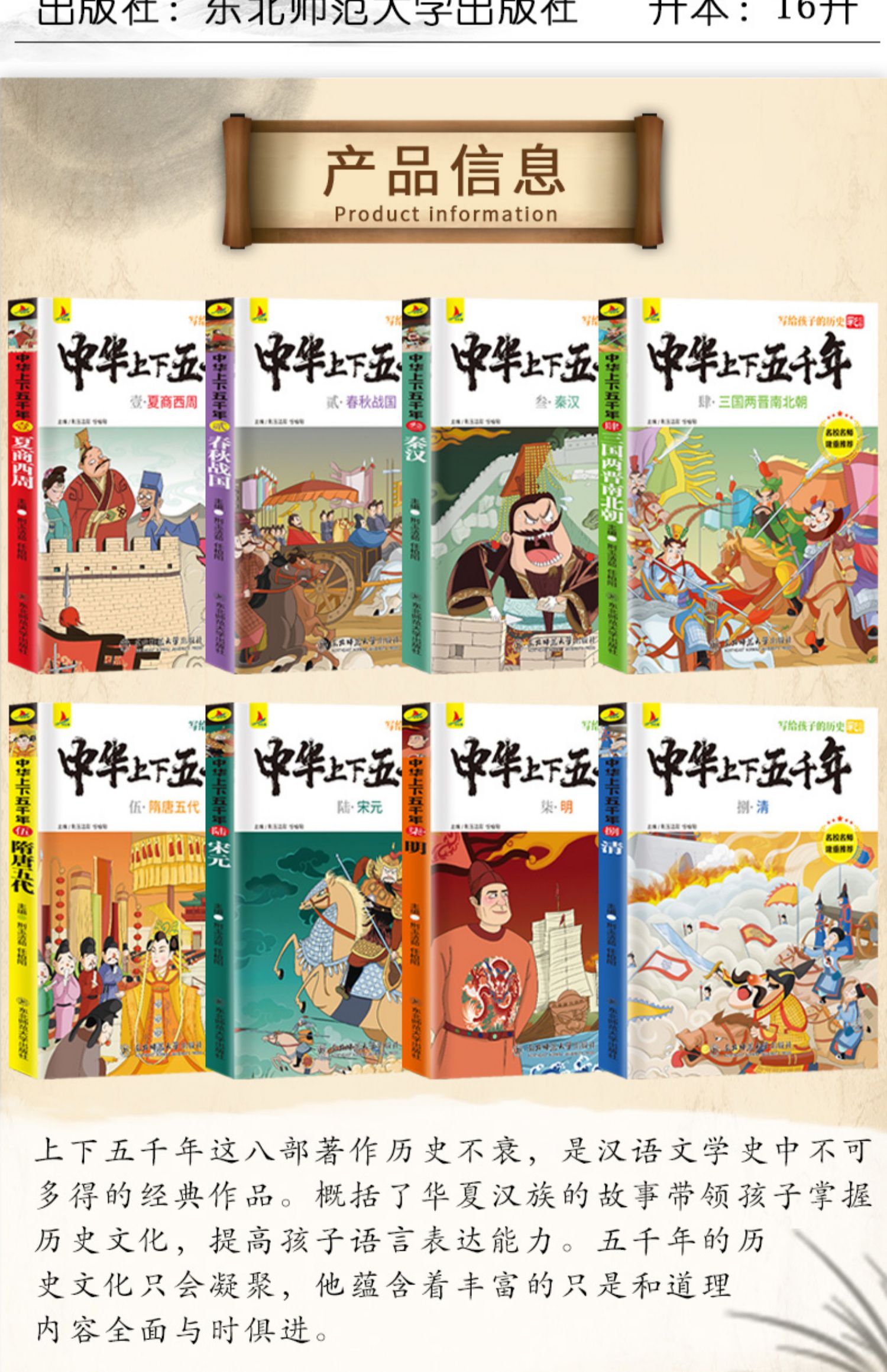 【正版8本】 中华上下五千年彩绘本 写给儿童的历史故事书小学生经典课外阅读书籍全套青少年三四五六年级通史书目5000年