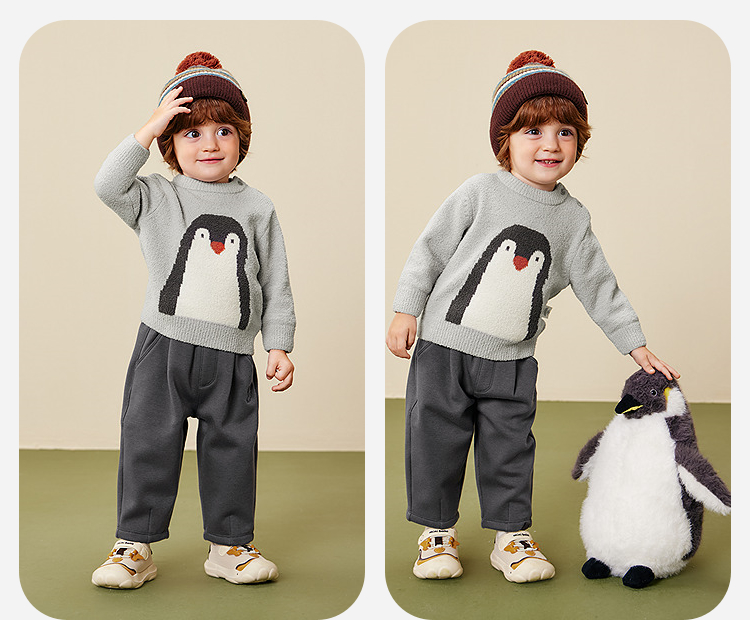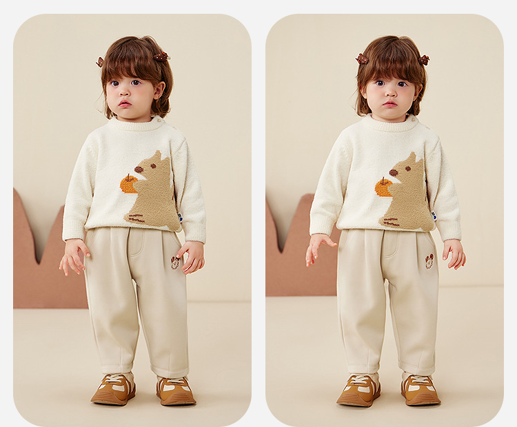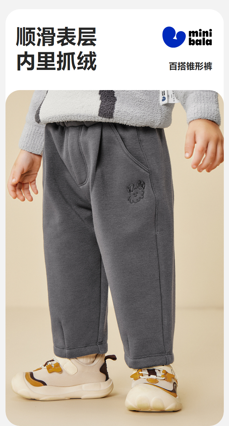 迷你巴拉男女童裤子内里加绒亲肤柔软萝卜裤2025冬装新款