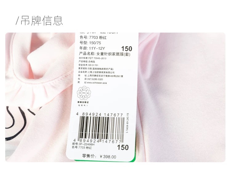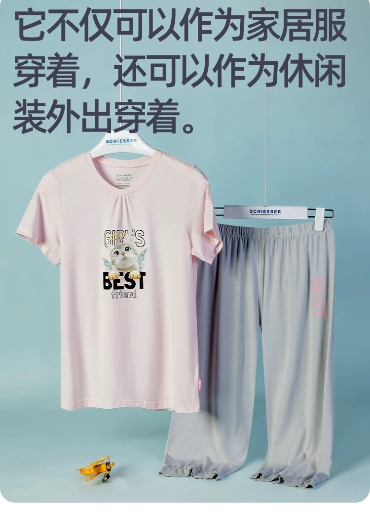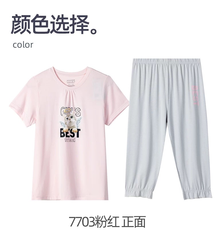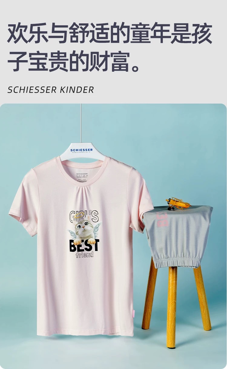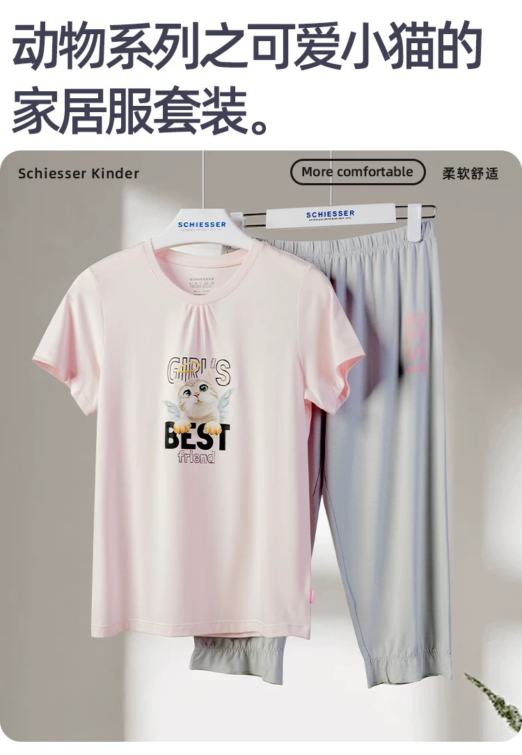 【COOL凉感喵星人】SCHIESSER德国舒雅女童家居服面料采用COOL MAX面料,手感柔润,吸湿排汗3F/22498H